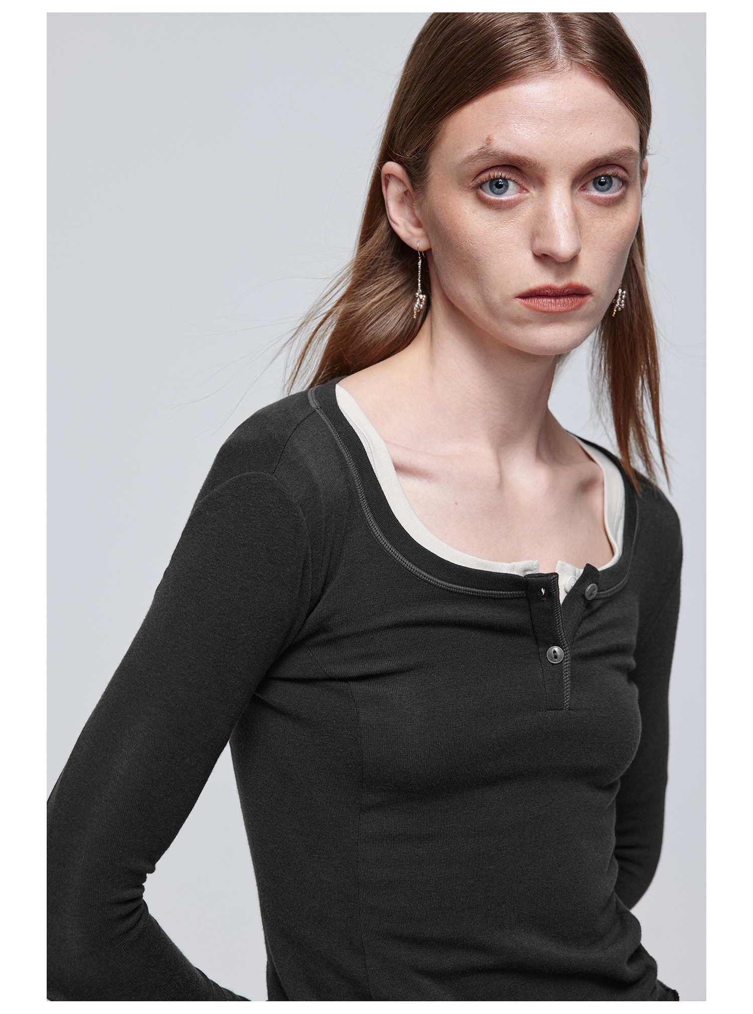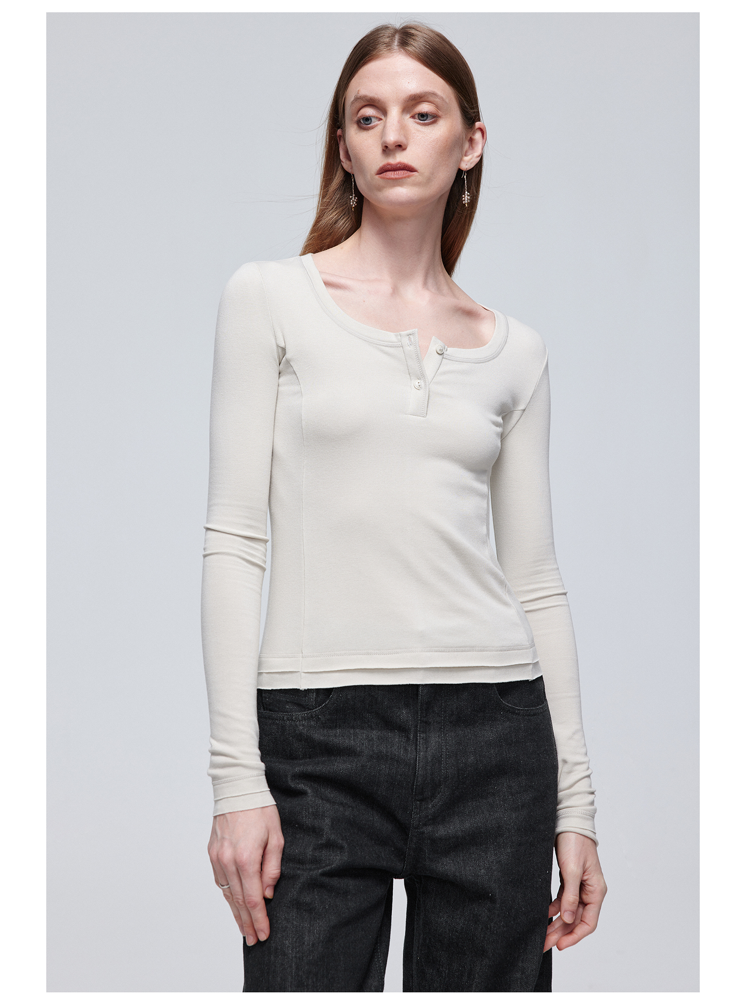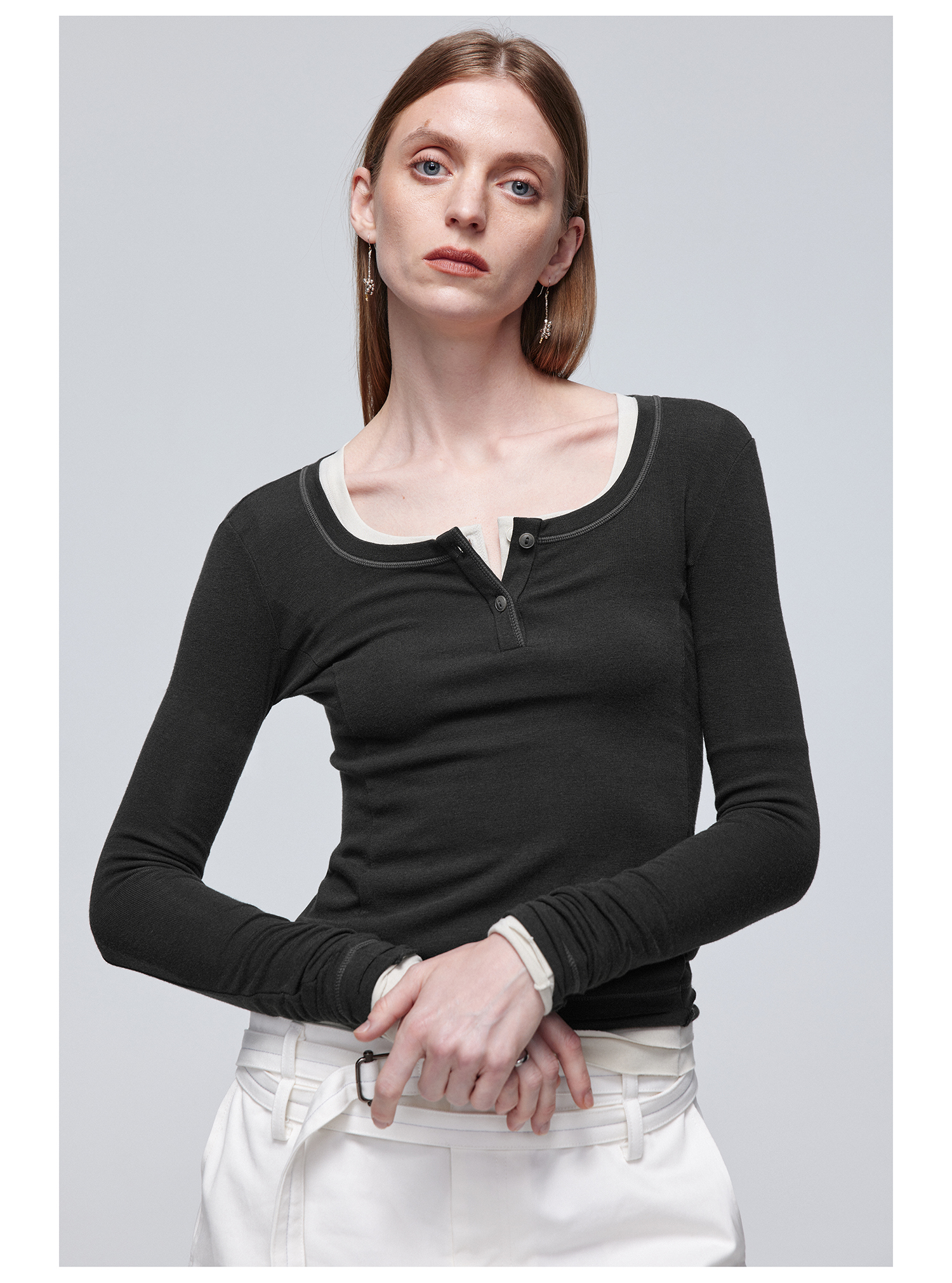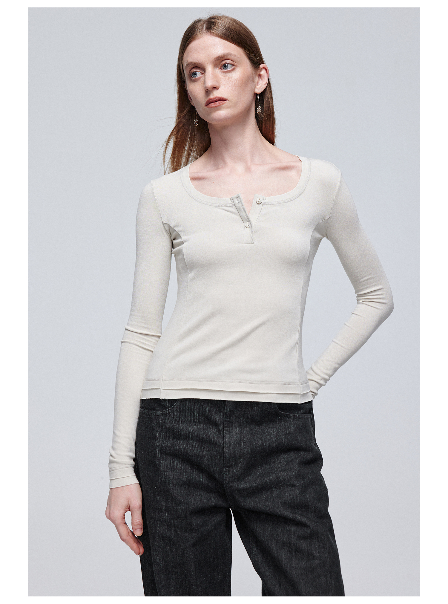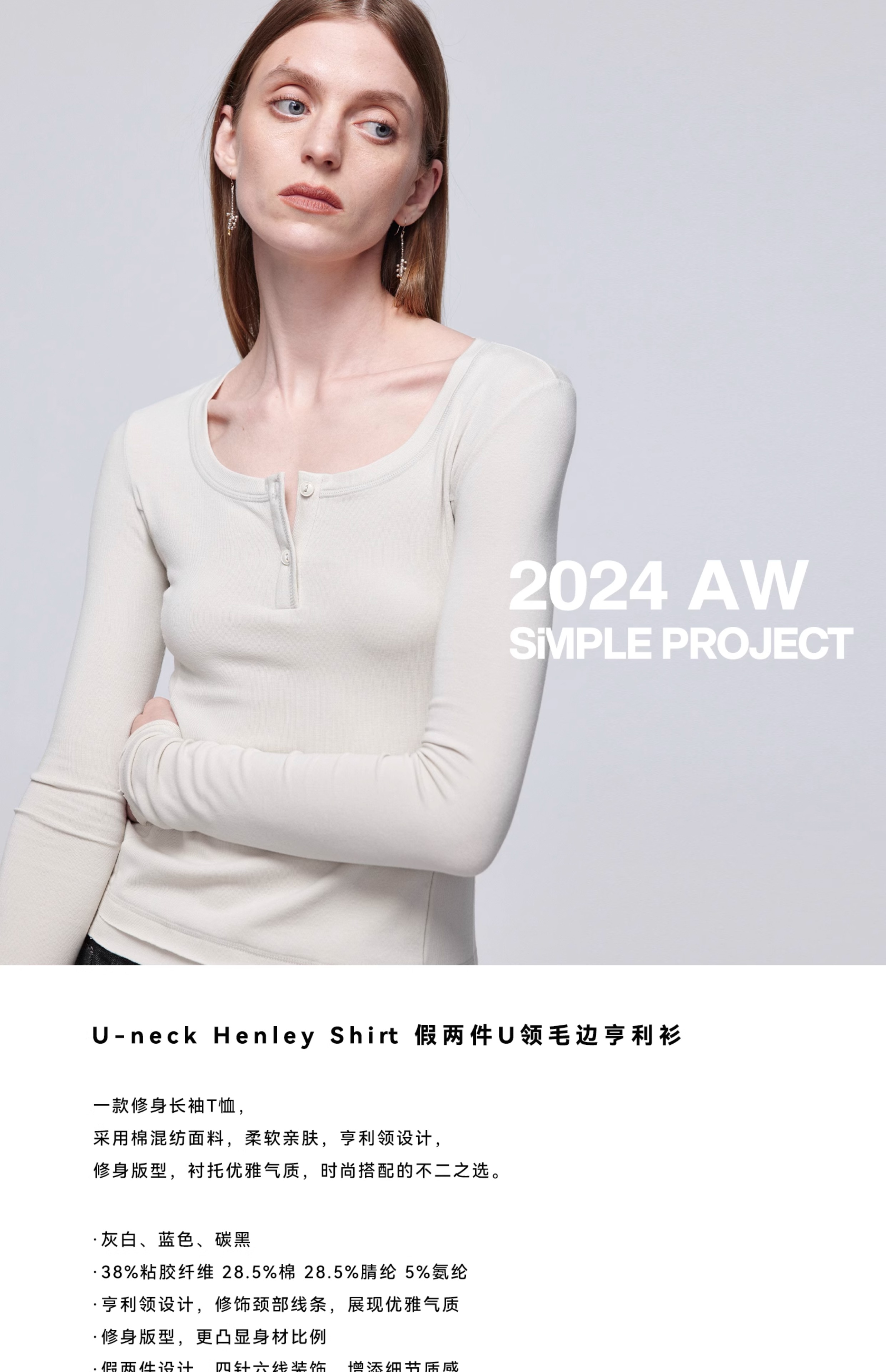 Simple Project/Y24114/假两件U领毛边亨利长袖衫