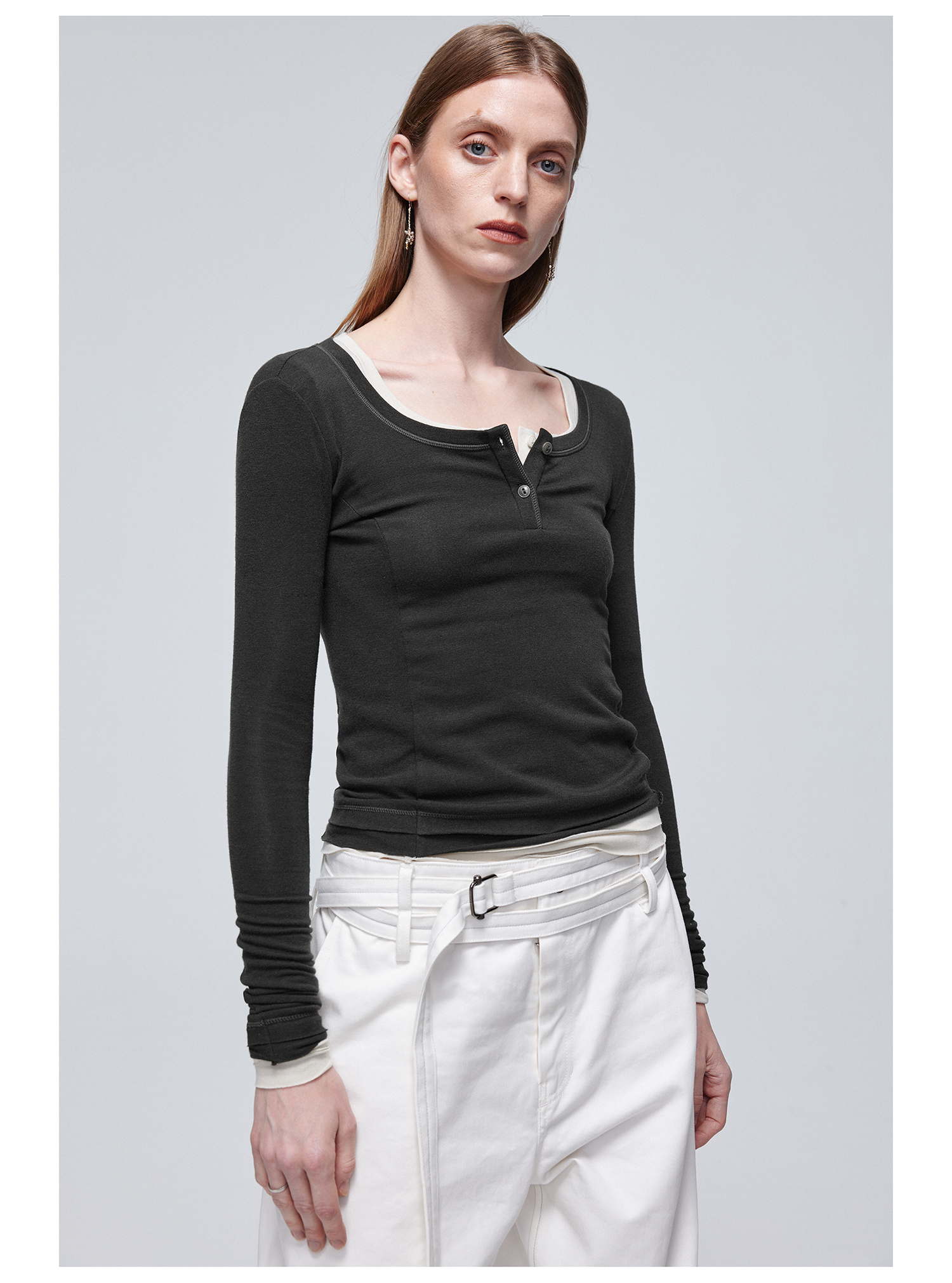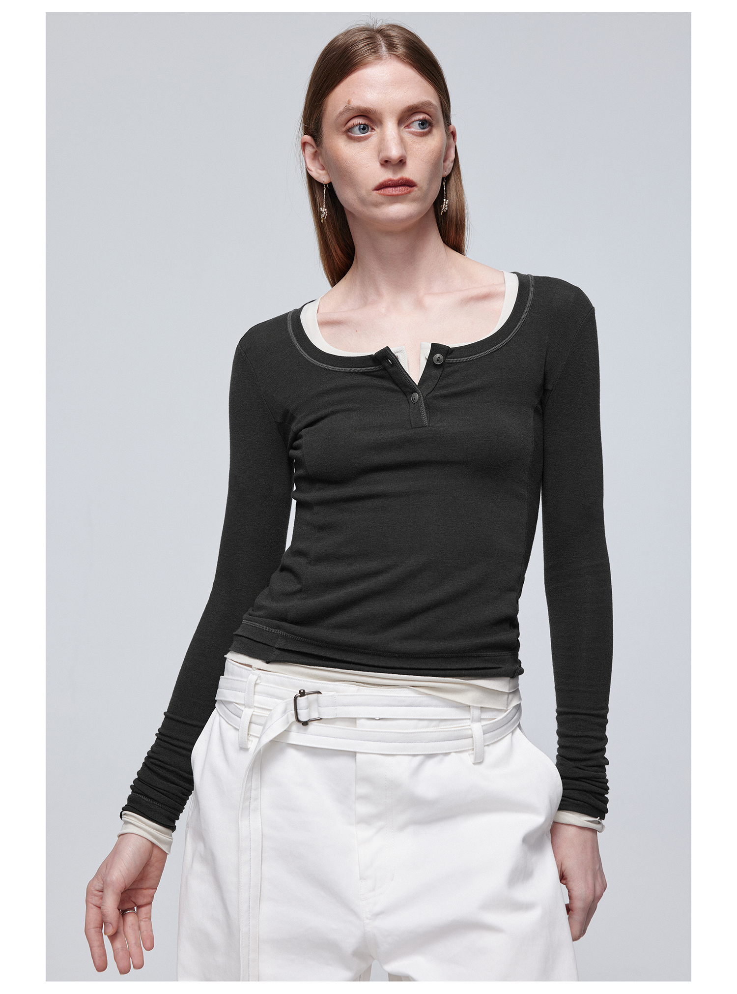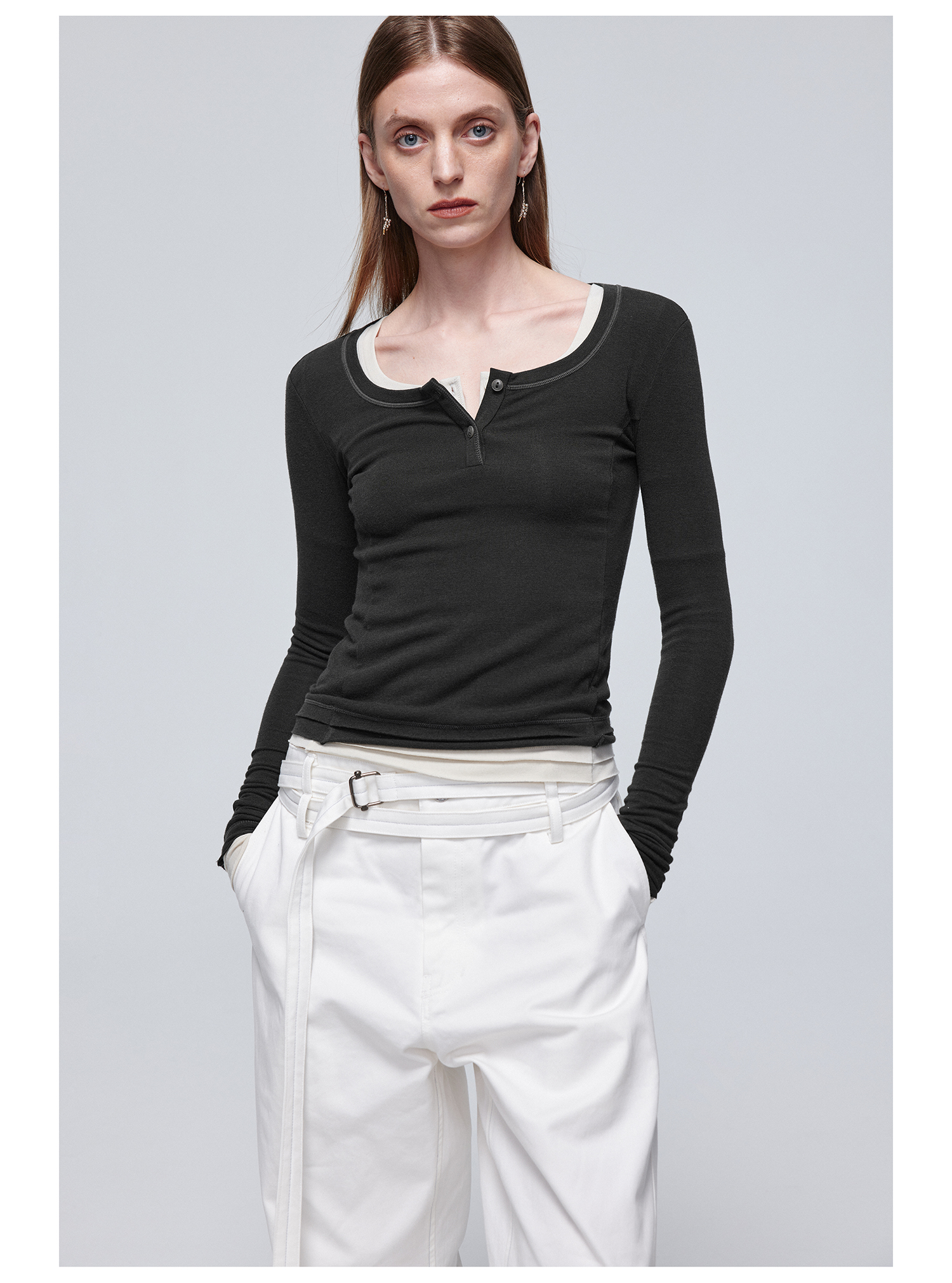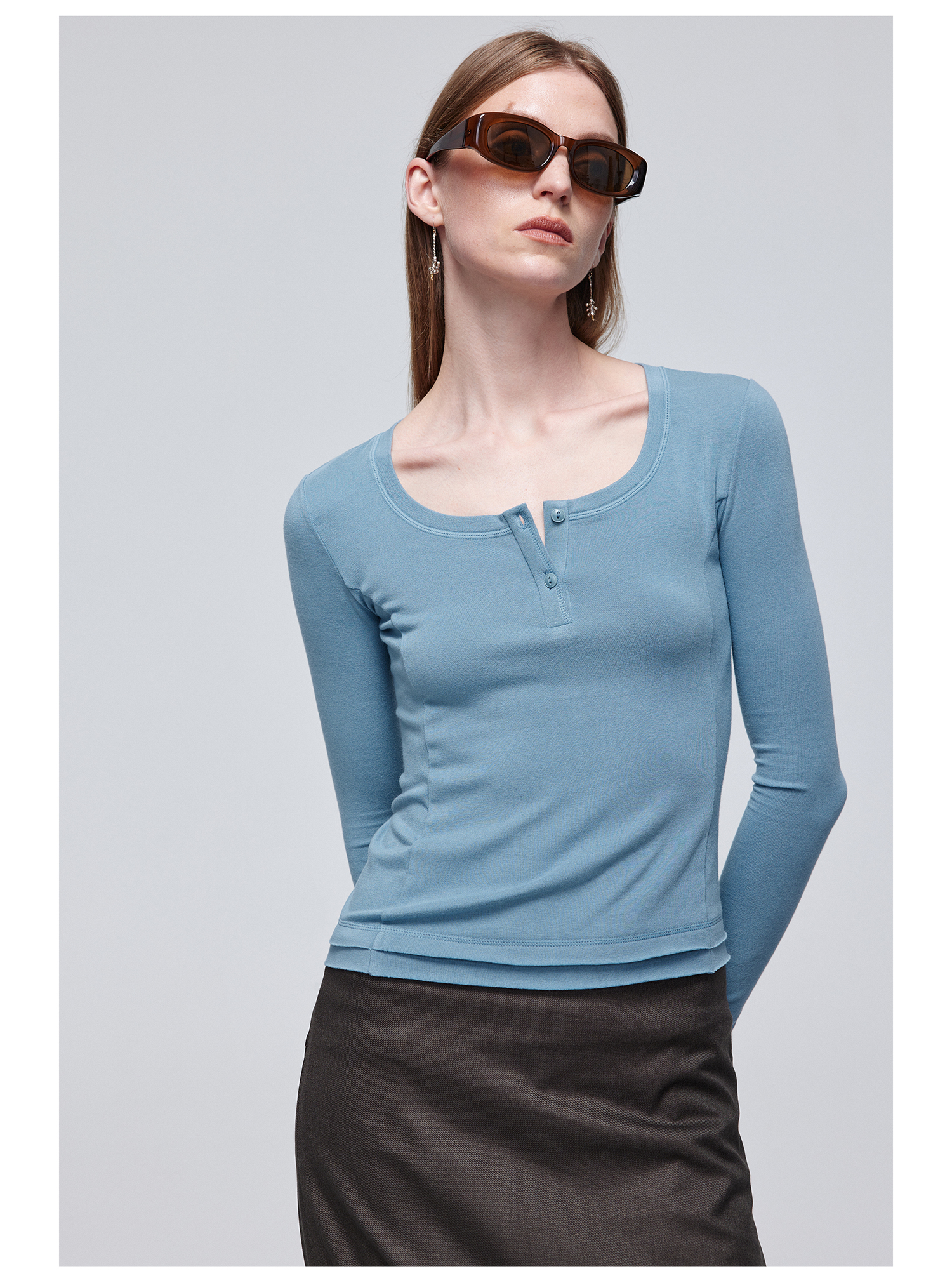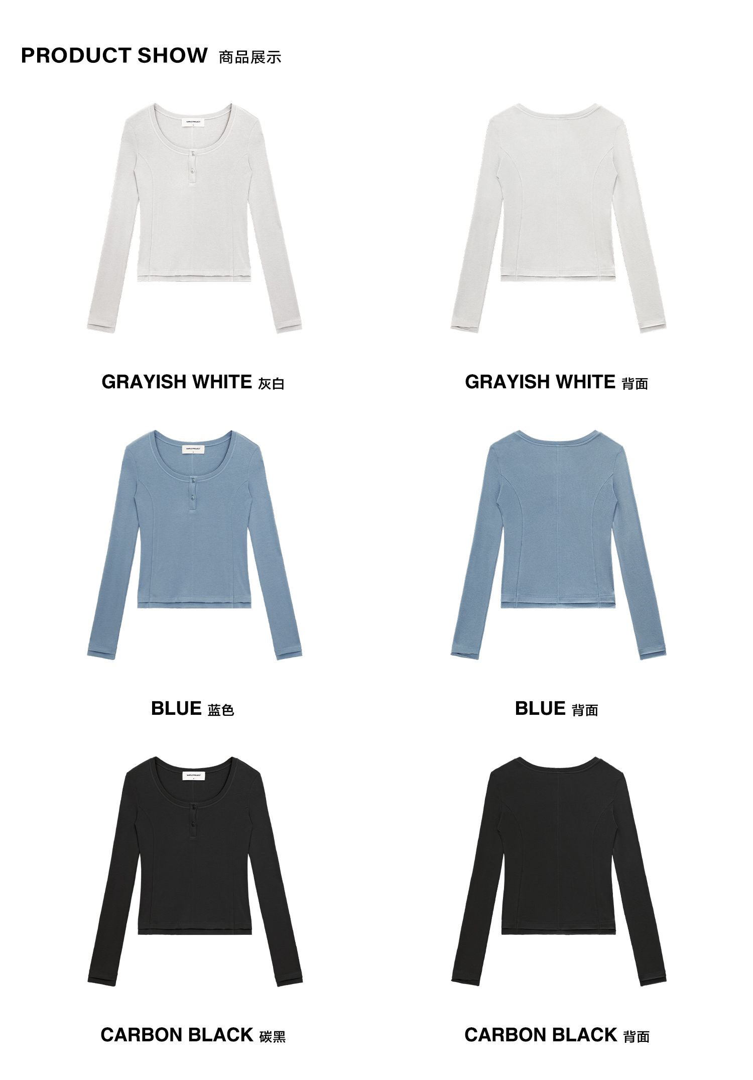 Simple Project/Y24114/假两件U领毛边亨利长袖衫