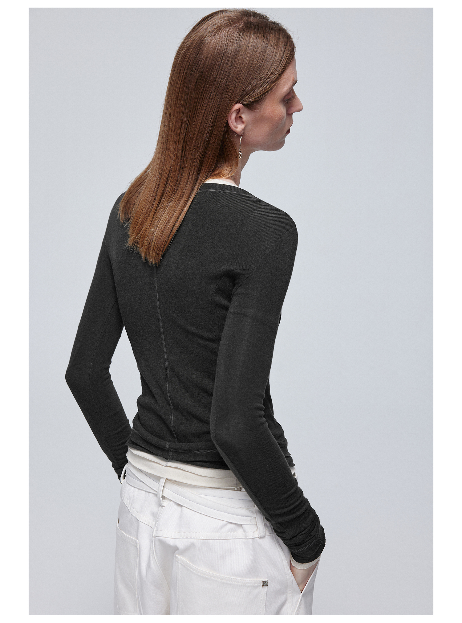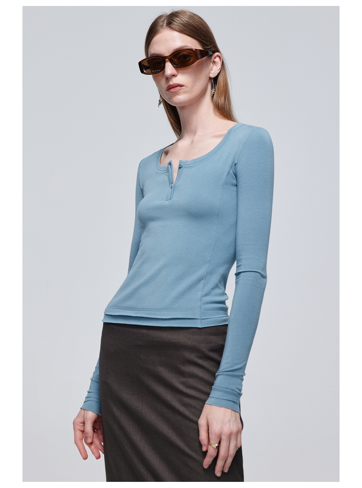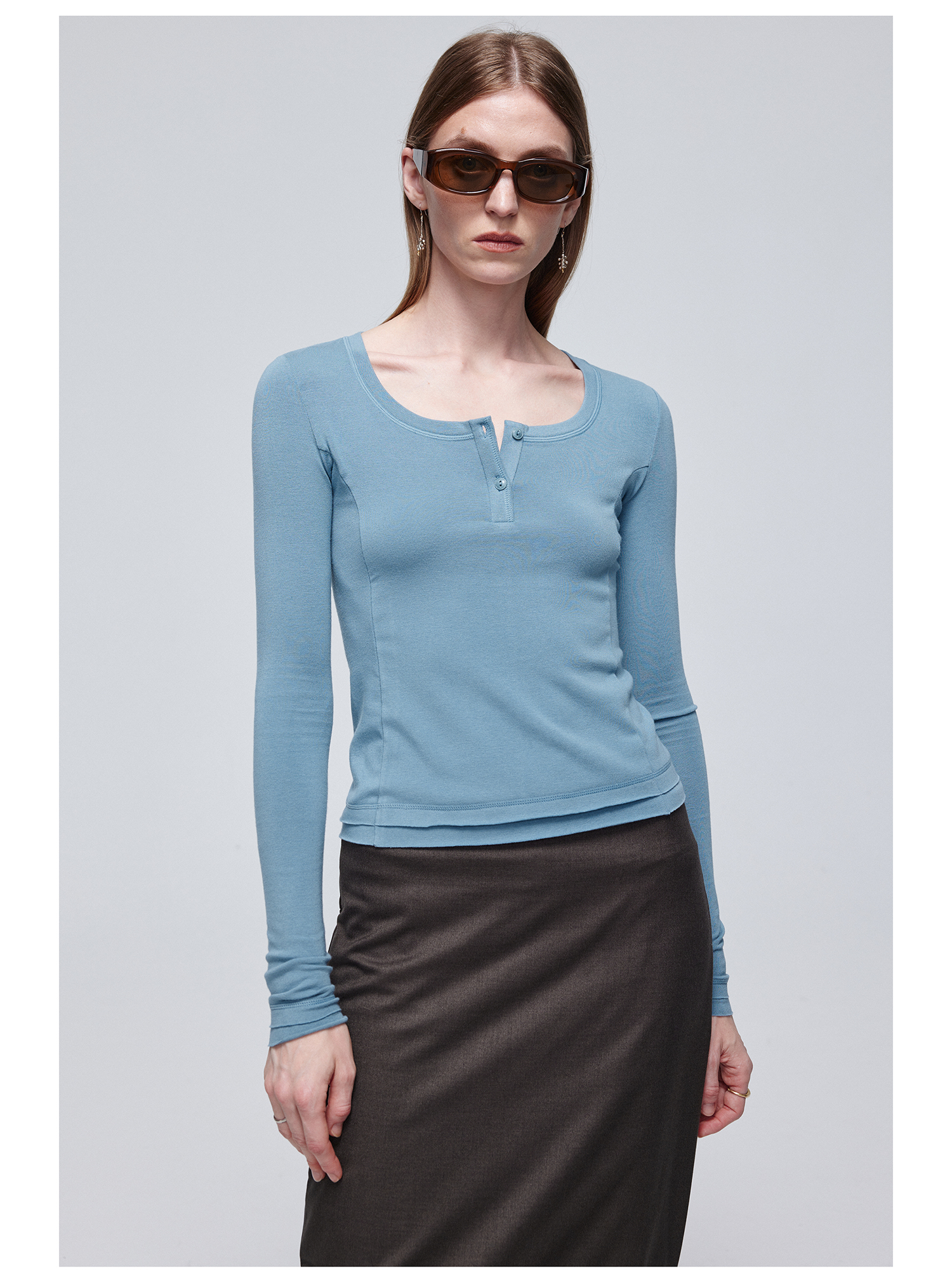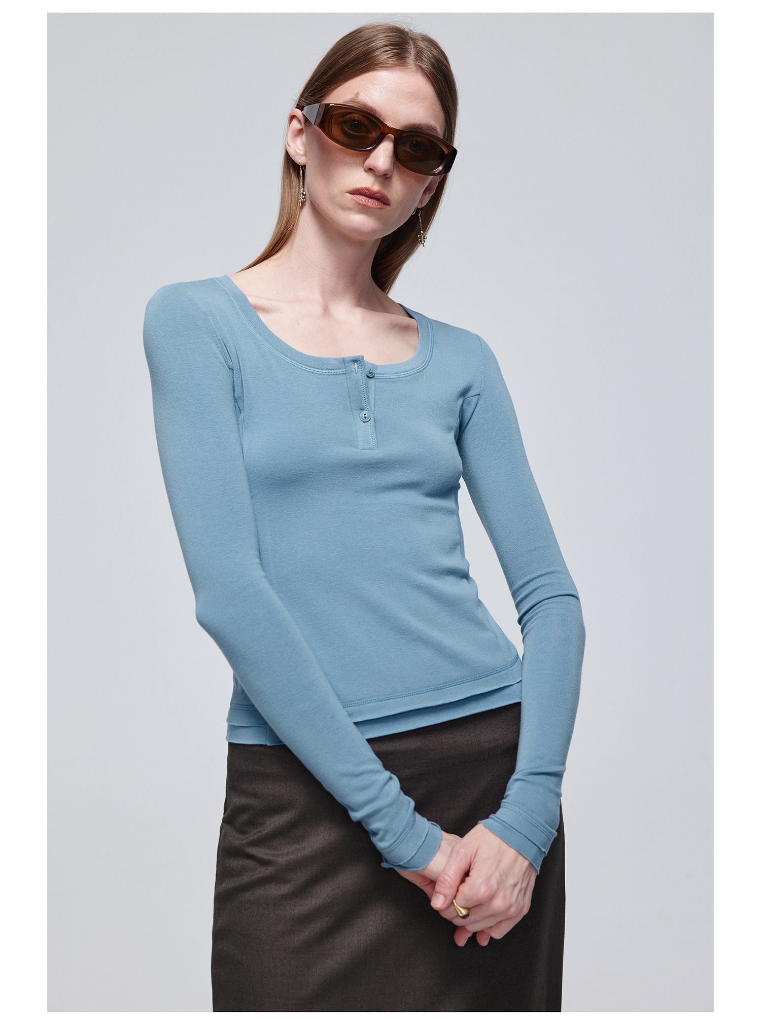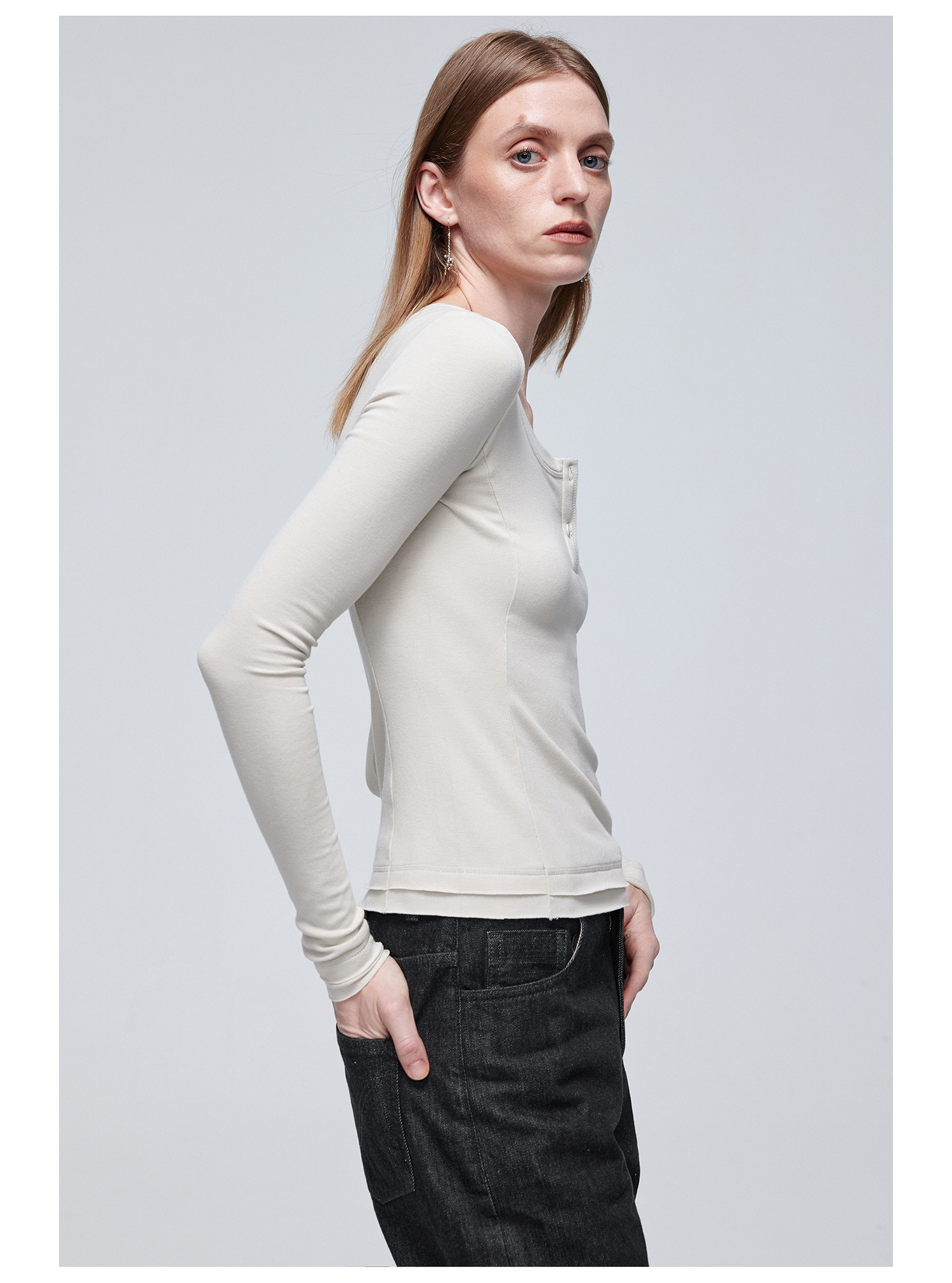 Simple Project/Y24114/假两件U领毛边亨利长袖衫