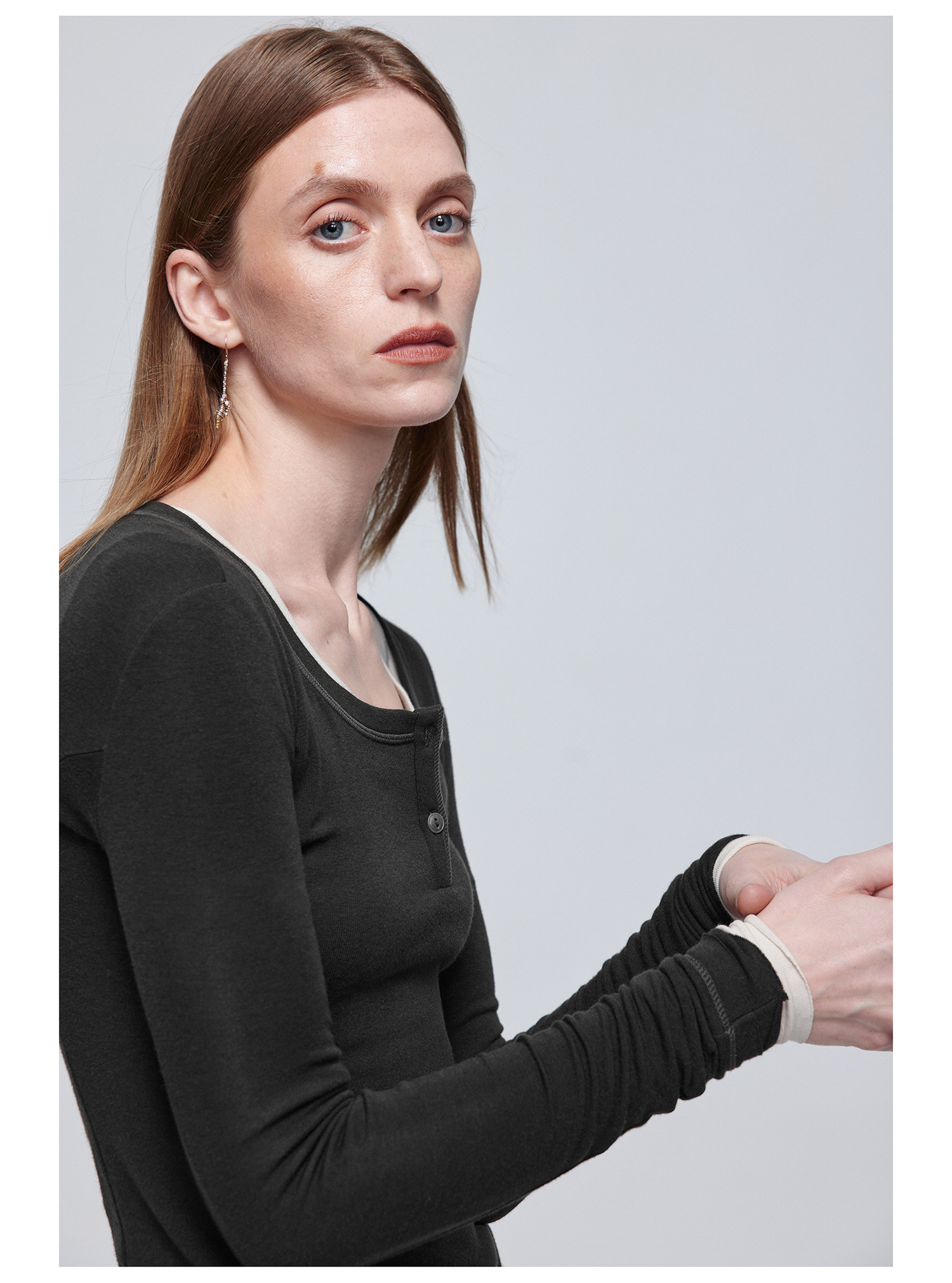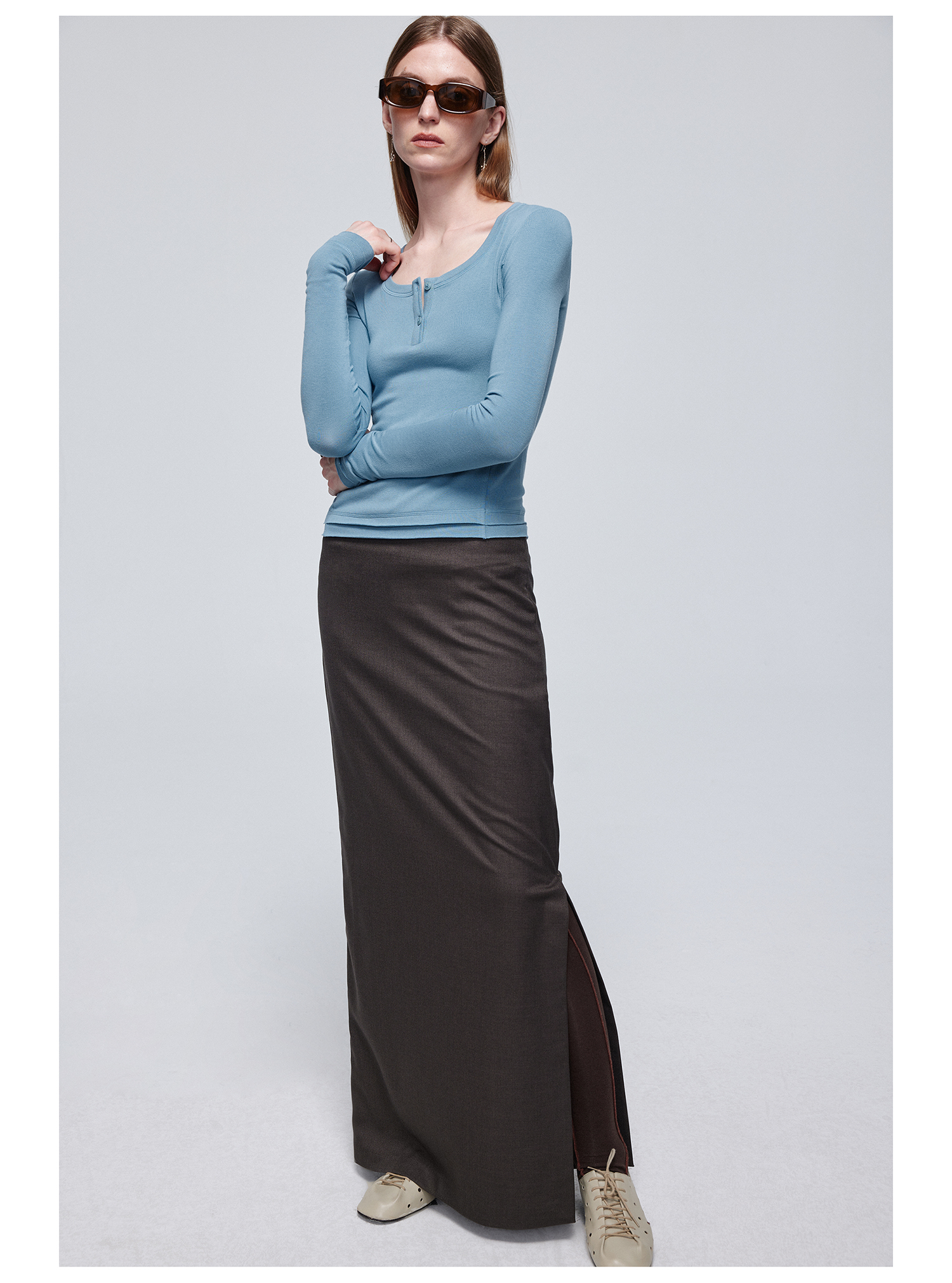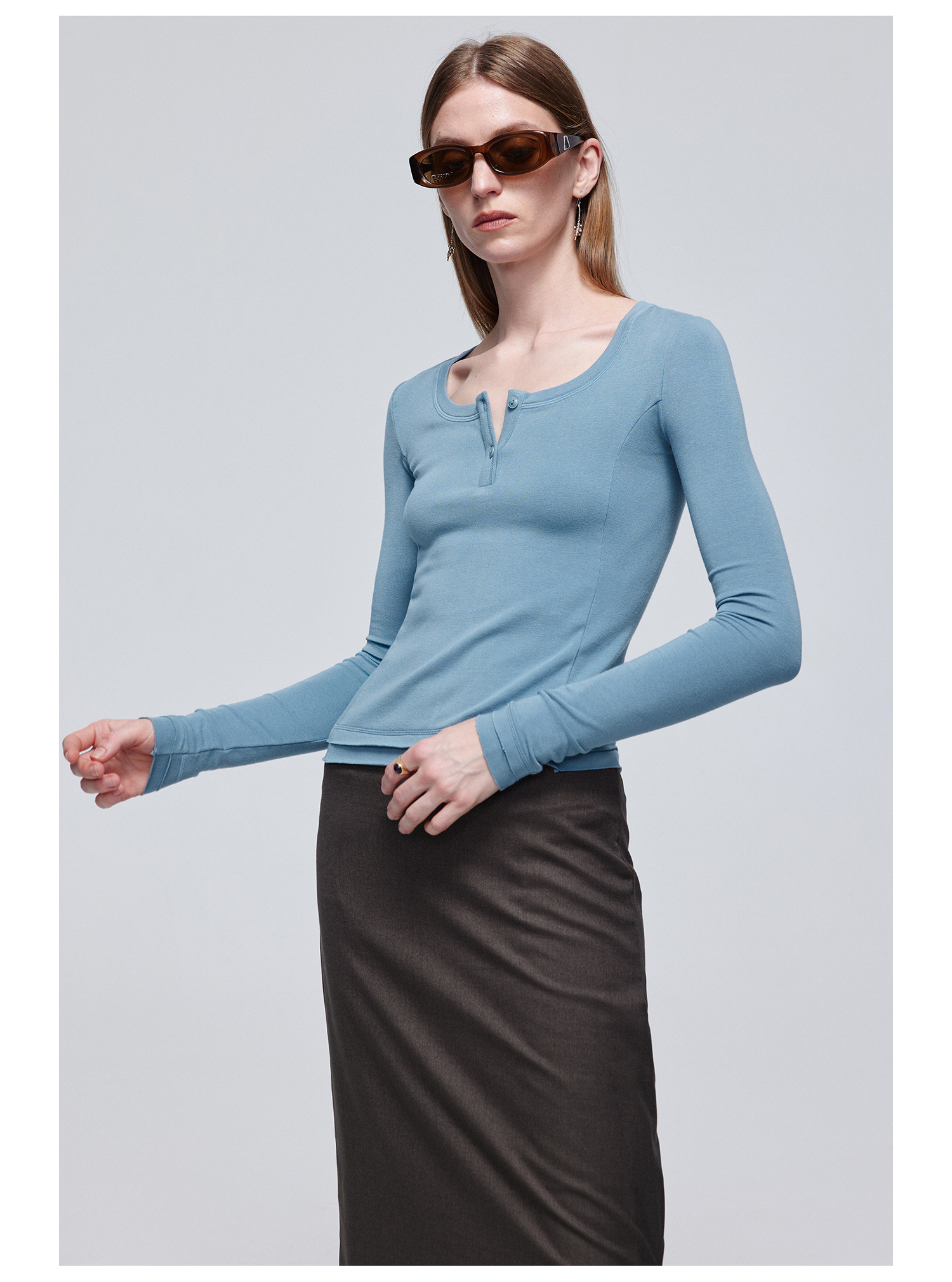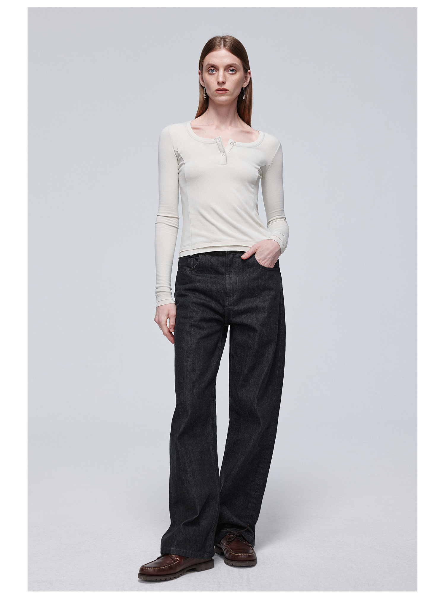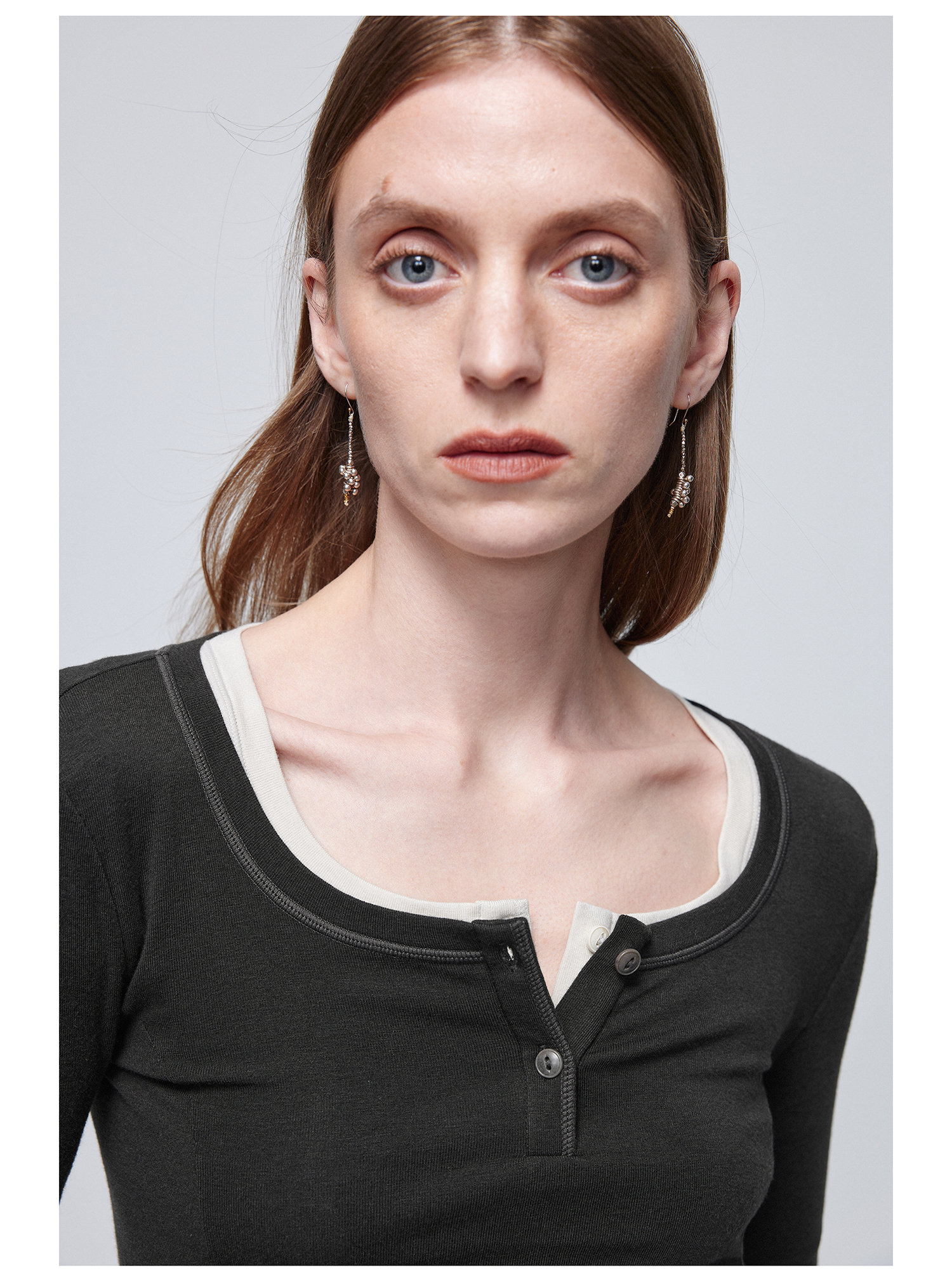 Simple Project/Y24114/假两件U领毛边亨利长袖衫