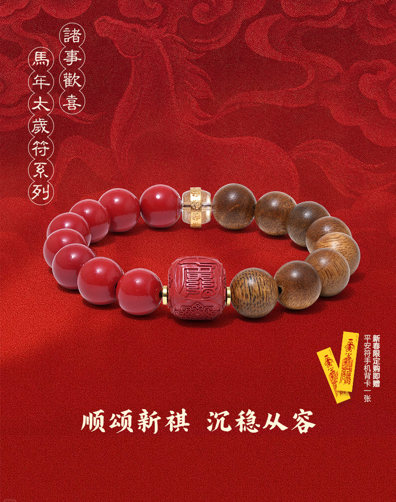 【马年太岁符 好运不打折】 钻石世家X心喜 诸事欢喜马年太岁符系列 马年太岁符朱砂沉香手串 鸿运当头 六面吉文 炽烈好运 事事顺遂【结缘定制、无质量问题不支持退换货】预计3-5天发货