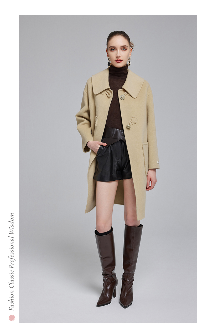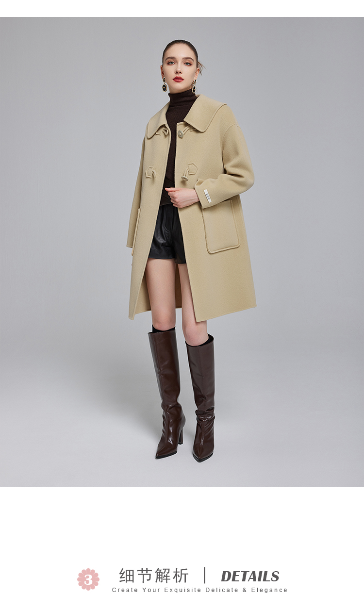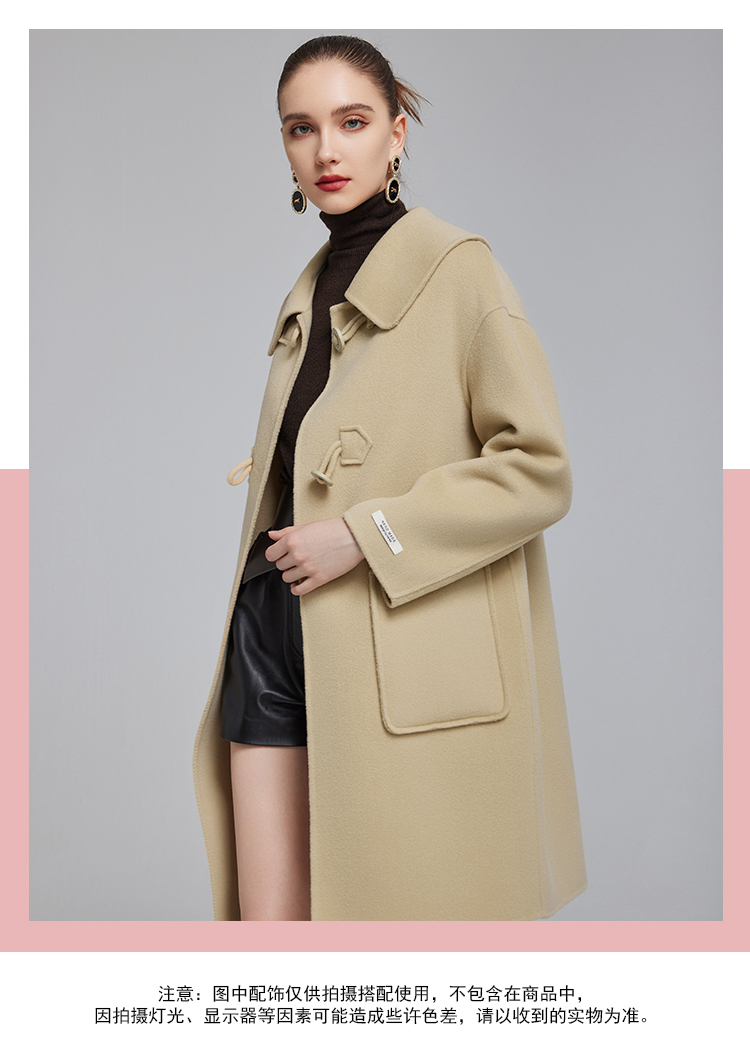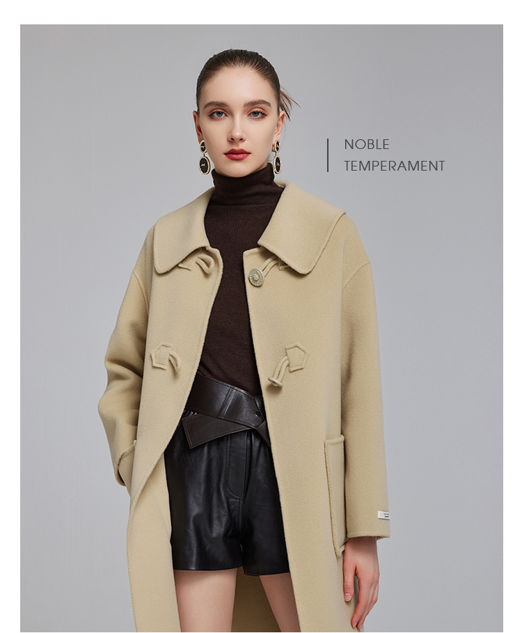 NH915斯尔丽23冬装新款气质时尚翻领装饰扣高级感显高双面呢大衣