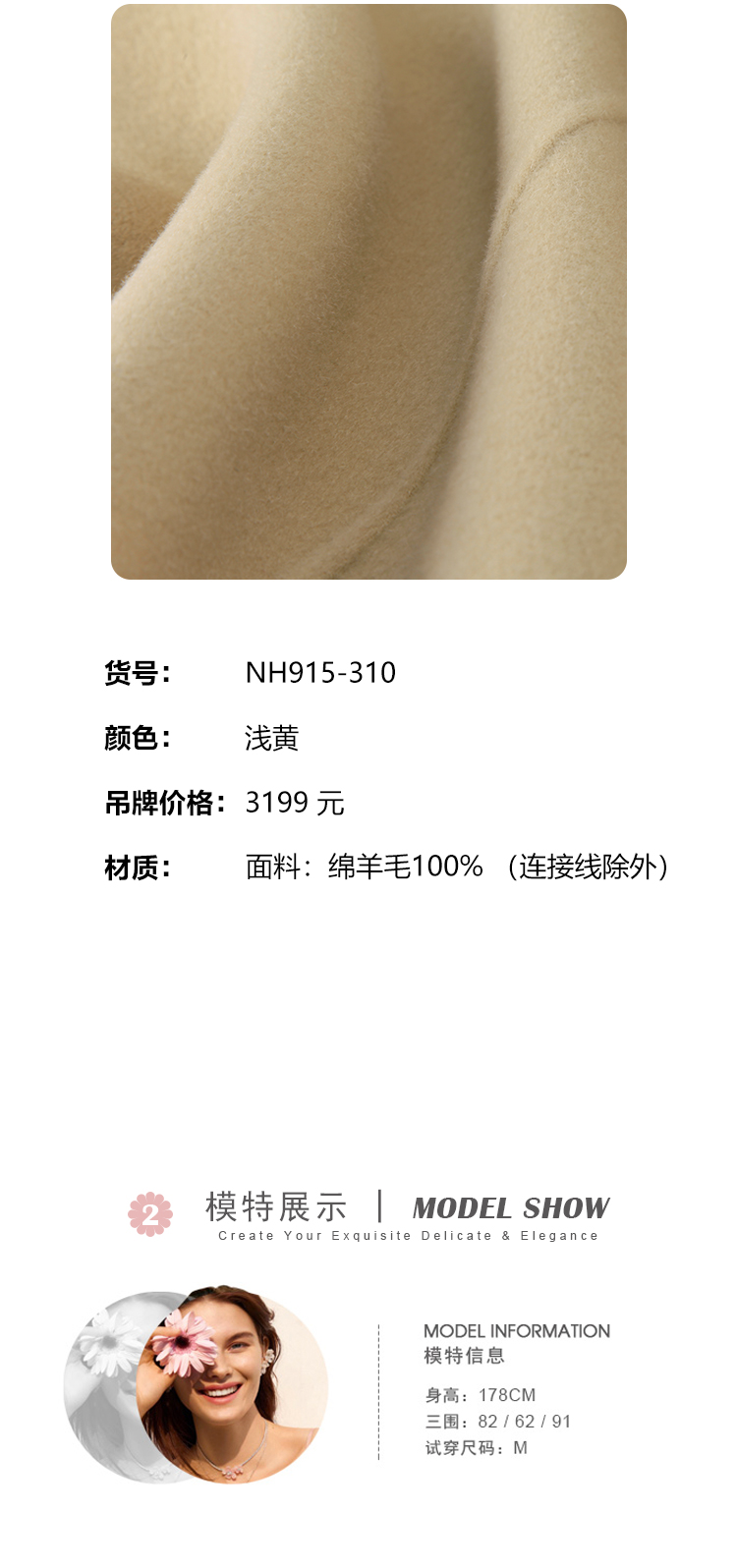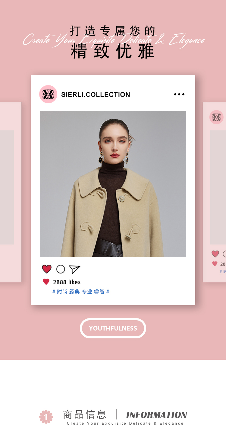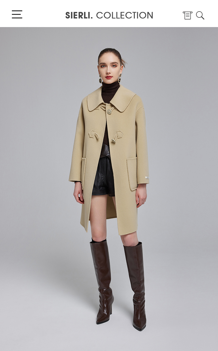 NH915斯尔丽23冬装新款气质时尚翻领装饰扣高级感显高双面呢大衣