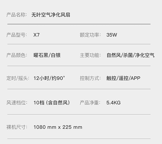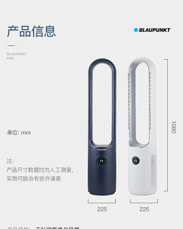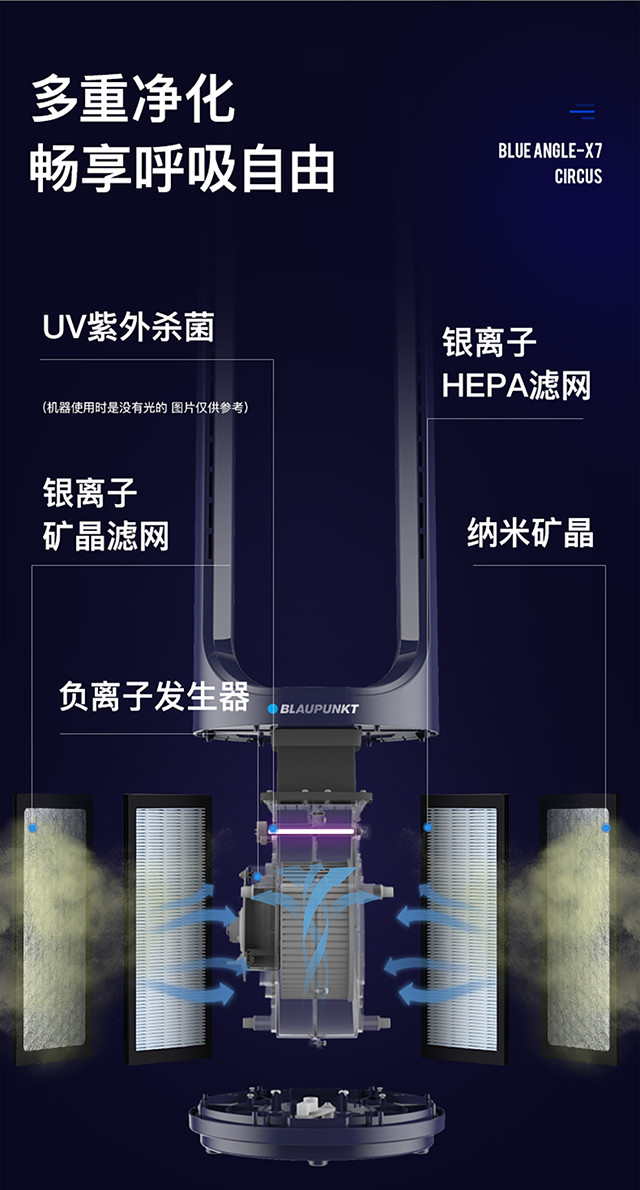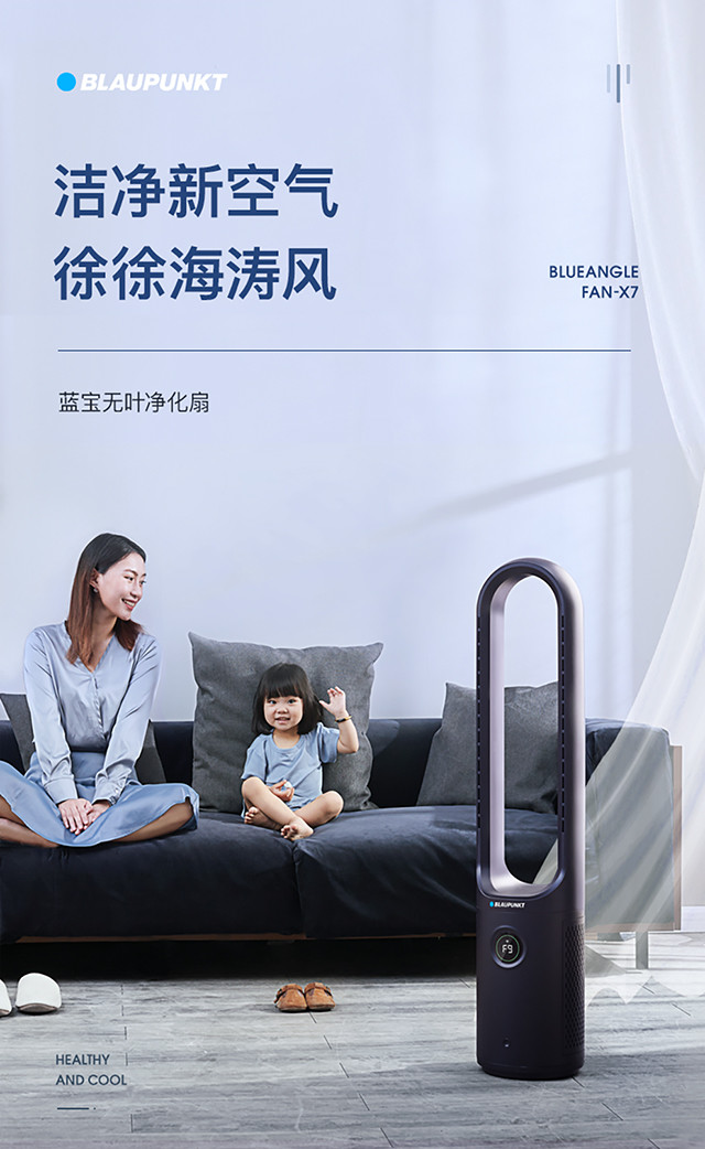 【蓝宝】【来自德国的品质】蓝宝Blaupunkt无叶风扇净化空气低噪声高颜值X7【蓝宝】