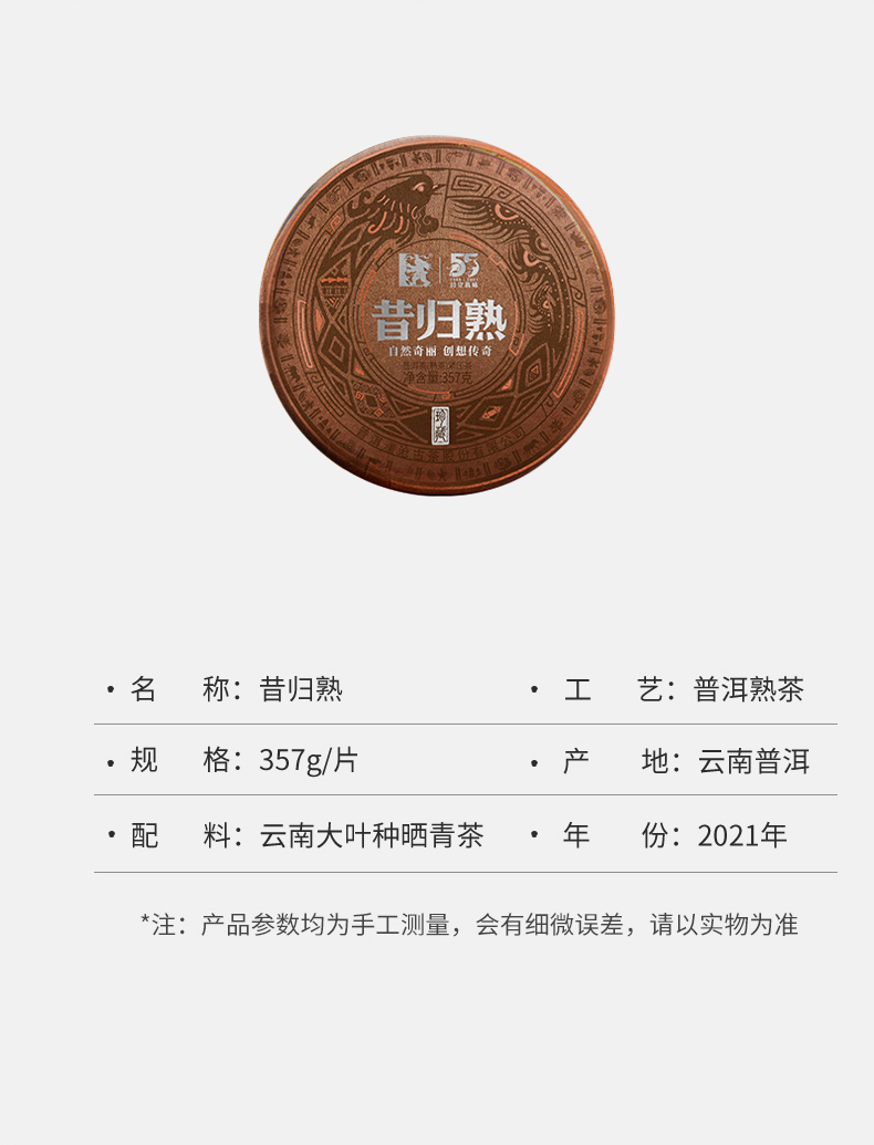 澜沧古茶2021年昔归熟普洱茶熟茶云南茶叶古树茶纯料熟普茶饼