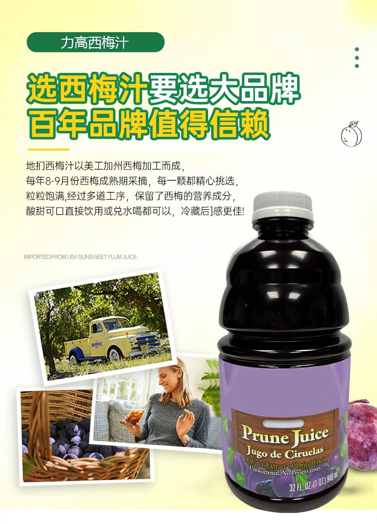 美国力高西梅汁946ml/022922 含膳食纤维助力肠道运动