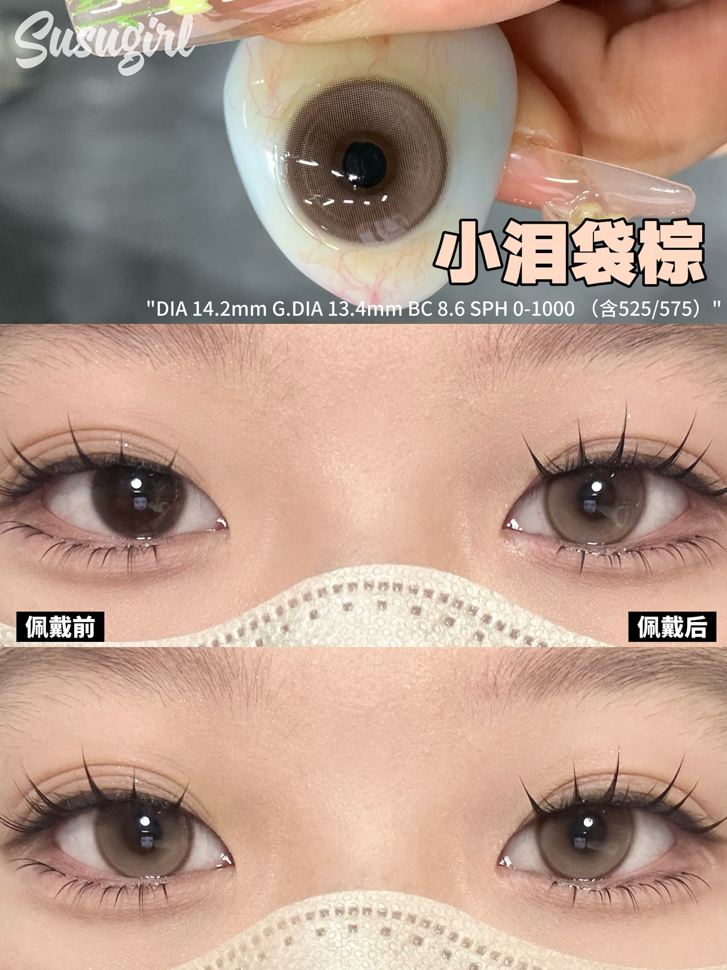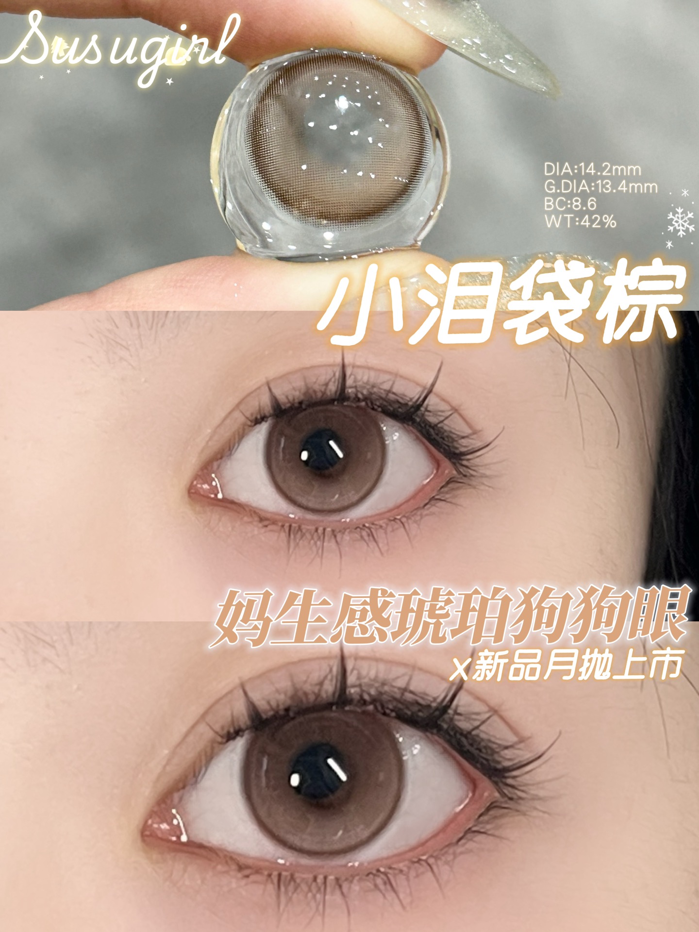 susugirl月抛 小泪袋棕/小泪袋灰 14.2mm 水凝胶