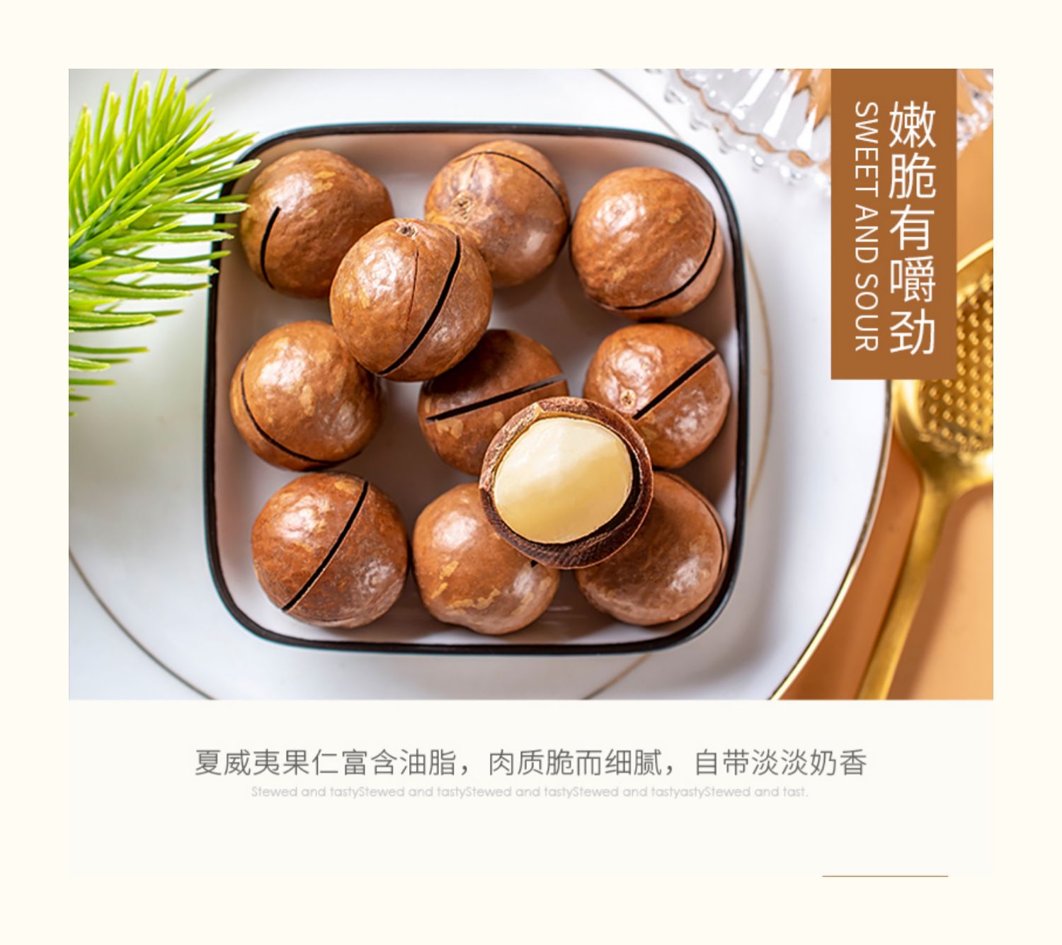 2.坚果之王夏威夷果,含有人体必需的8种氨基酸,还富含矿物质和维生素;
