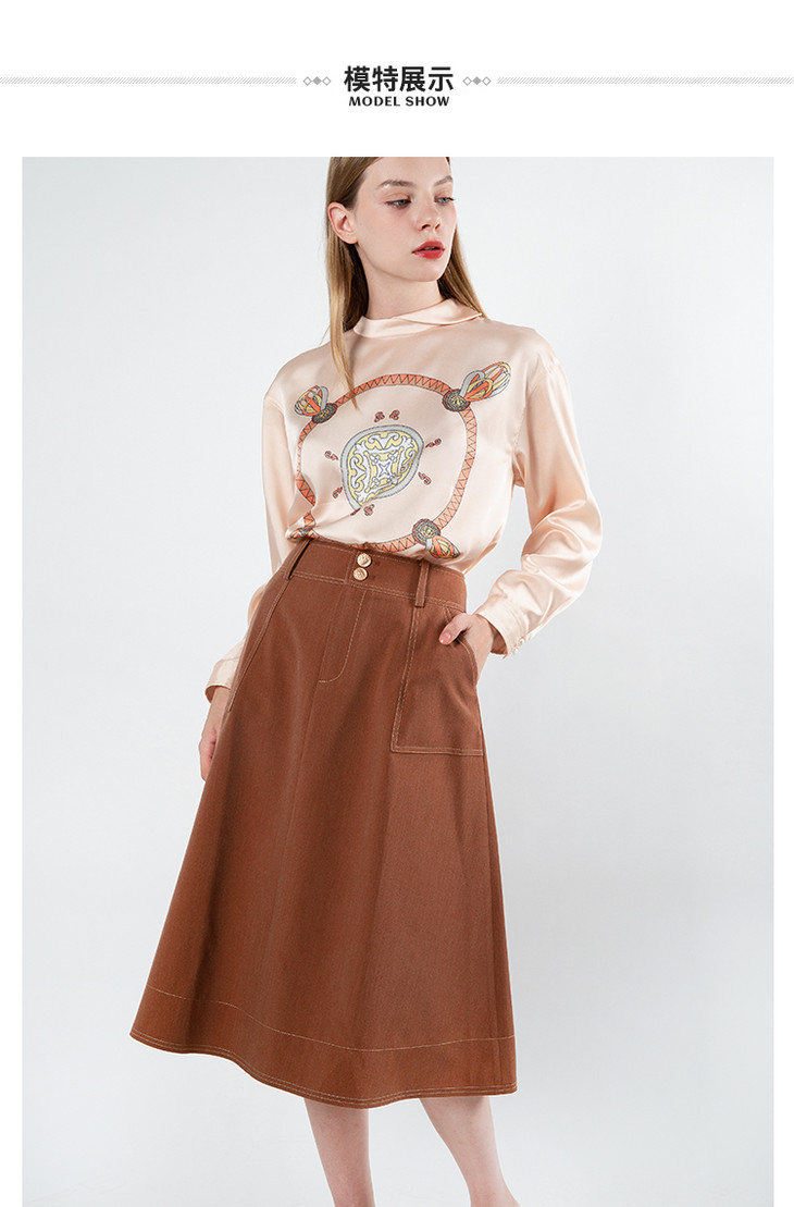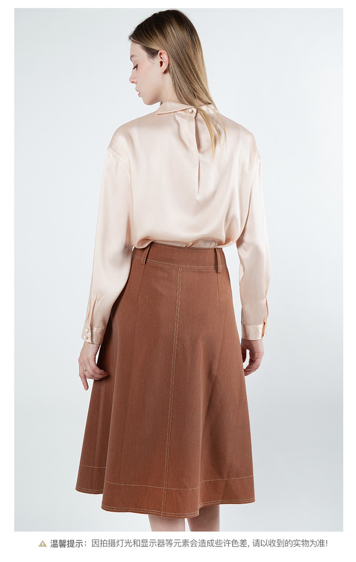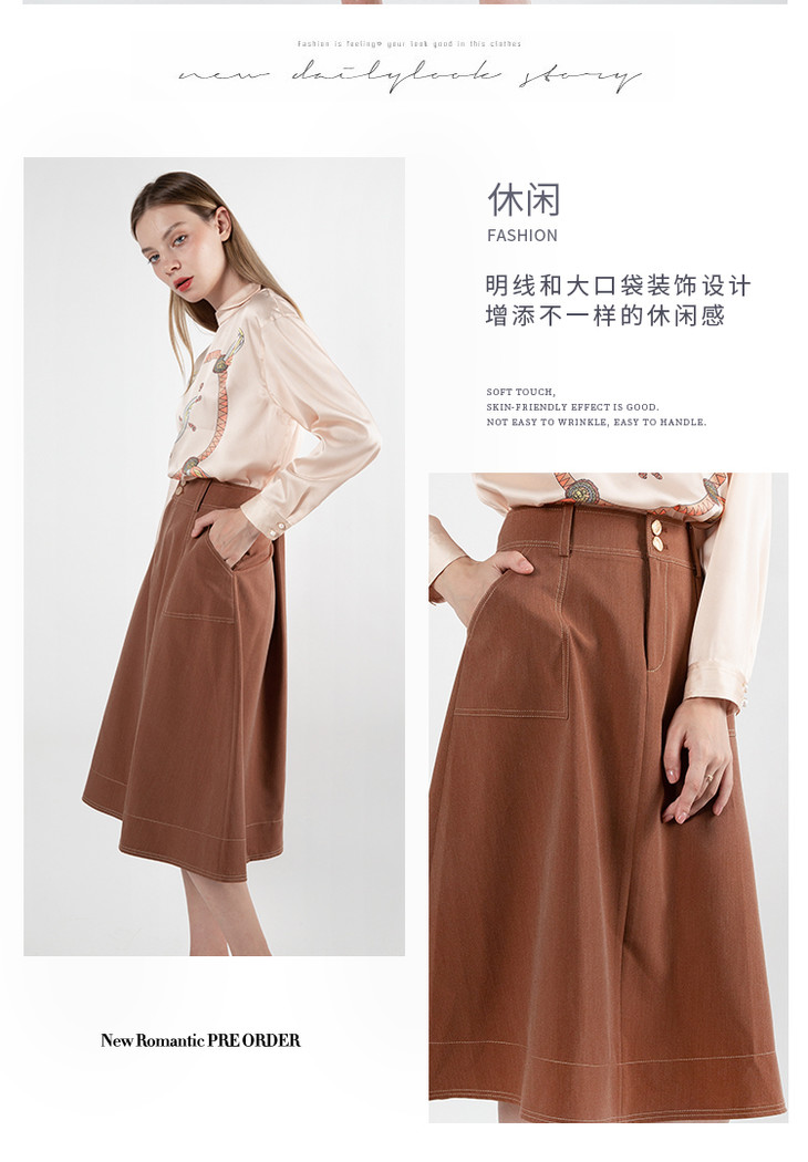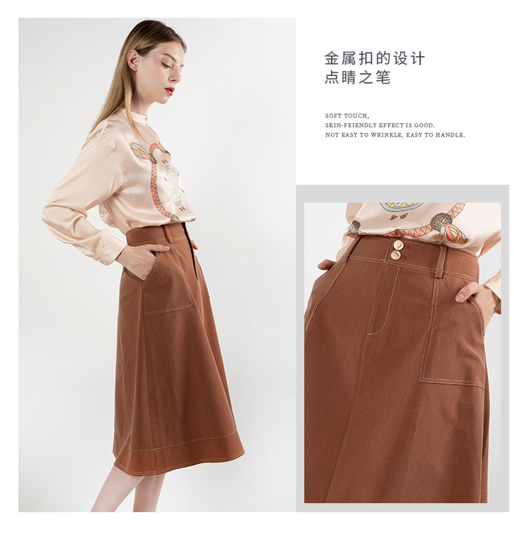 【抄底价不退换】A.JINGNA秋季深驼色A字天丝牛仔半裙A23Q113057