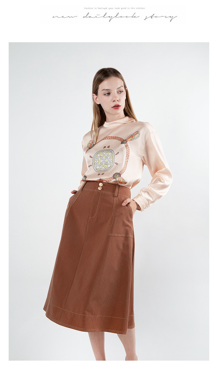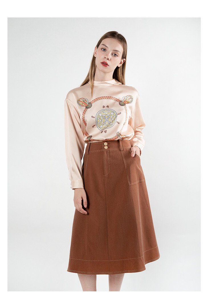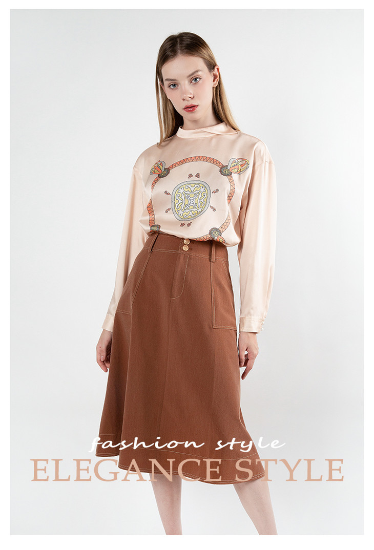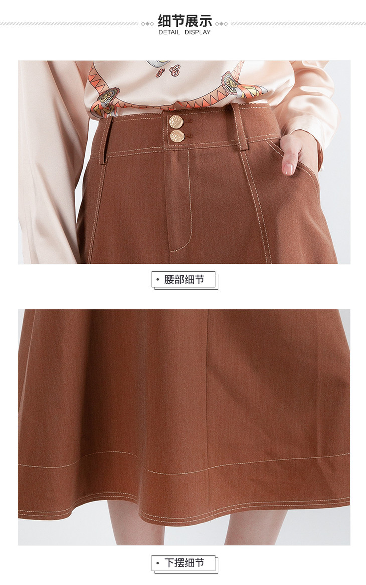 【抄底价不退换】A.JINGNA秋季深驼色A字天丝牛仔半裙A23Q113057