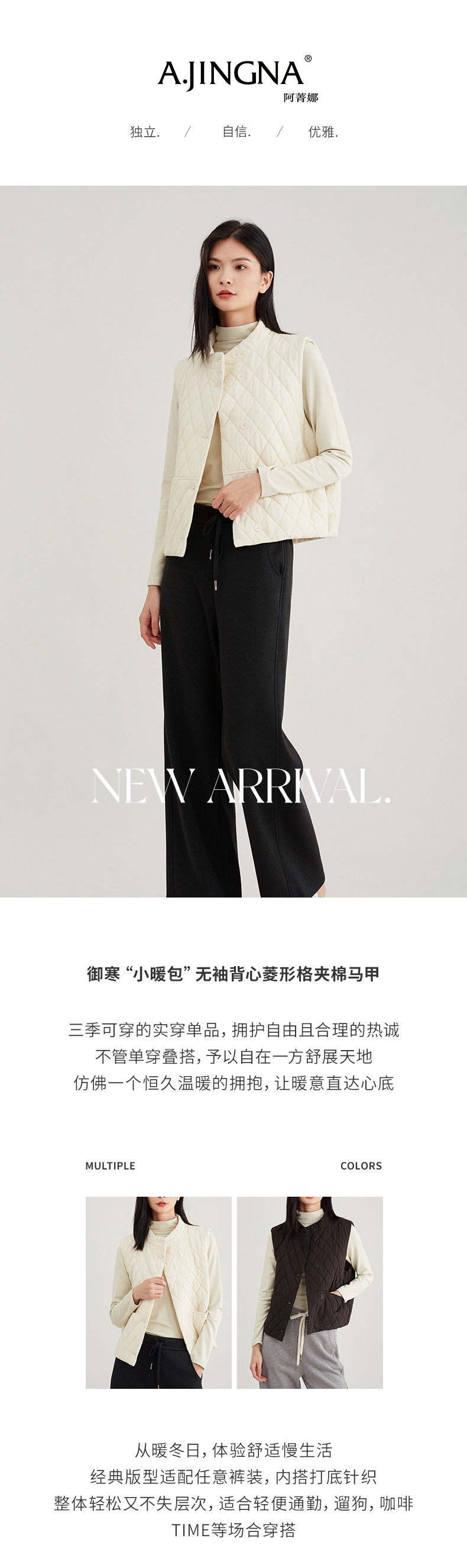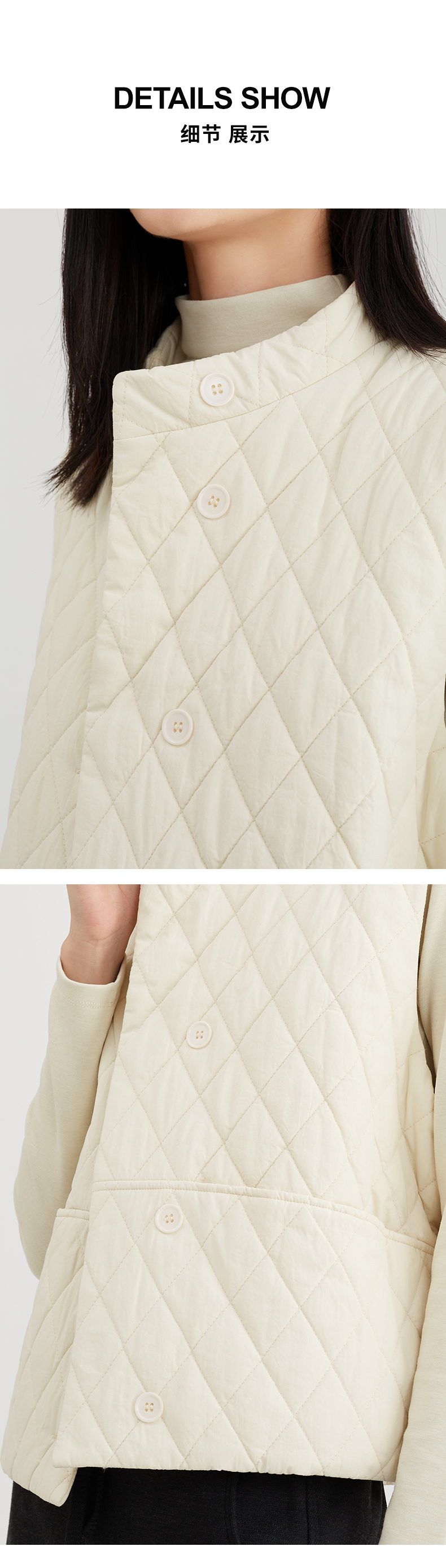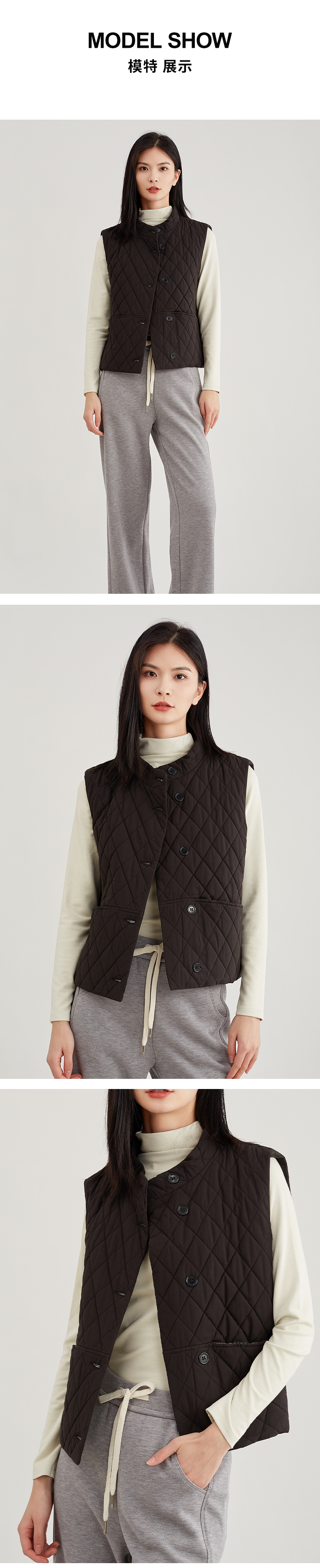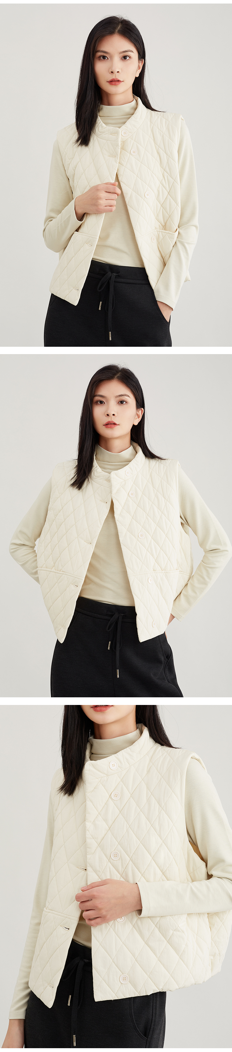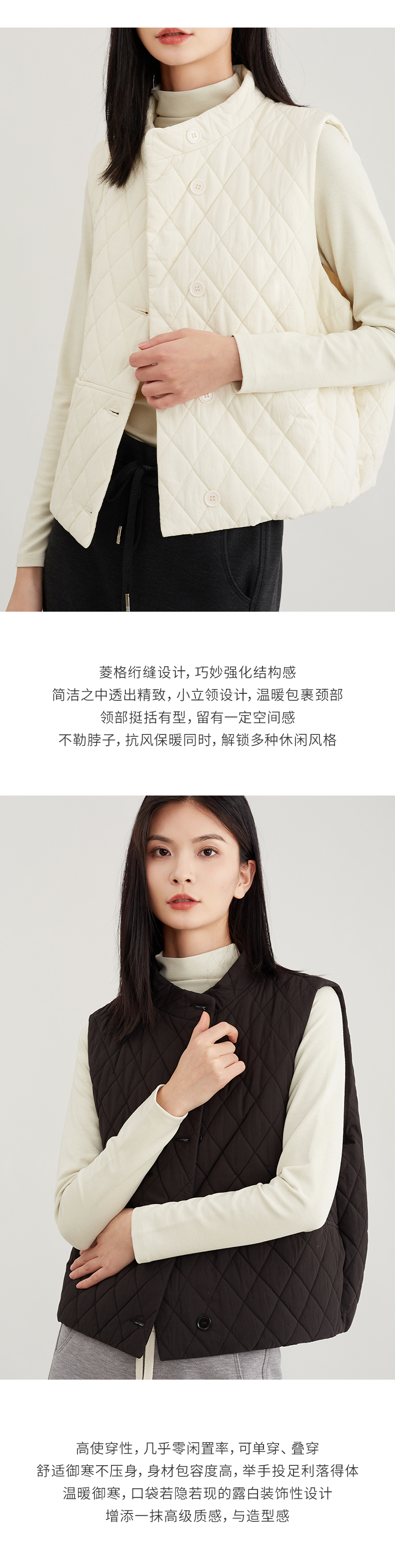 【御寒“小暖包”】阿菁娜无袖背心菱形格夹棉马甲F29D203009