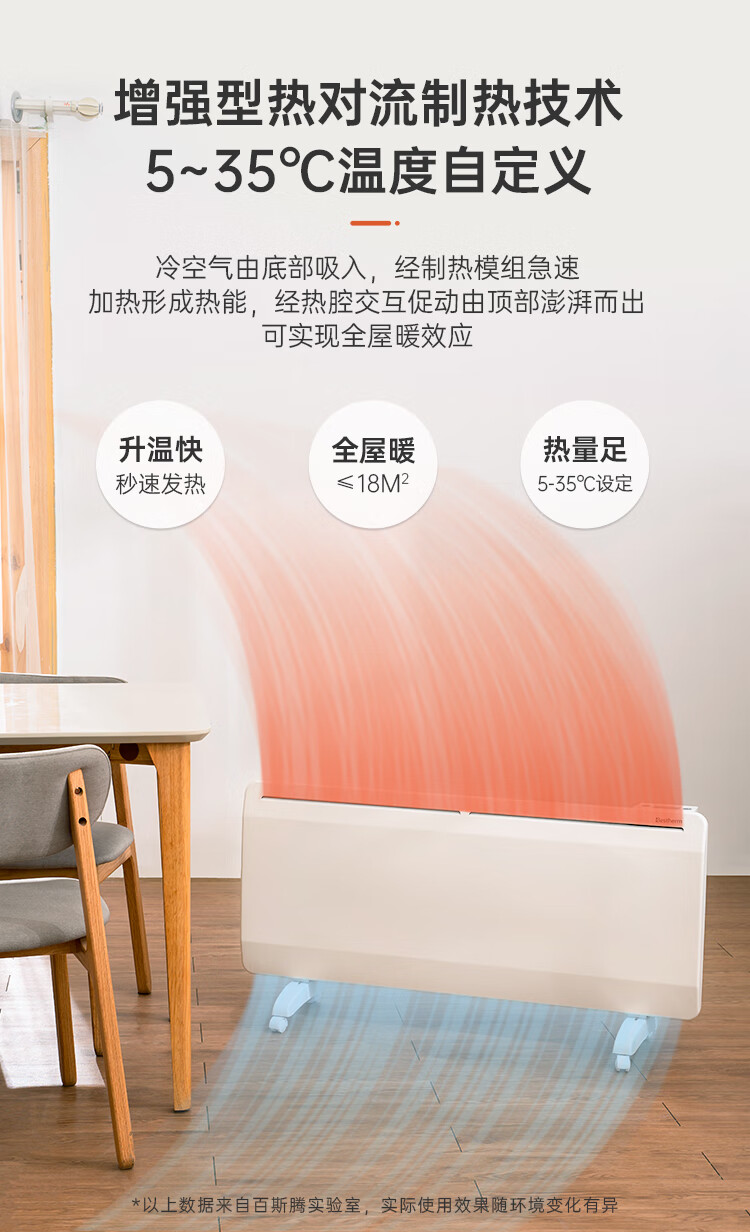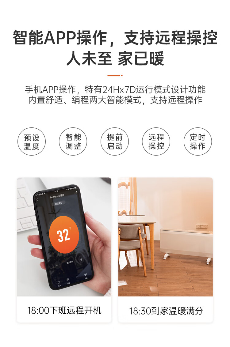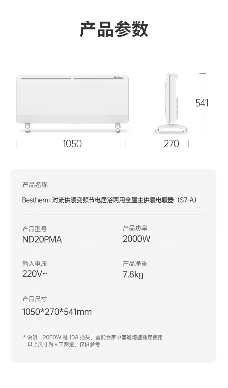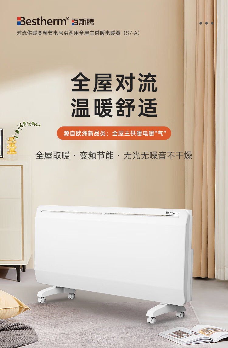 百斯腾(Bestherm) 家用居浴防水智能恒温对流壁挂落地两用全屋取暖器电暖器电暖气暖气片S7-A APP操作预约定时+倾倒断电+童锁适用于18㎡以内