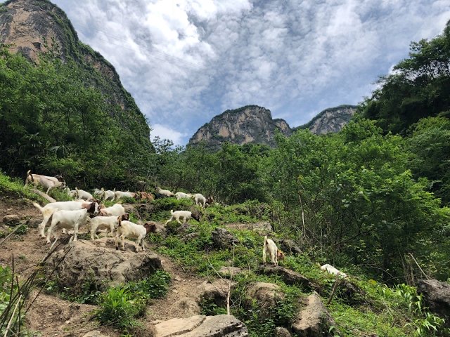 14年底回家接手家里的果园,不知不觉过去很多年了。果园采取山上放羊山下种果树的模式,这是基地的全貌