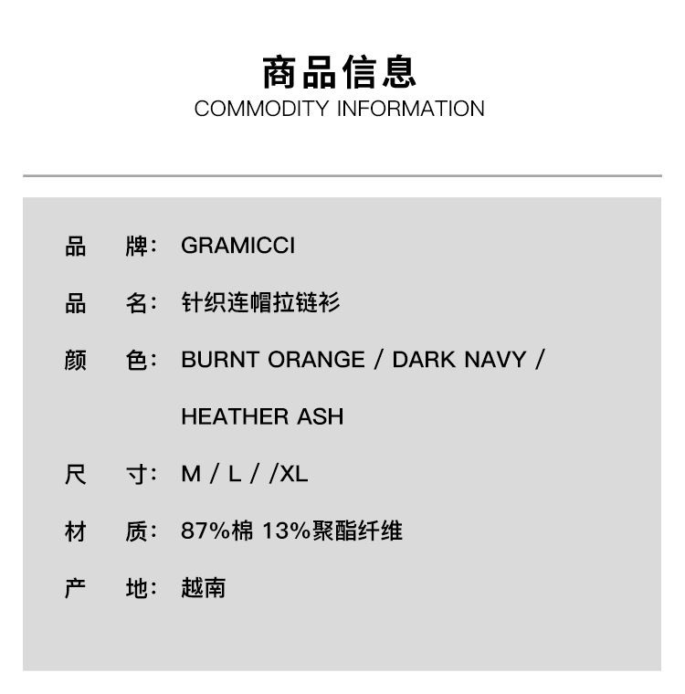 GRAMICCI ONE POINT ZIP HOODED SWEATSHIRT 针织连帽拉链衫 卫衣