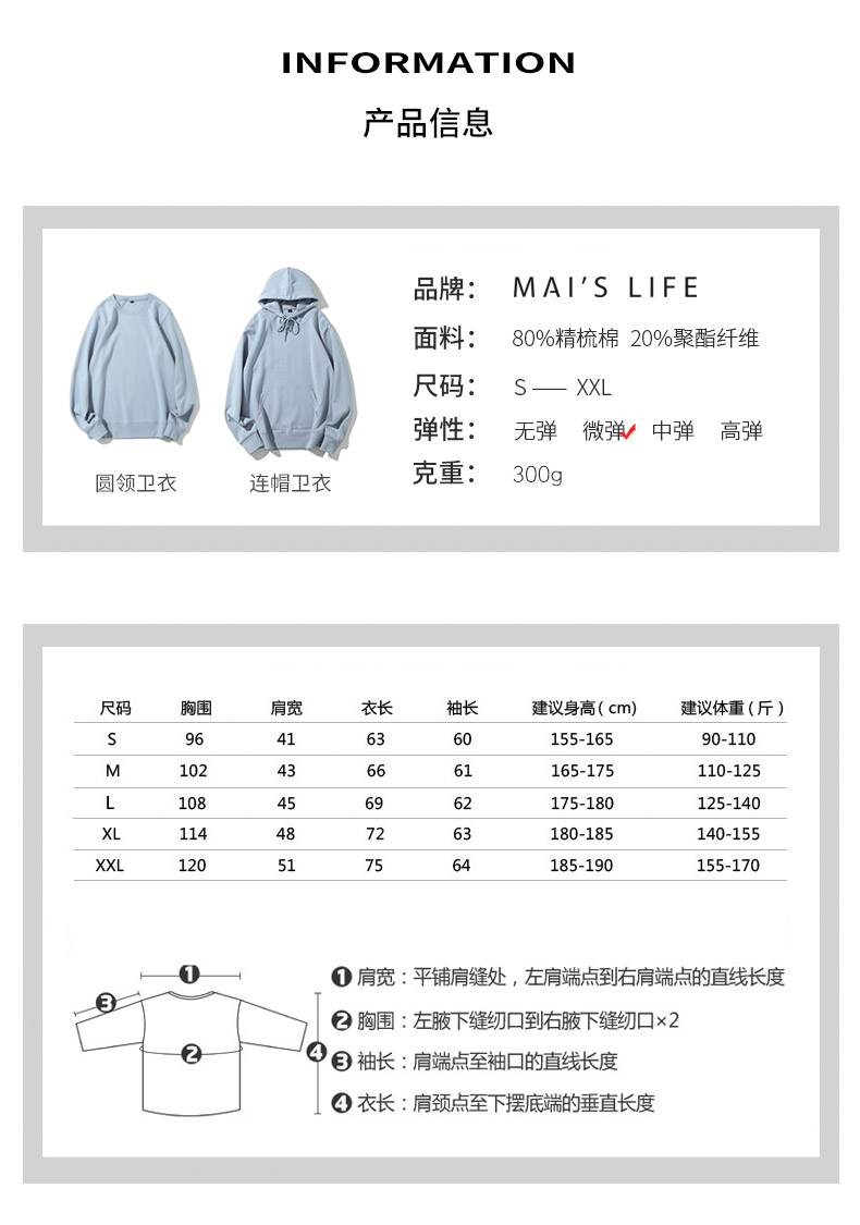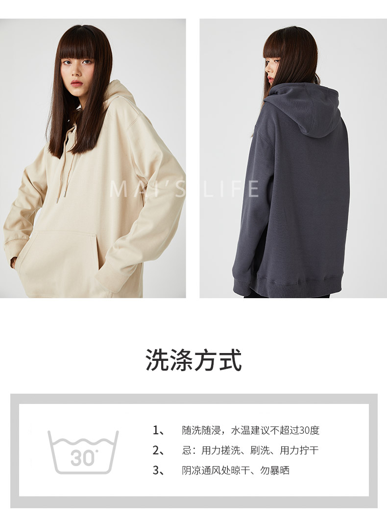 2022春款麻衣森活情侣款圆领款带帽款卫衣