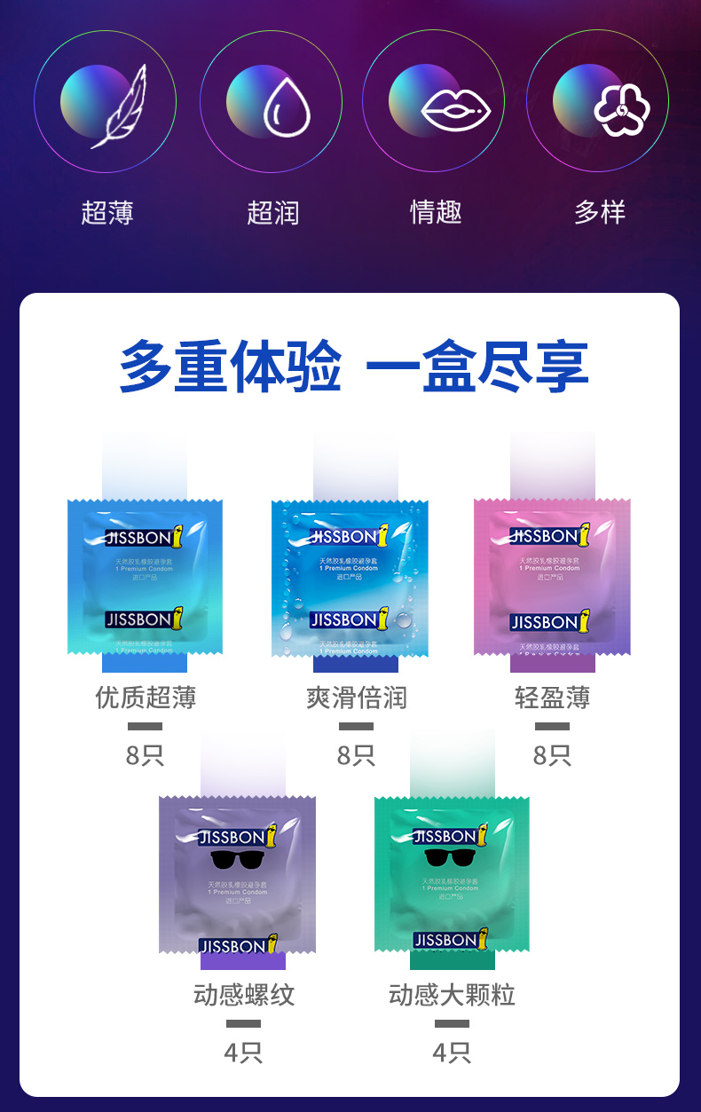 杰士邦超薄避孕套安全套凸点大颗粒玻尿酸进口套套男女用计生成人用品 情趣超薄五合一32只装