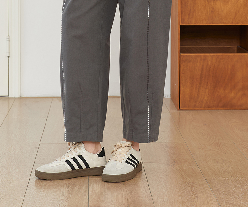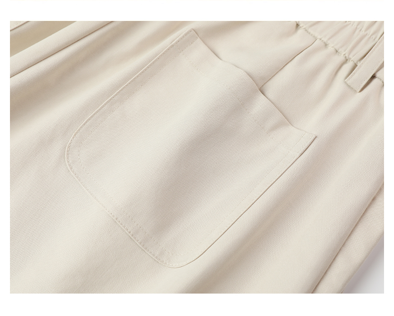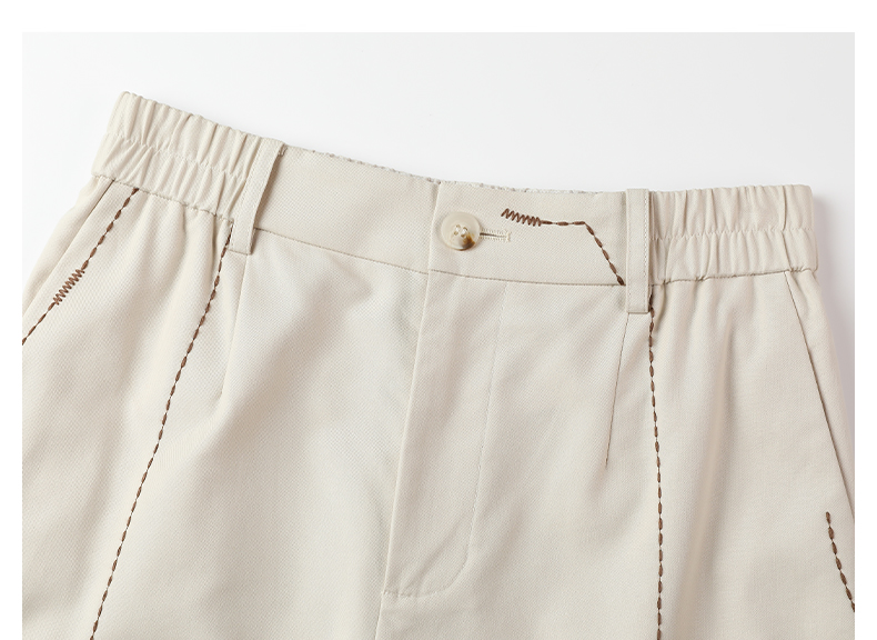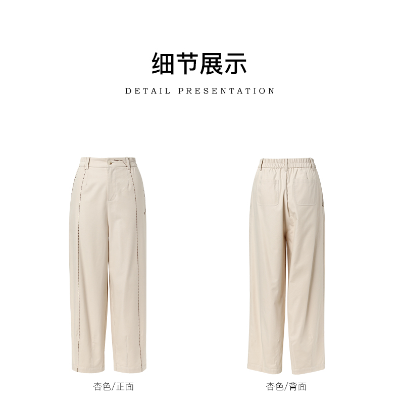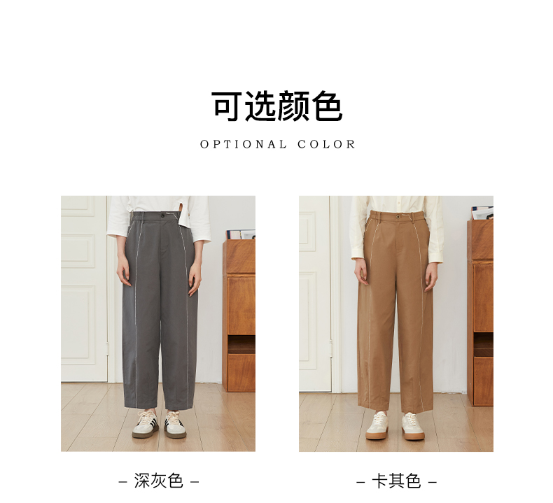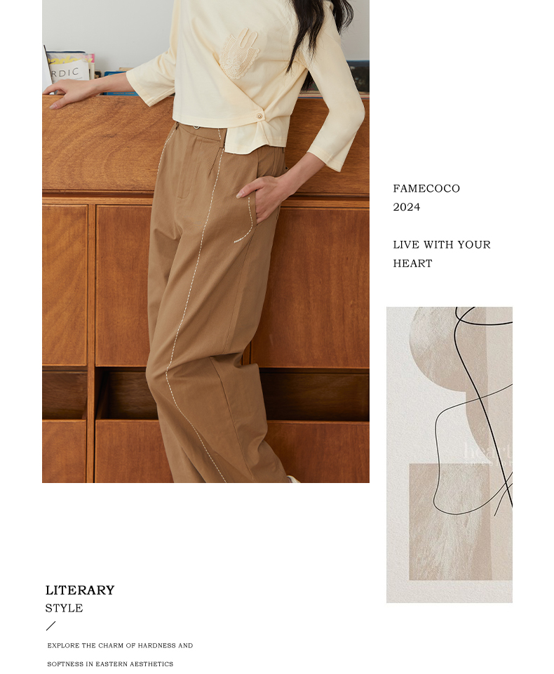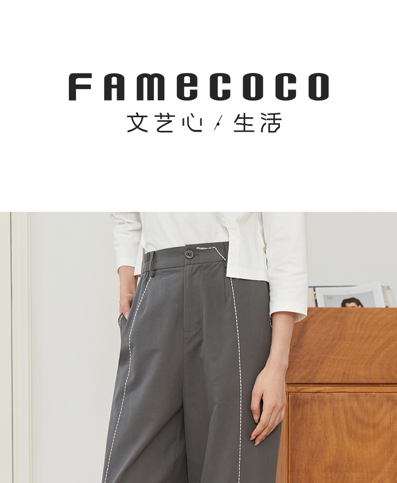 Famecoco文艺范简约立体明线棉质休闲宽松显瘦直筒裤春秋款FAB6GA014