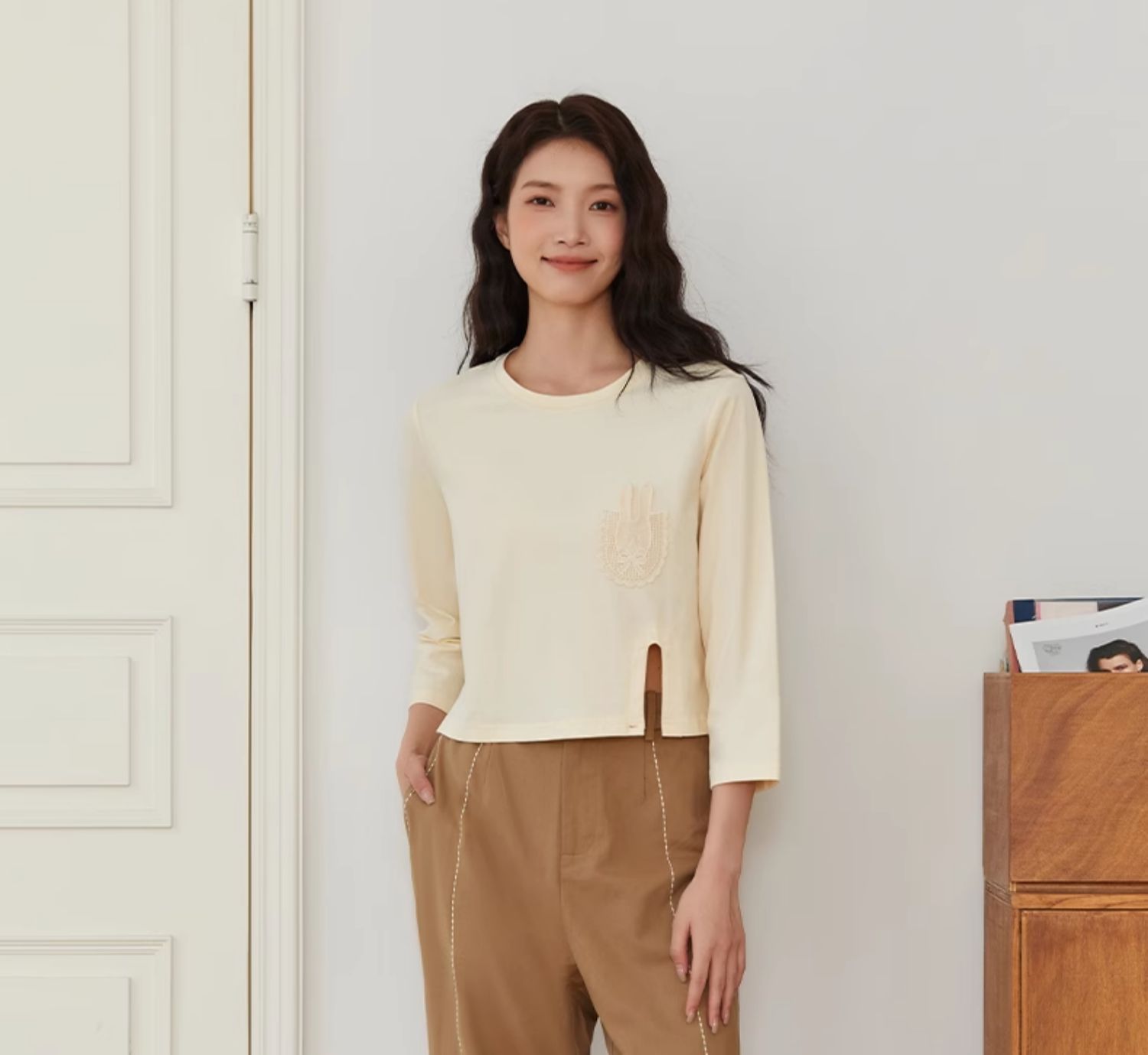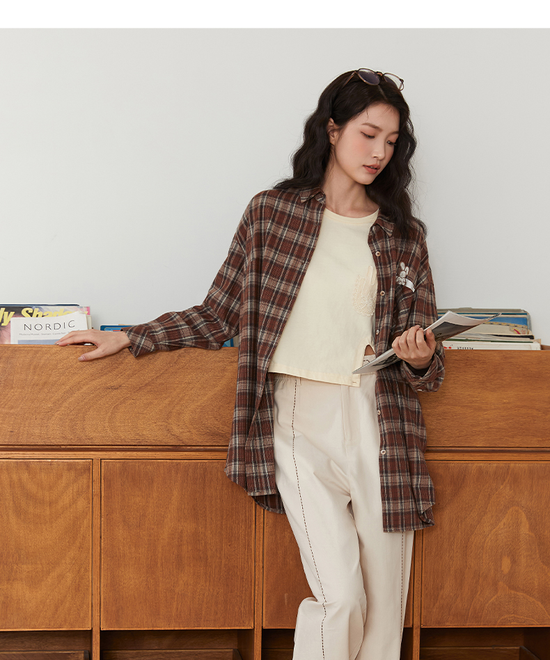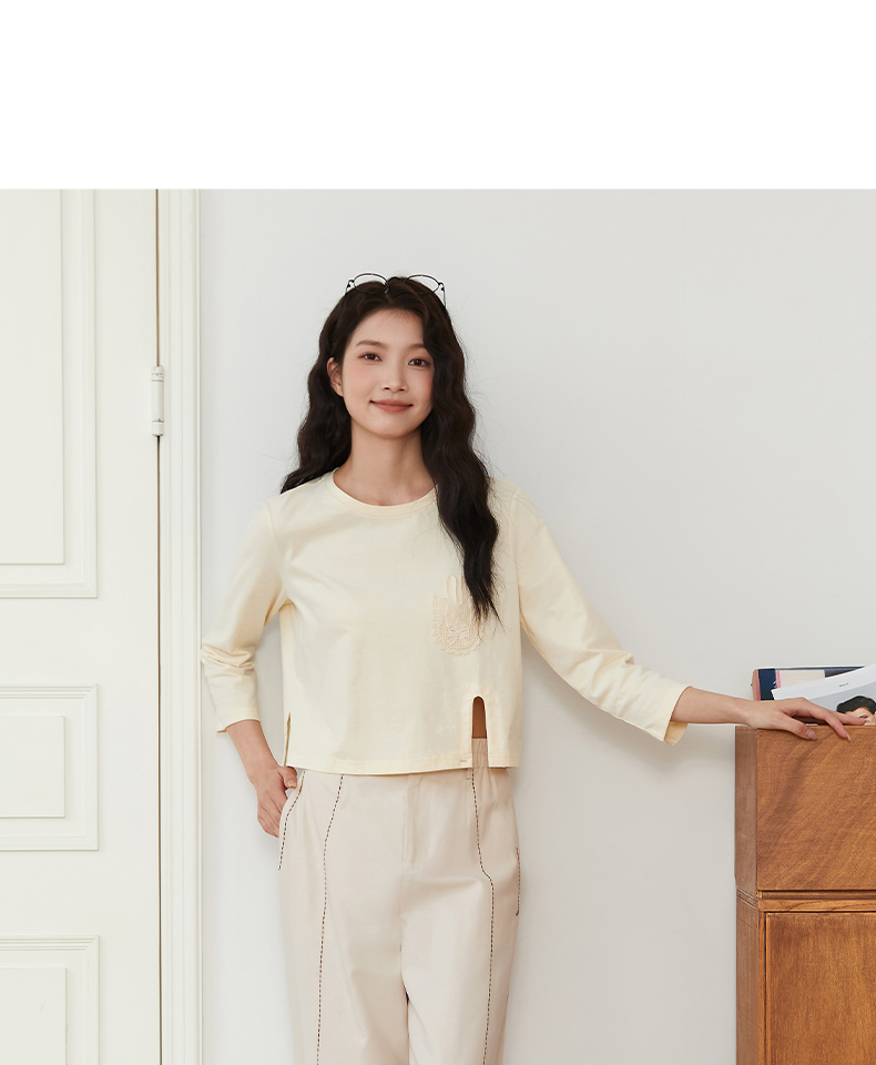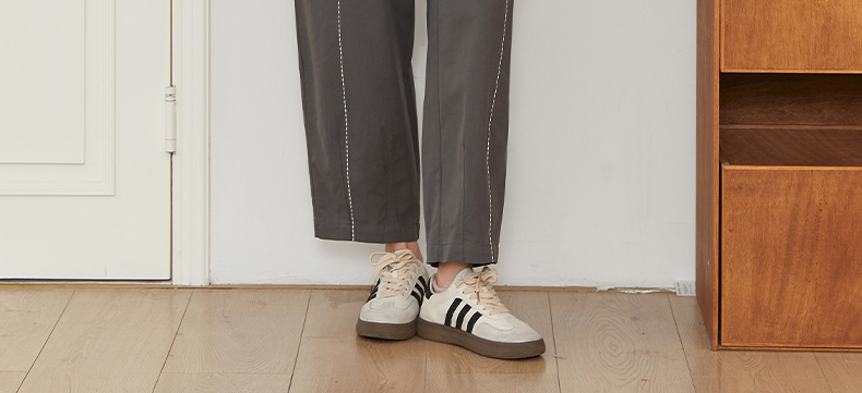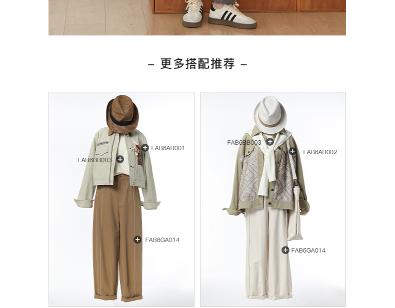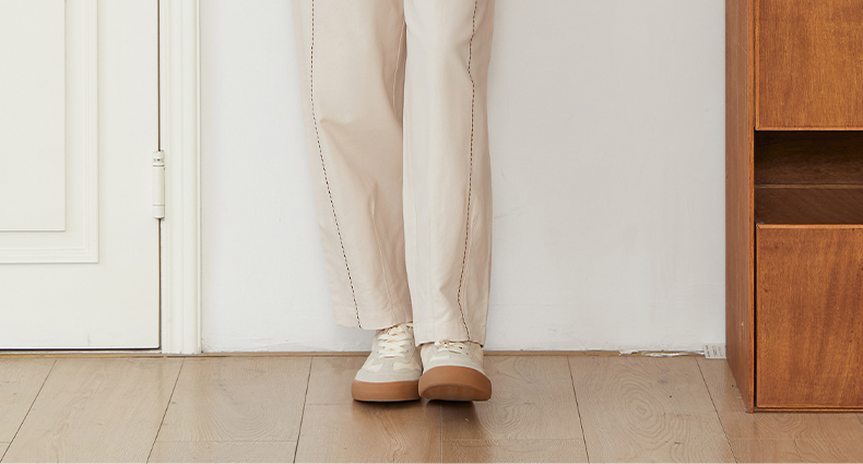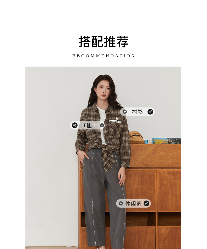 Famecoco文艺范简约立体明线棉质休闲宽松显瘦直筒裤春秋款FAB6GA014