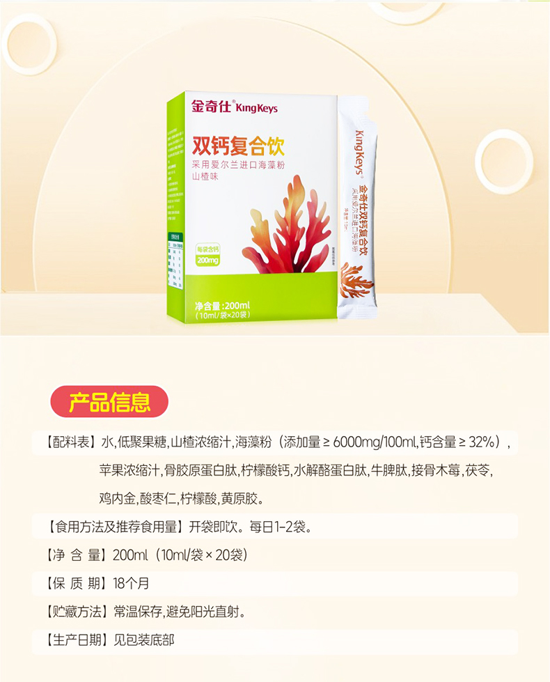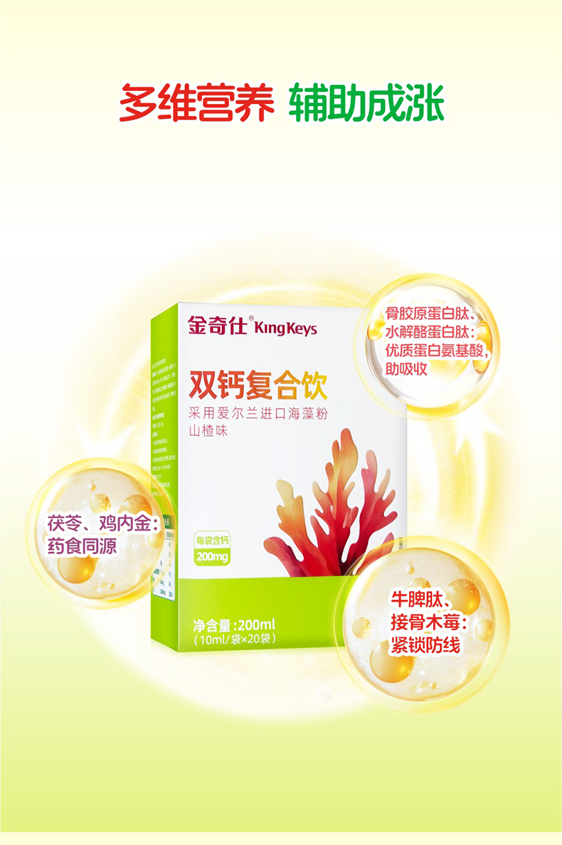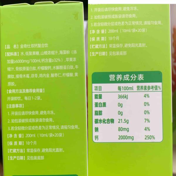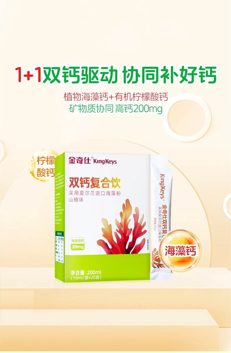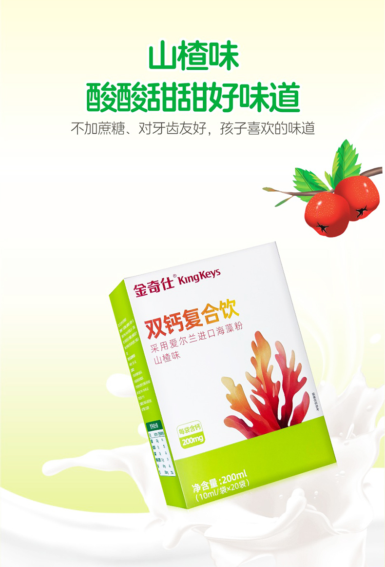⁵99元3盒【液体双钙】每袋含200mg钙 海藻钙+柠檬酸钙+益生元 山楂味 一盒20袋 【金奇仕】 YY05-QTT-LYB