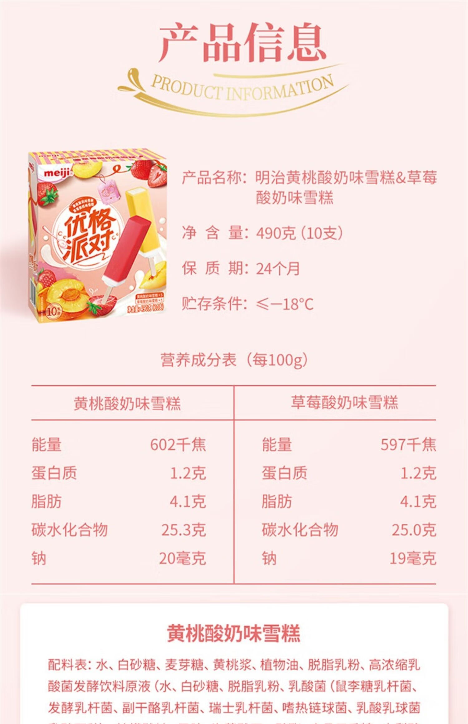 明治(Meiji) 黄桃酸奶味草莓酸奶味雪糕 490g(10支)/盒
