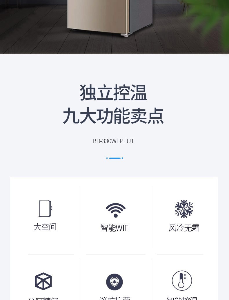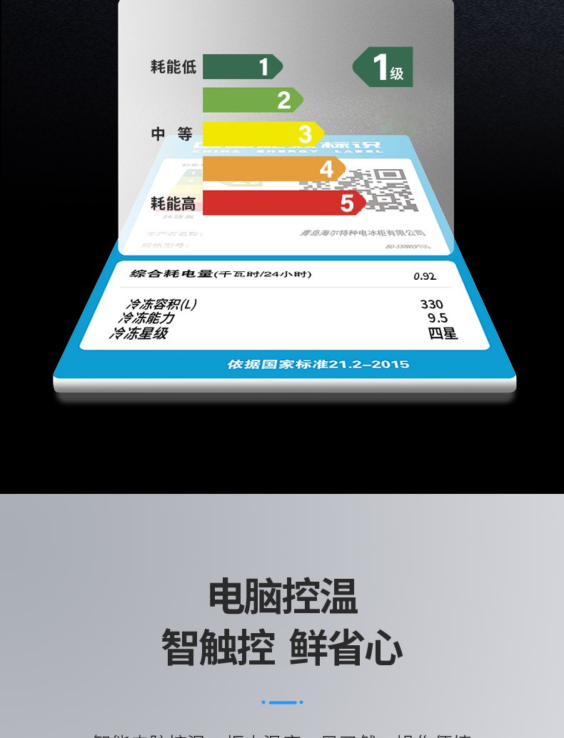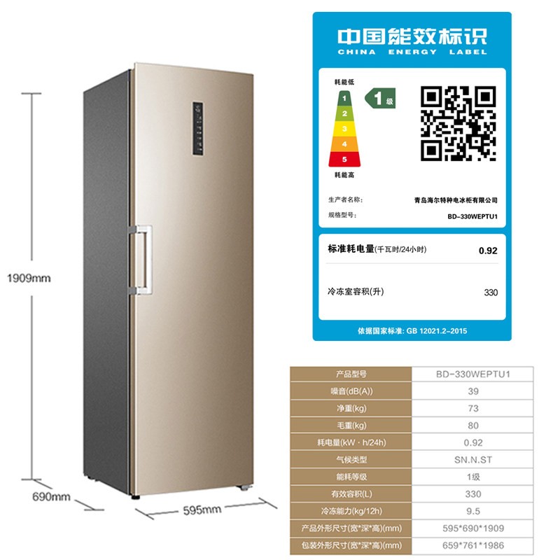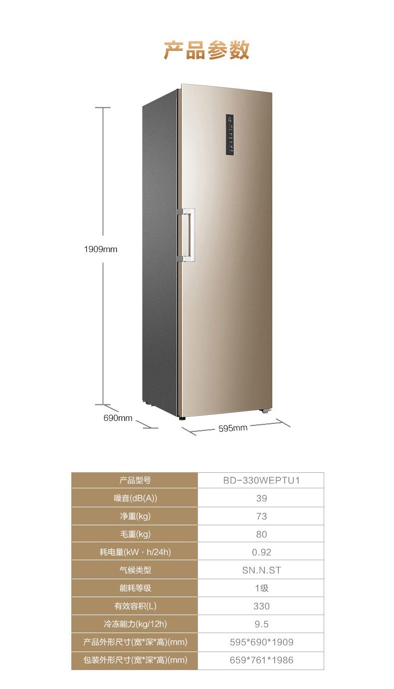 海尔(Haier)立式冰柜家用 风冷无霜冷藏冷冻冰柜母乳母婴除味保鲜柜BD-330WEPTU1