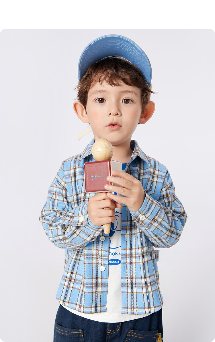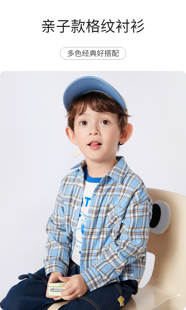 巴拉巴拉童装儿童长袖衬衫男童格纹上衣秋装新款亲子装学院风