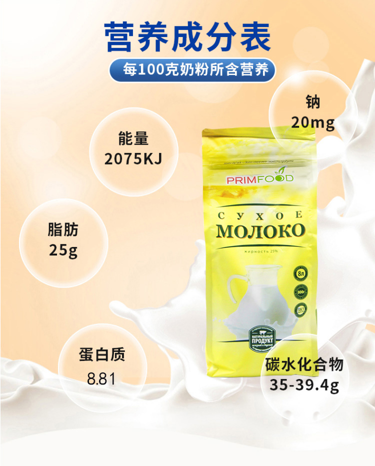 【中欧班列精选】俄罗斯风味 库伦纳达全脂奶粉乳粉 800g/袋