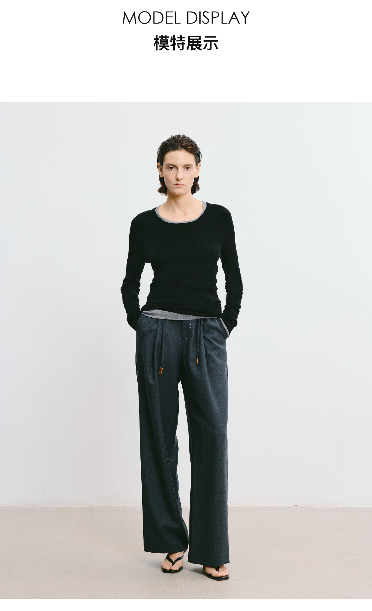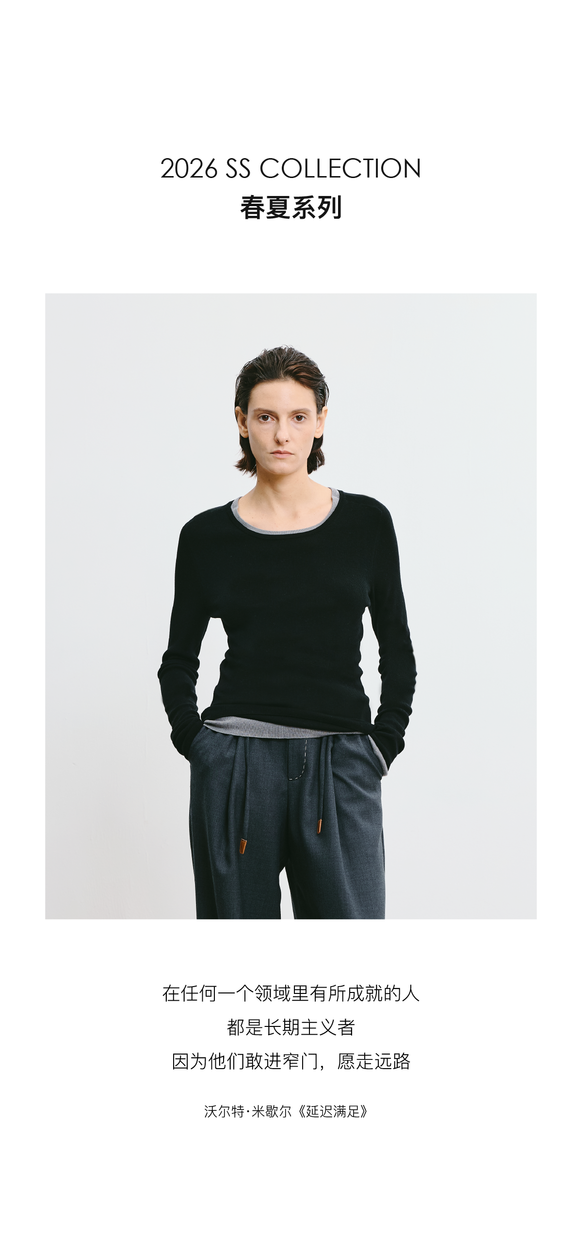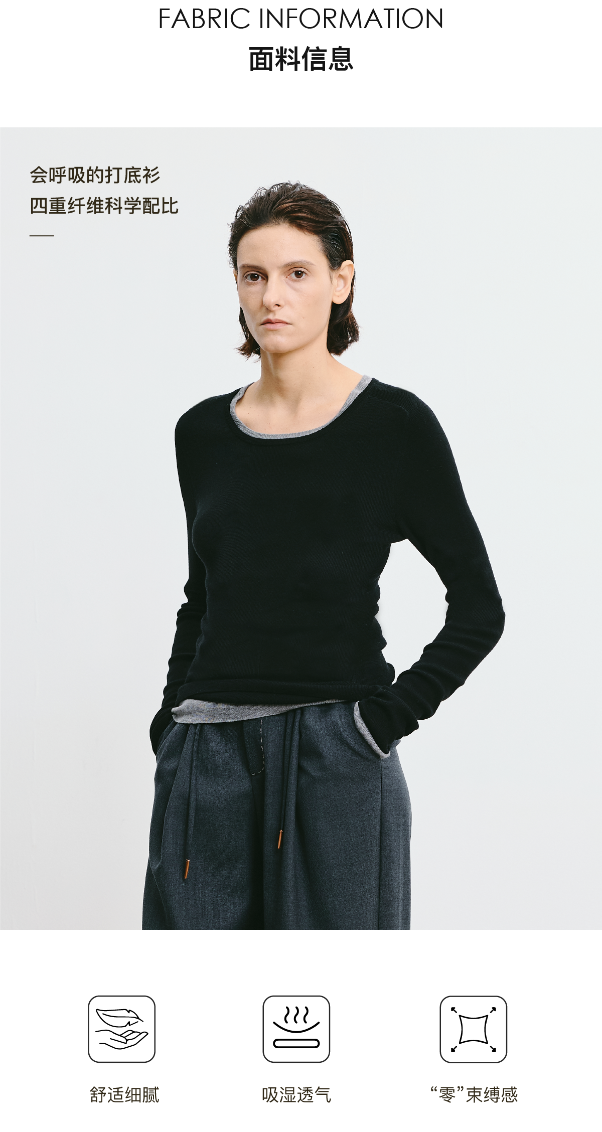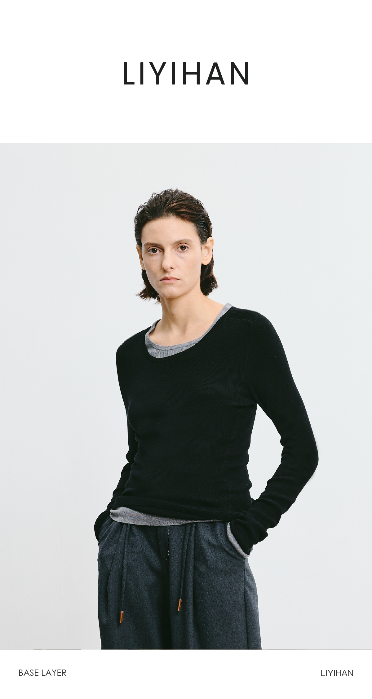 LIYIHAN 2026春新款醋酸羊绒圆领灰色打底针织衫女毛衣小众设计感