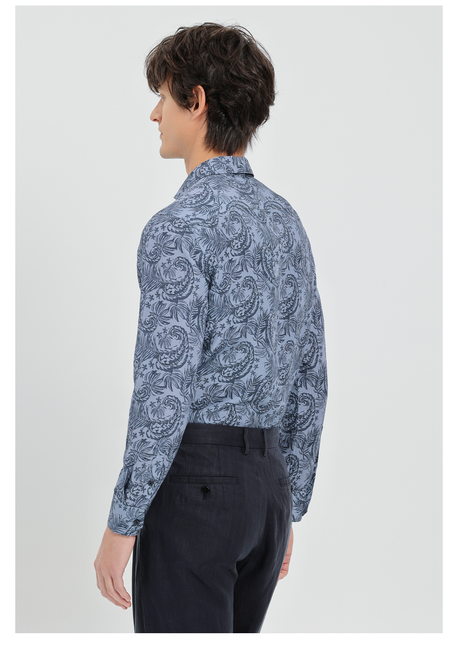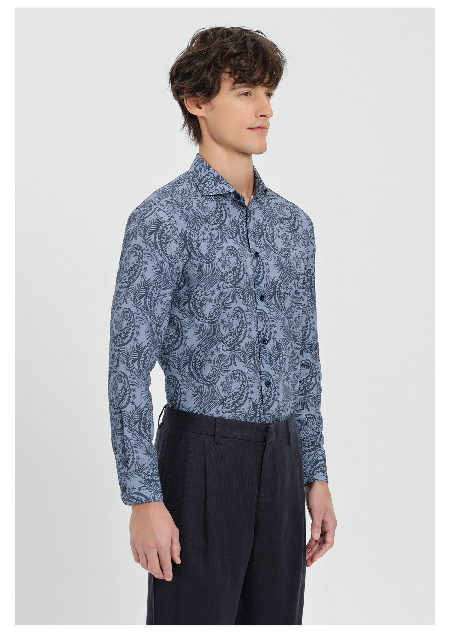 callisto蓝色莱赛尔亚麻混纺休闲长袖衬衫