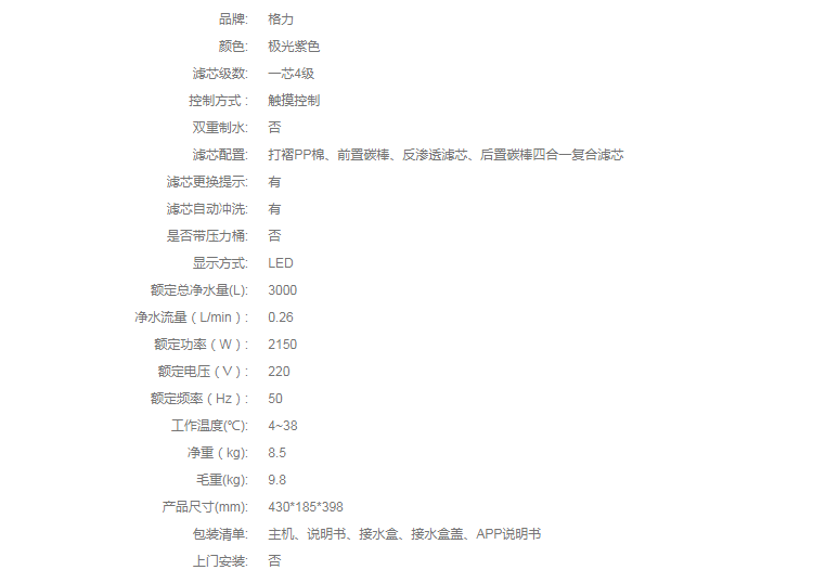 【预售】格力·台式净水机 净饮一体机 RJY-T16-1X611B 极光紫色