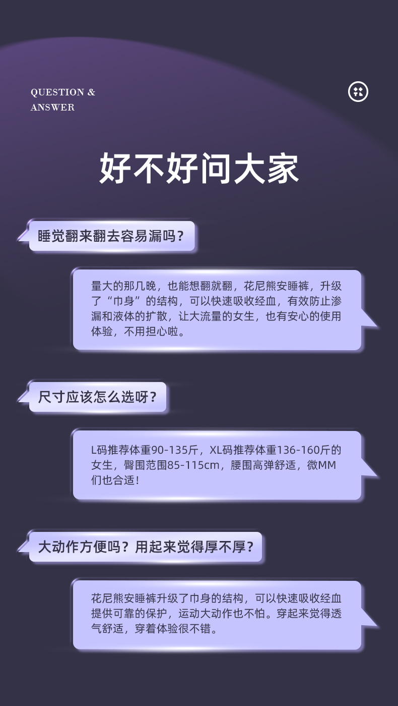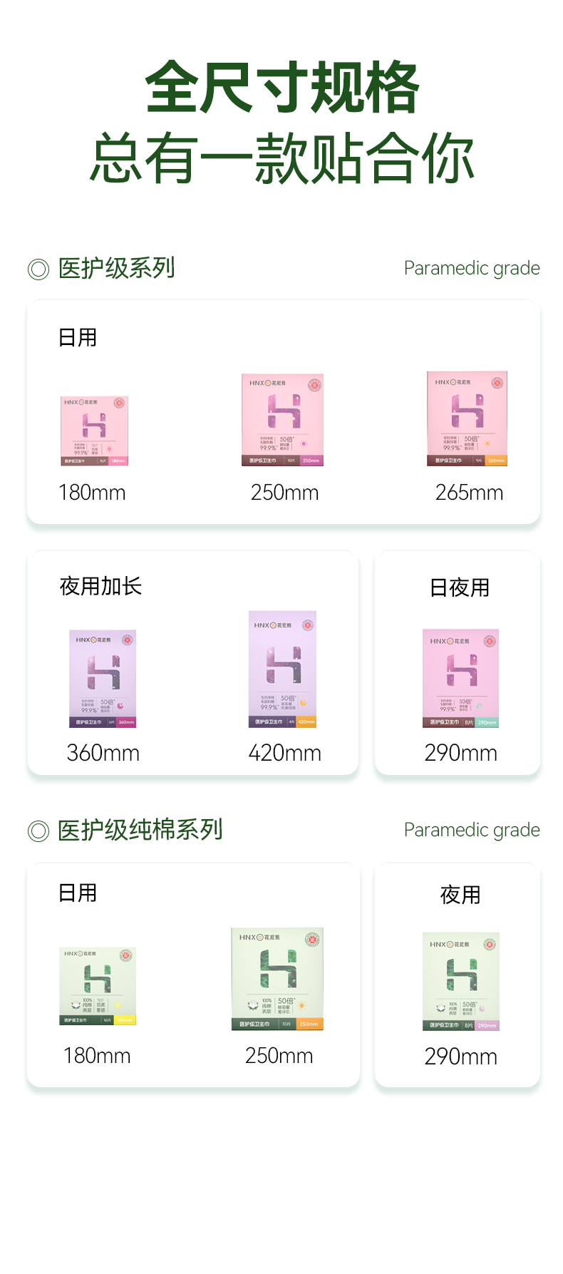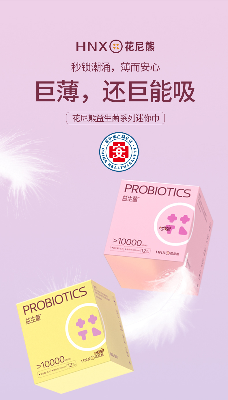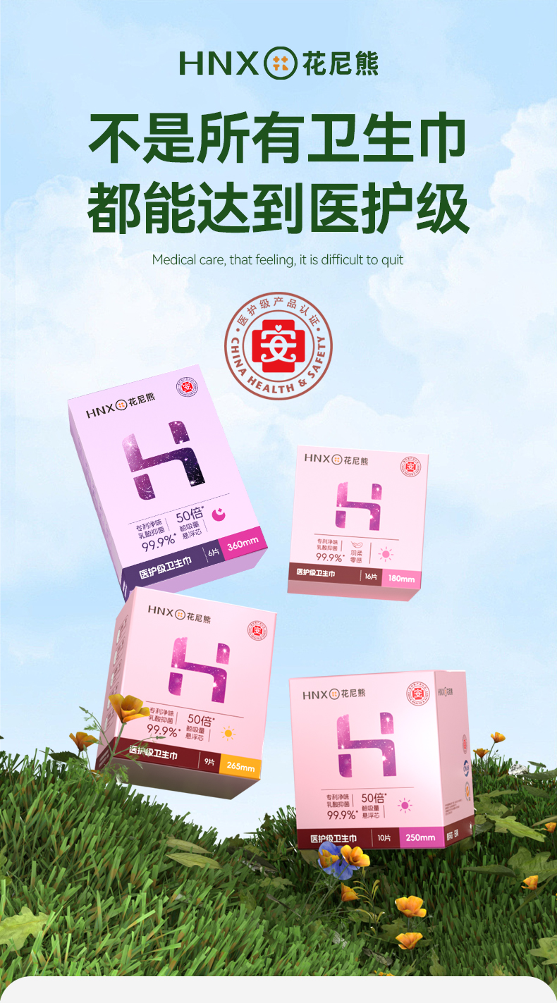 花尼熊医护级日用夜用卫生巾抑菌祛味女士经期护理超薄透气姨妈巾套装50片