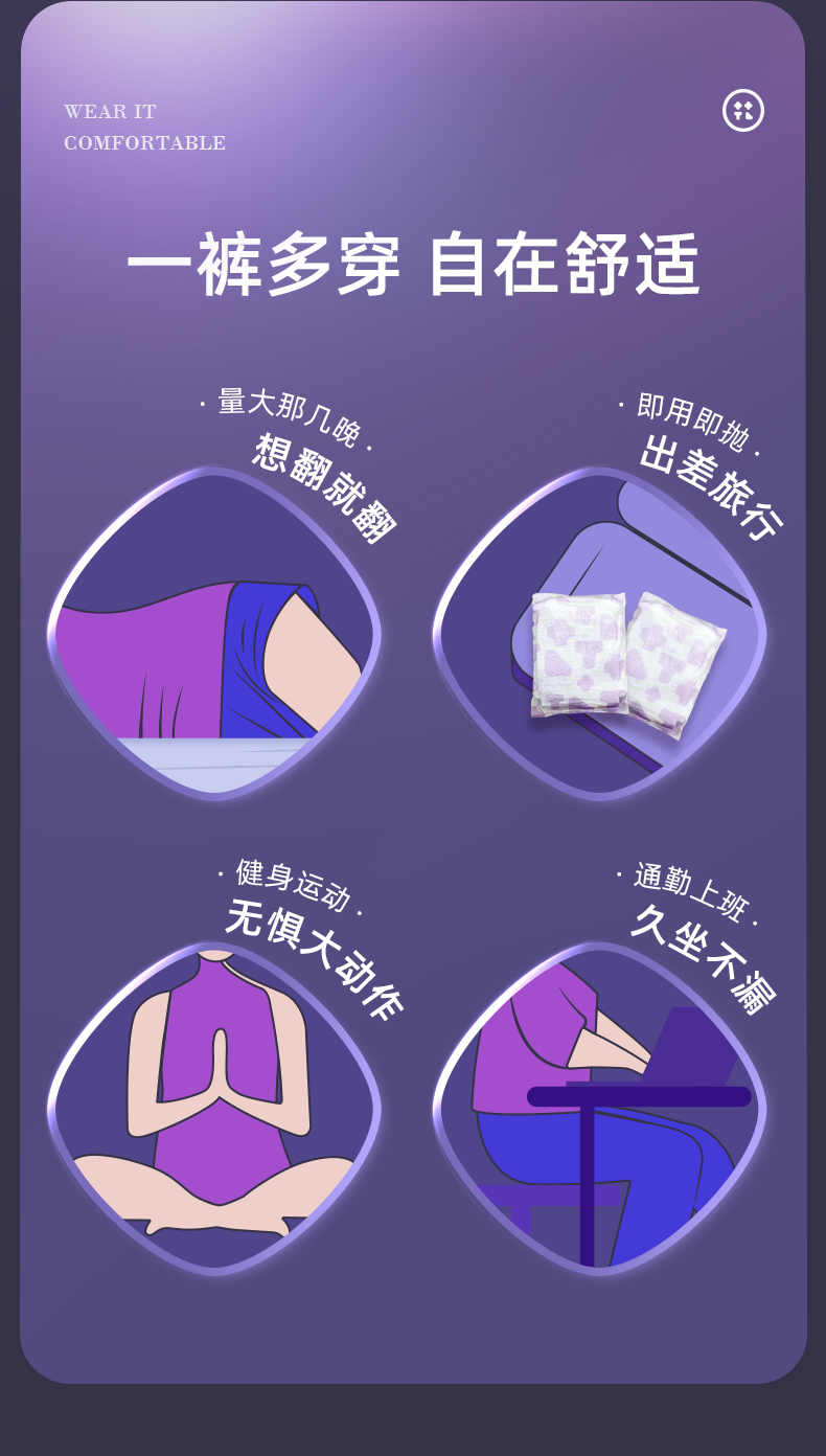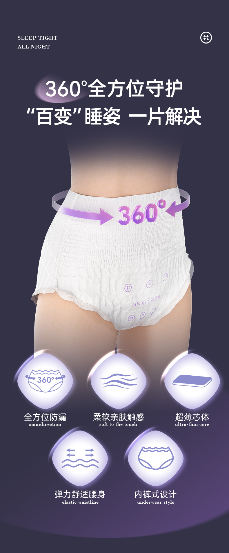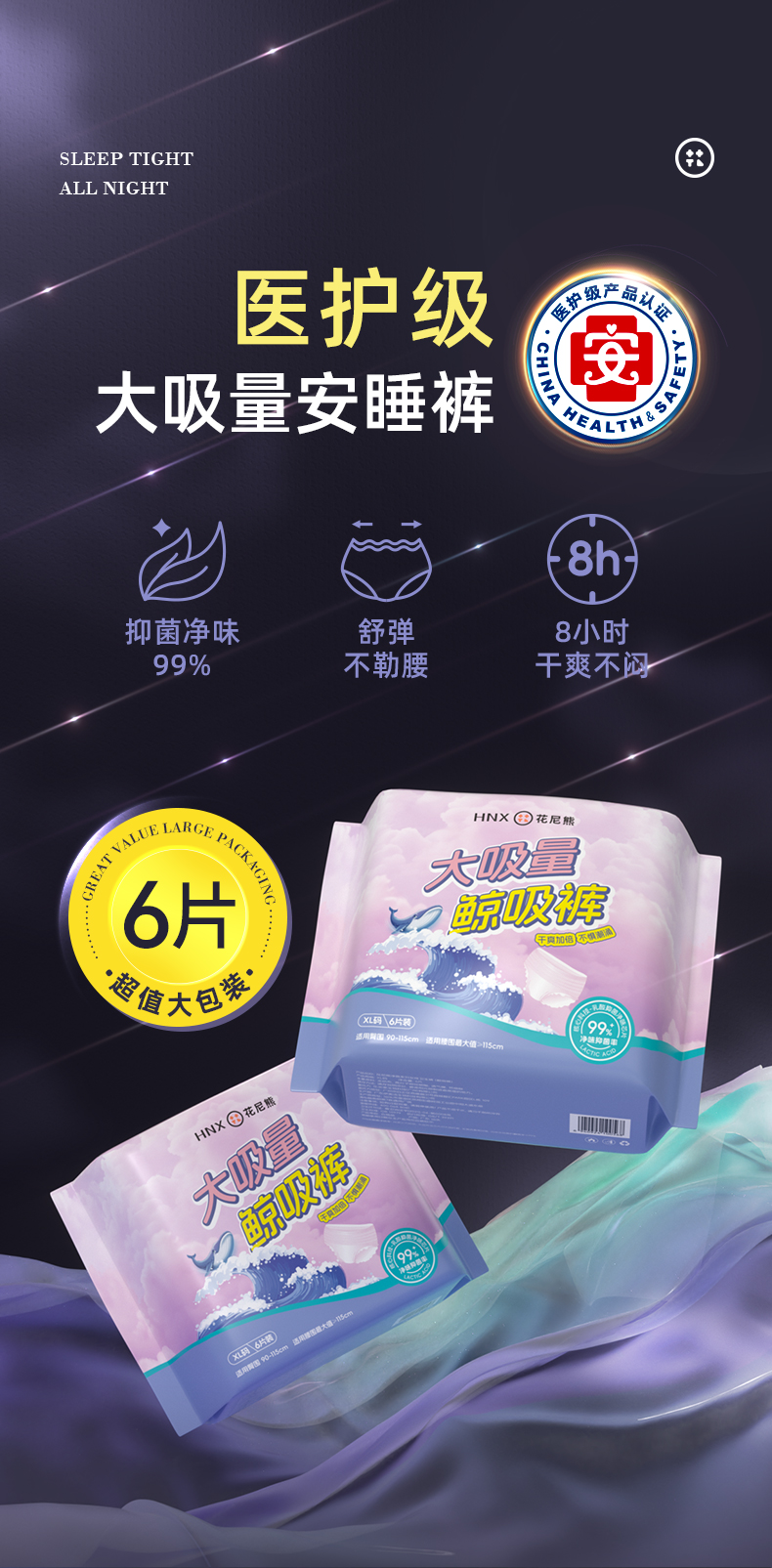 花尼熊医护级日用夜用卫生巾抑菌祛味女士经期护理超薄透气姨妈巾套装50片