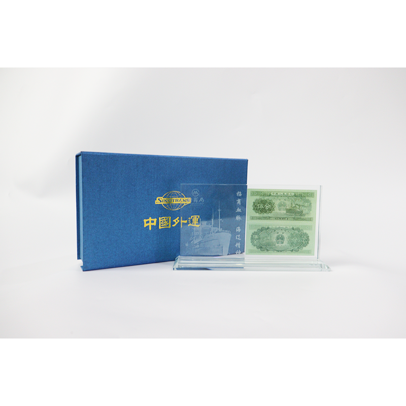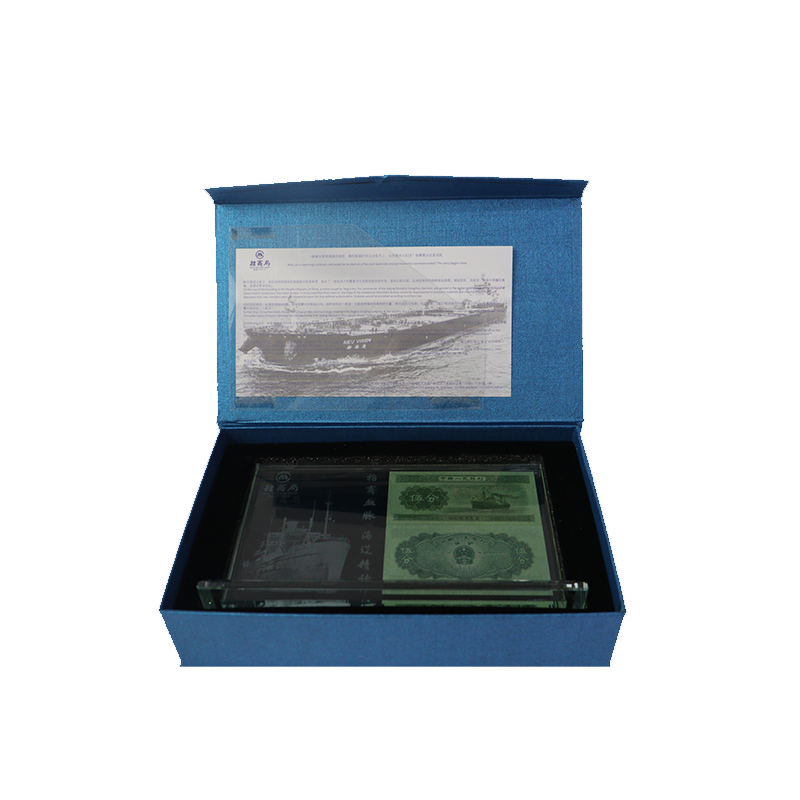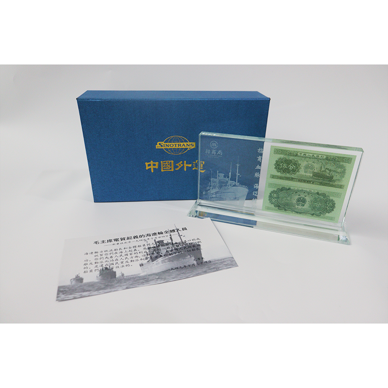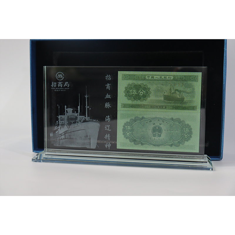 小运仓文创招商血脉海辽精神 复古钱币水晶内雕工艺摆台