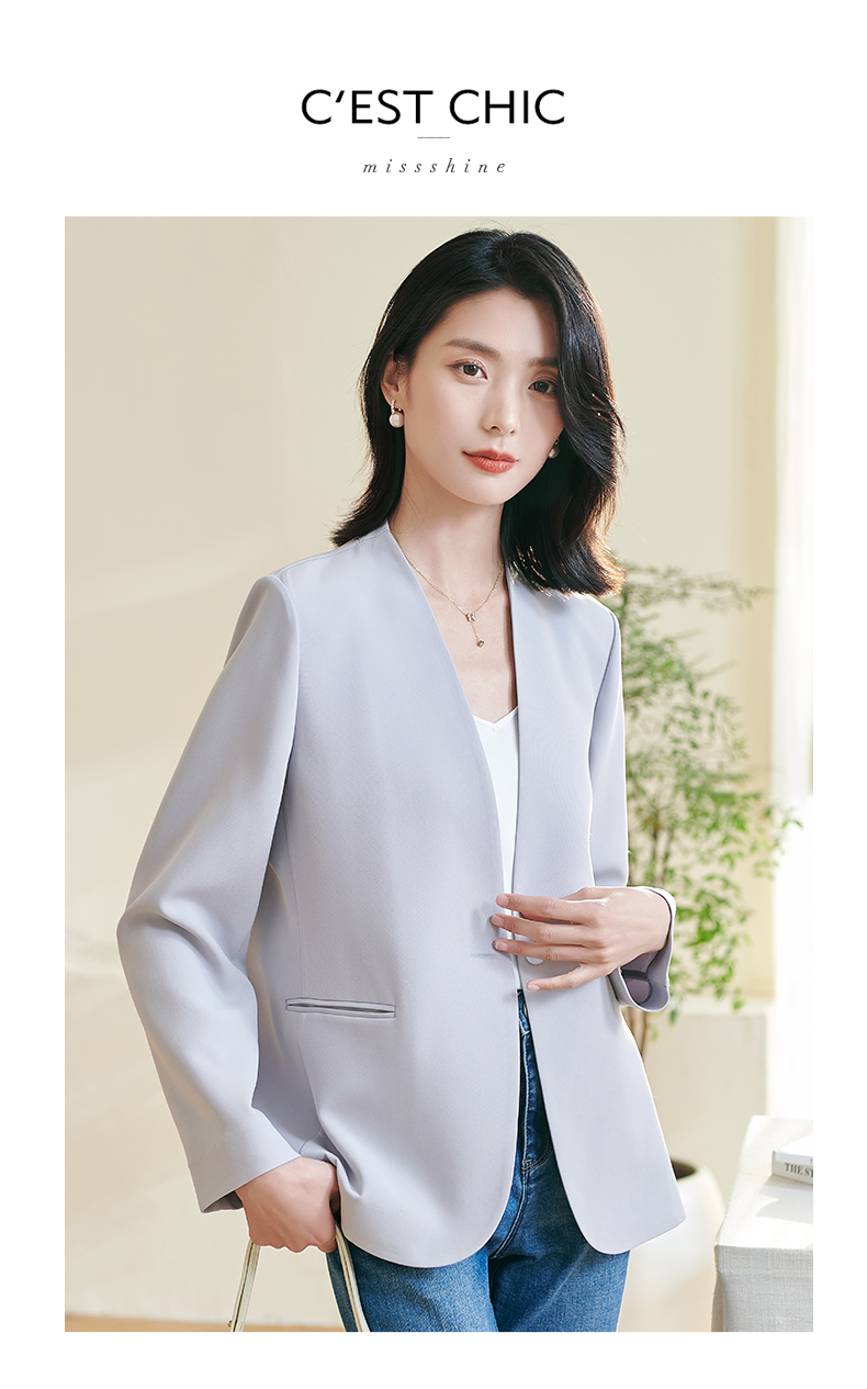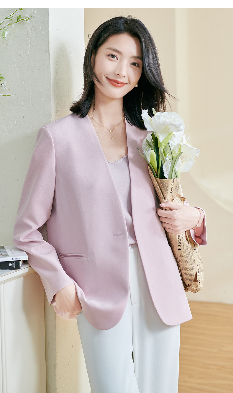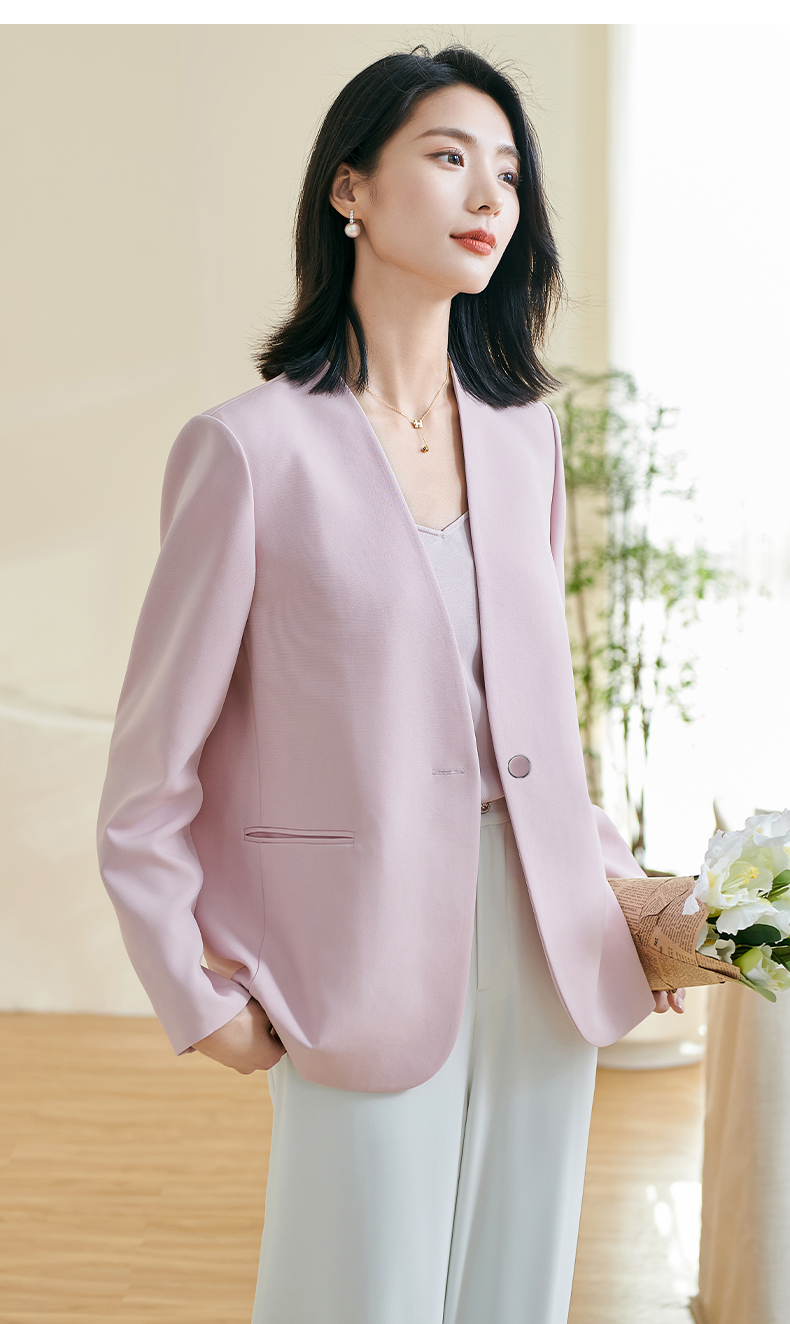 米思阳2026春季新款简约大气粉色西装百搭宽松长袖弹力外套女0816