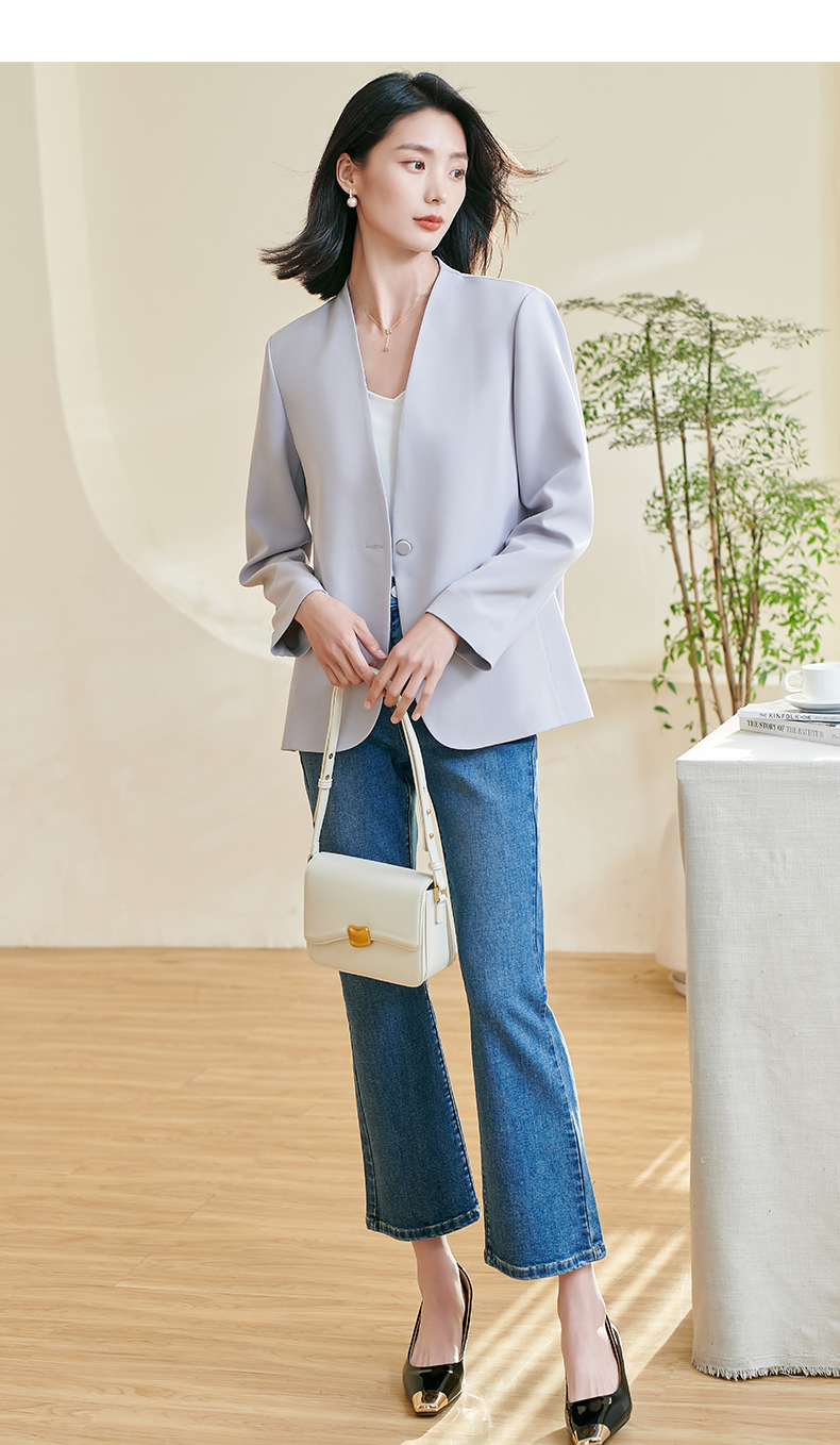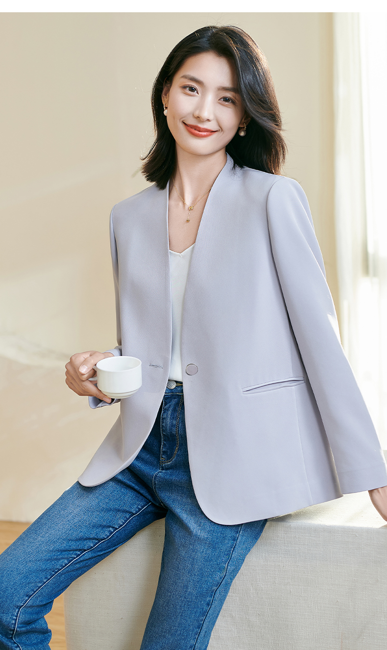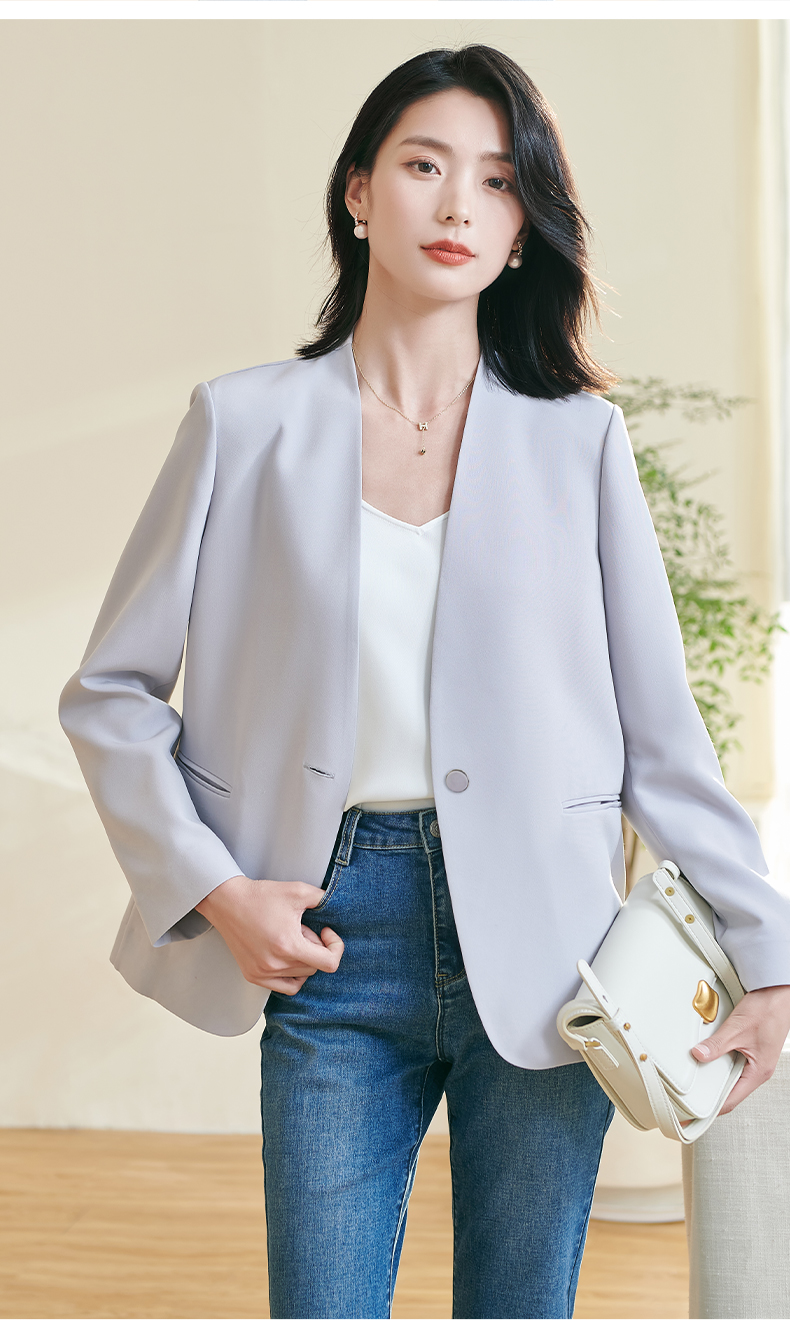 米思阳2026春季新款简约大气粉色西装百搭宽松长袖弹力外套女0816