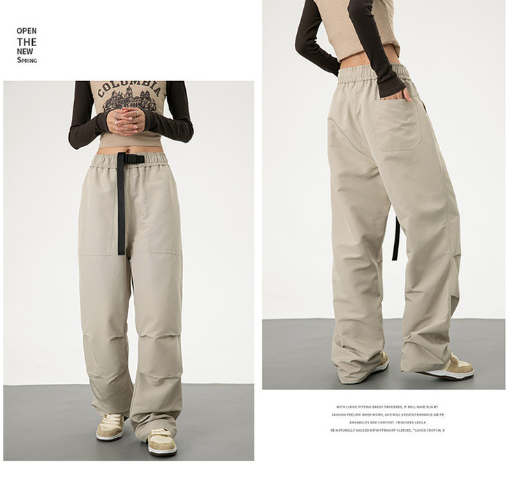 春秋季美式宽松垂感直筒小个子显瘦休闲工装男女装运动裤