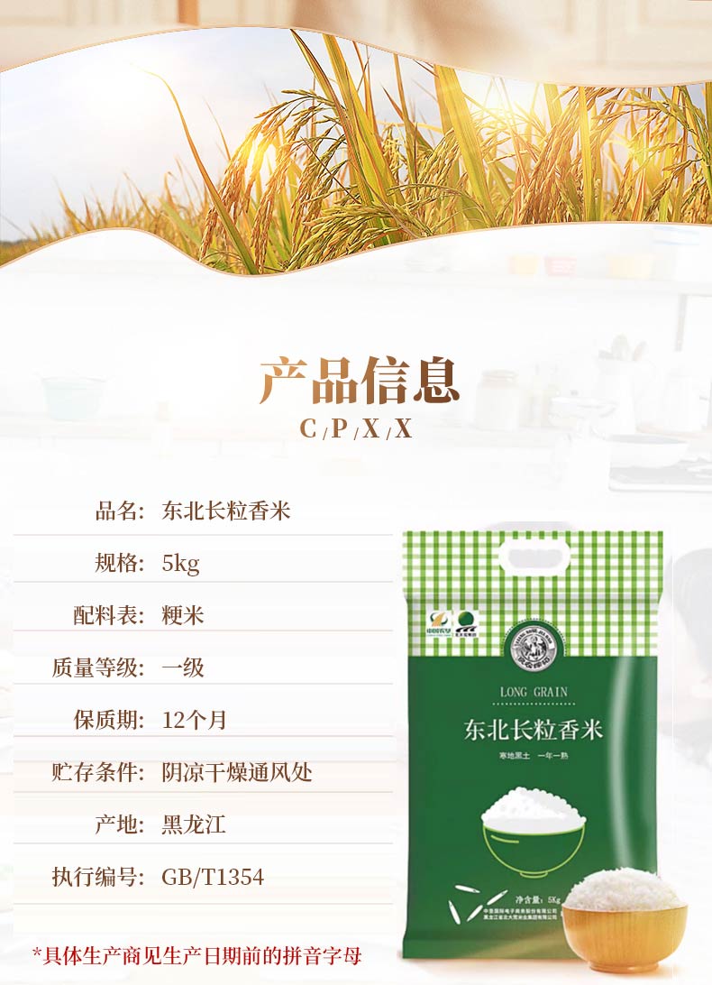 良农嫁稻 中国农垦 东北长粒香米 黑龙江大米 农场直供 真空包装 5kg /袋