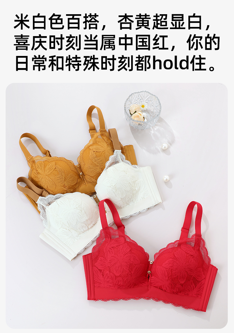 熳洁儿 本命年红内衣女小胸聚拢无钢圈文胸性感蕾丝收拢柔软舒适莫代尔23761508