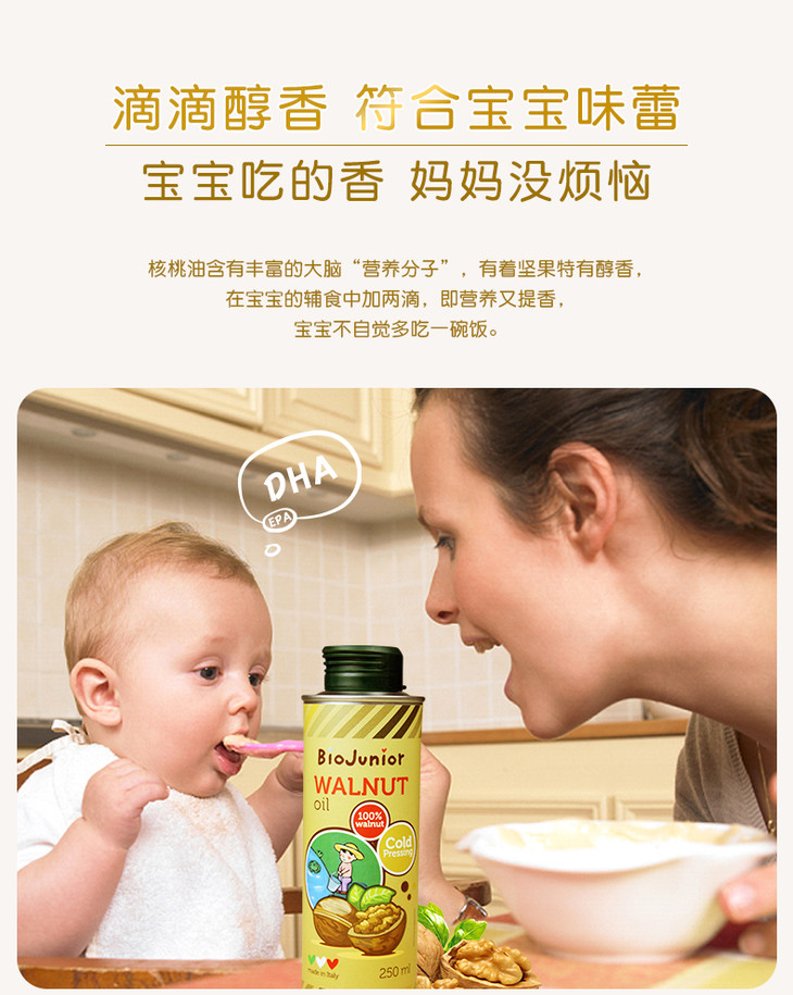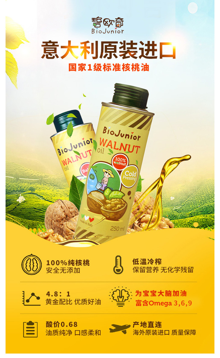 (超值)意大利进口 碧欧奇 婴幼儿核桃油 250m l宝宝营养品儿童辅食