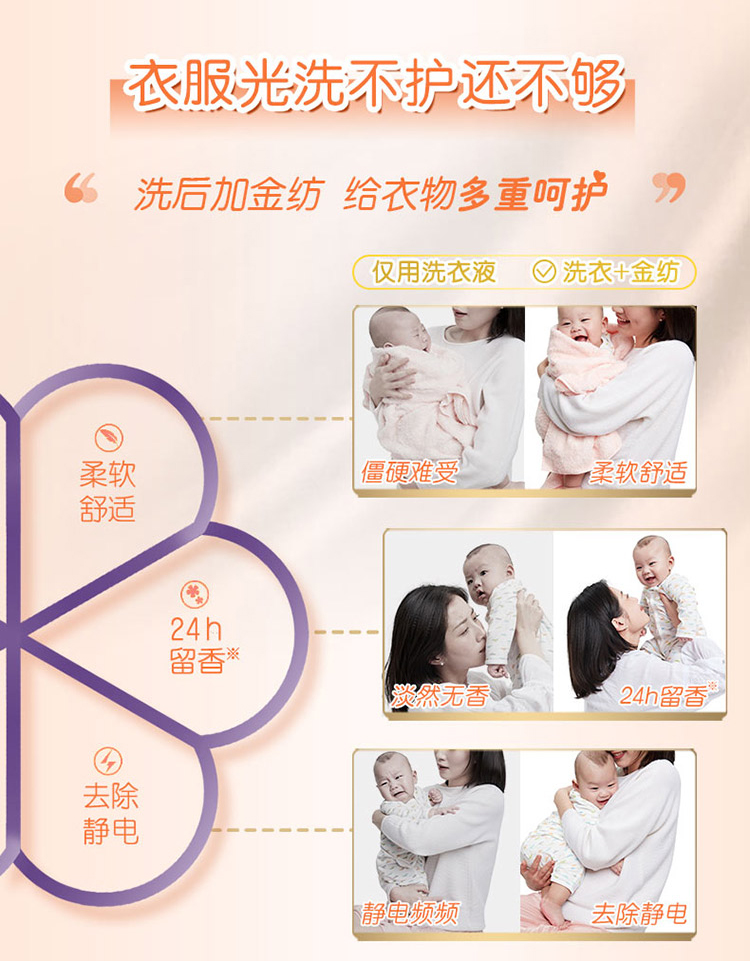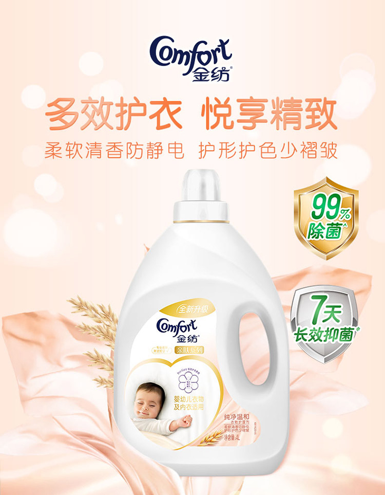 金纺衣物柔顺剂护理剂 柔软亲肤防静电 纯净温和 4L(婴儿衣物可用 漂洗时中和洗衣液残留 温柔芬芳)