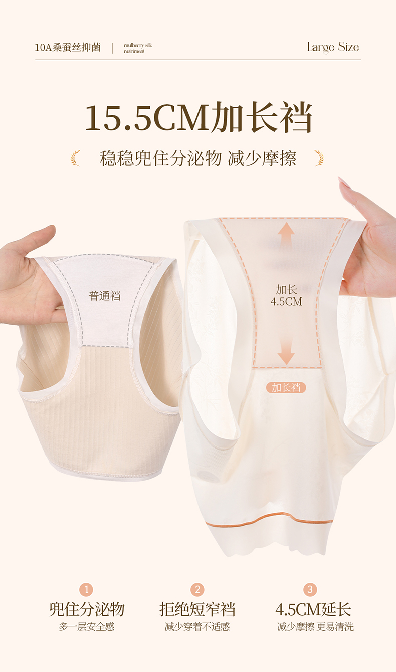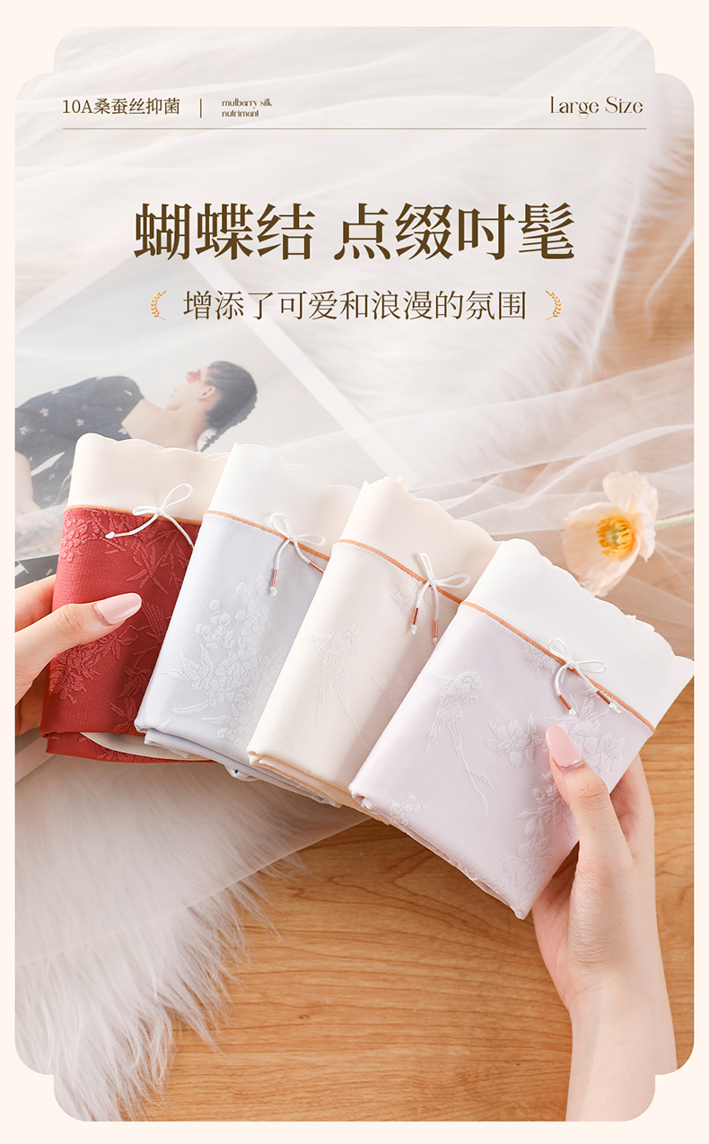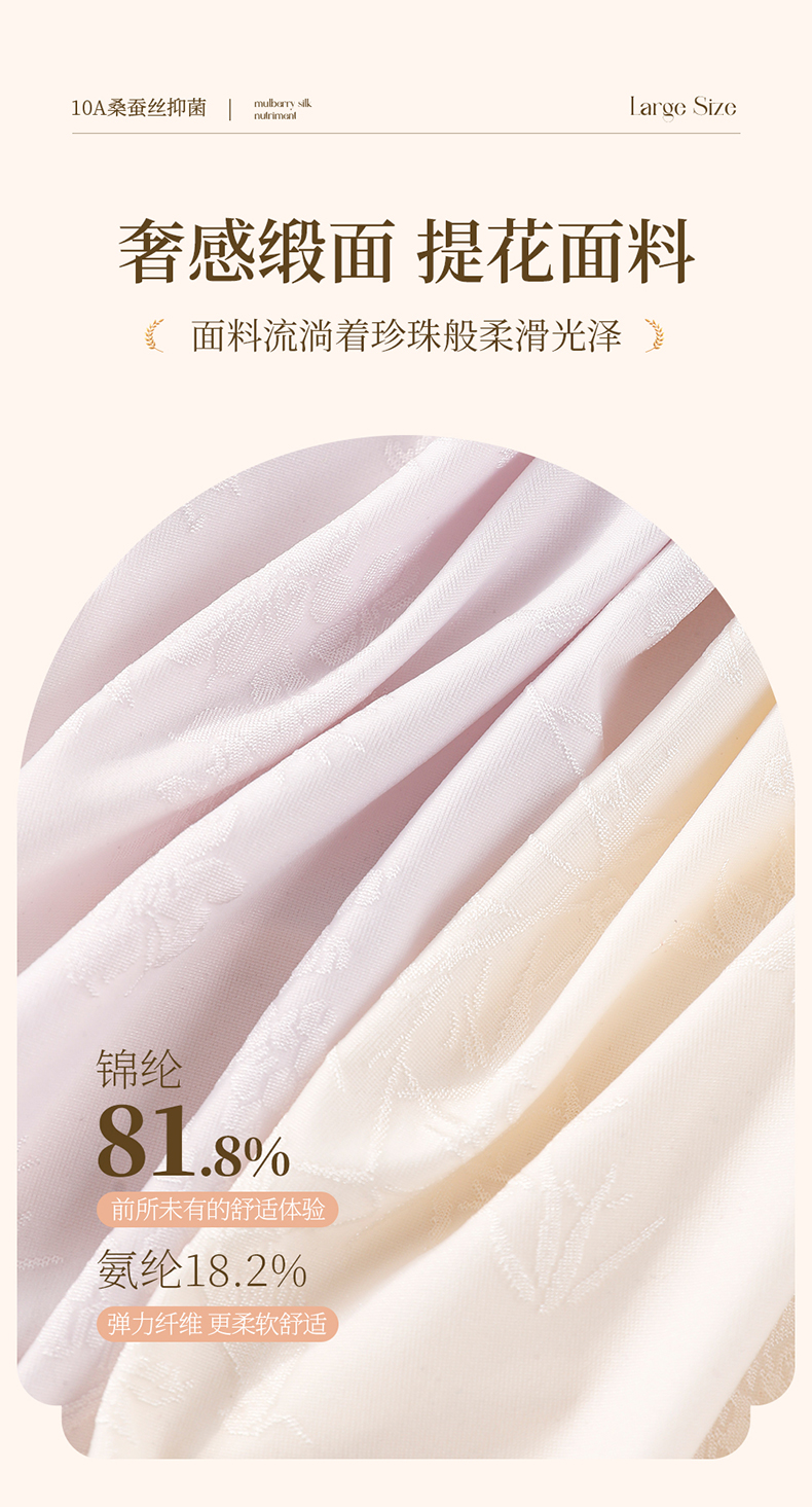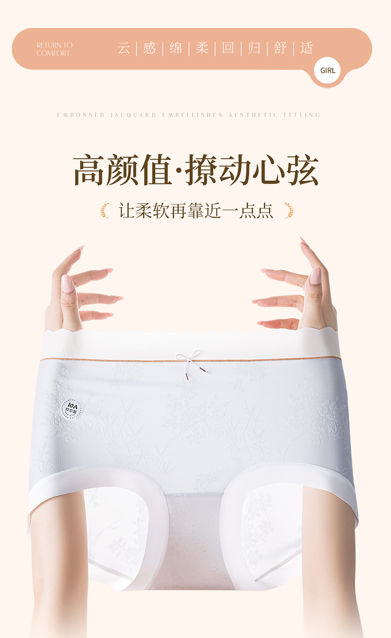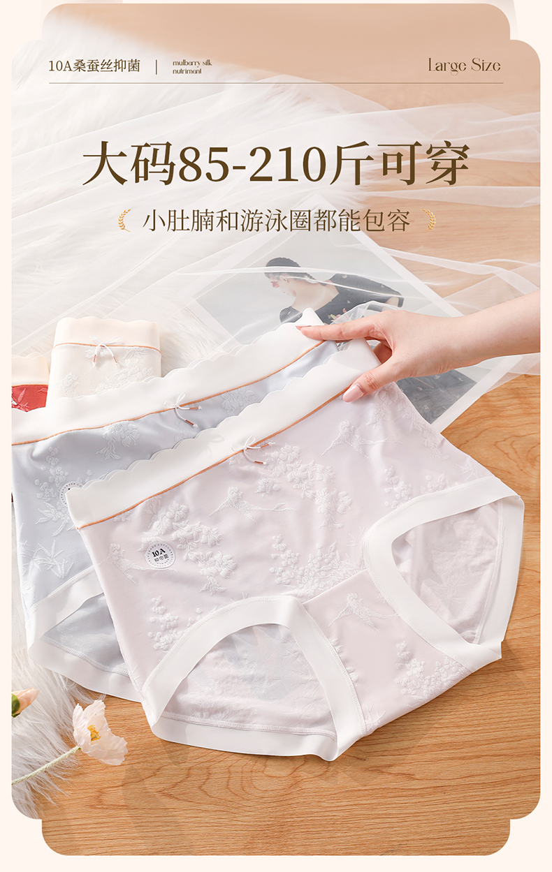国风浮雕提花大码内裤女高腰收腹桑蚕丝加长裆冰丝内裤 398#