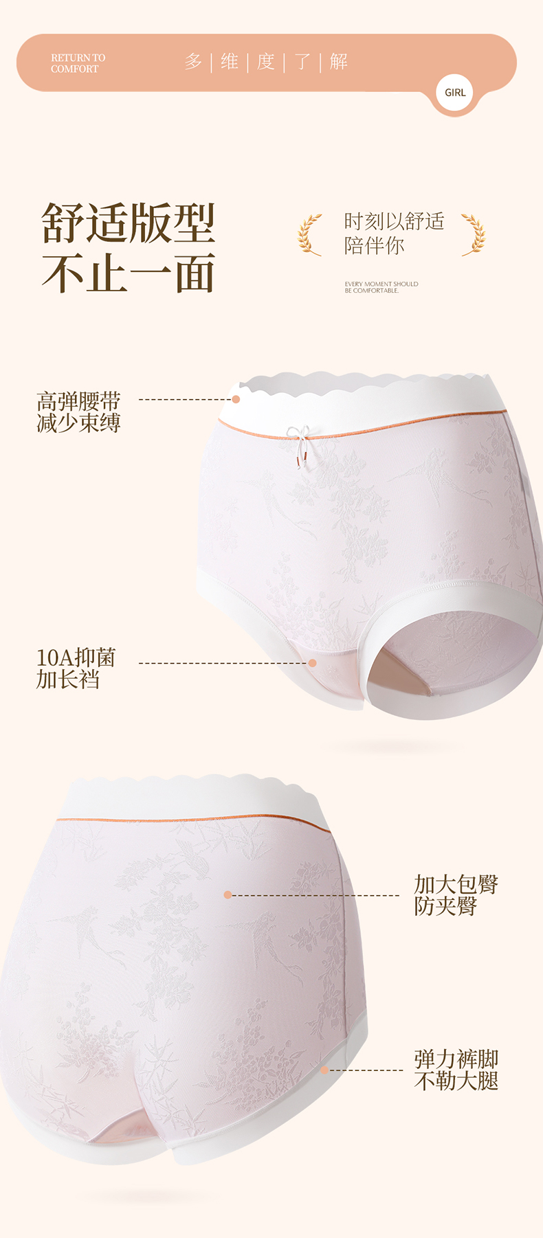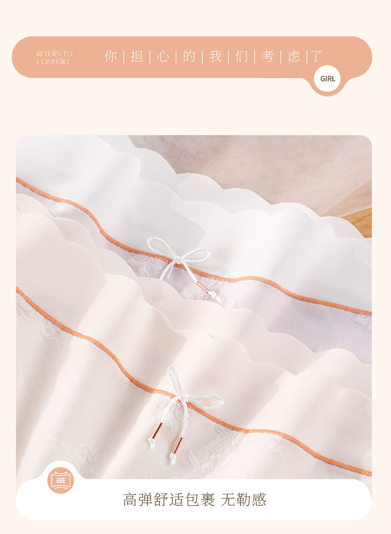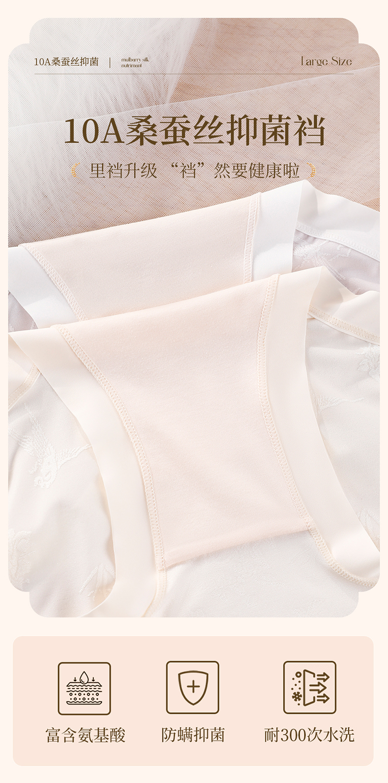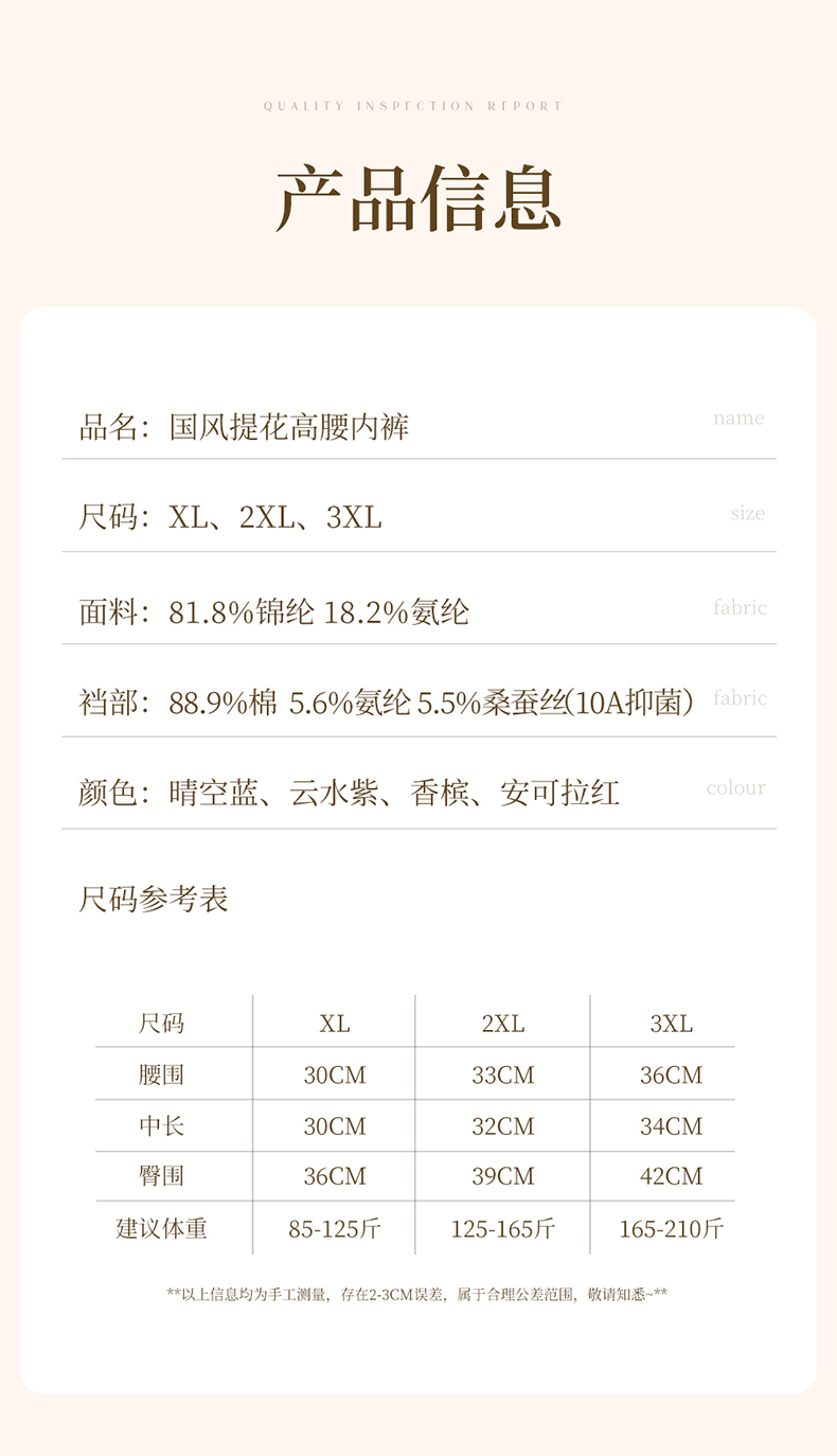 国风浮雕提花大码内裤女高腰收腹桑蚕丝加长裆冰丝内裤 398#