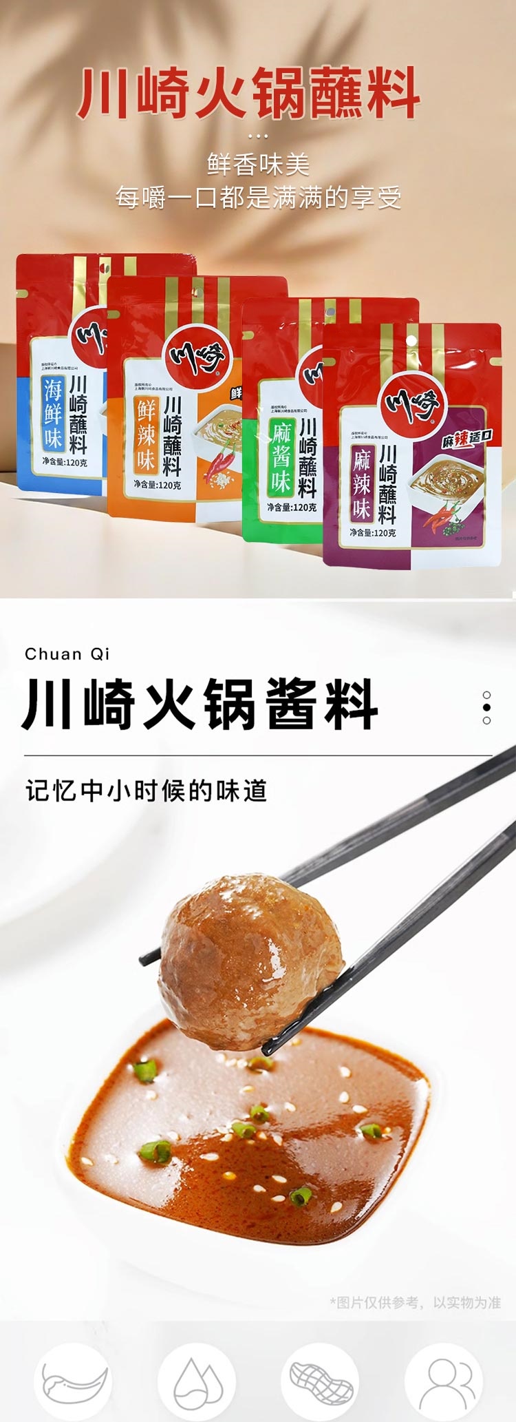 川崎麻酱味I 海鲜味I 鲜辣味丨麻辣味 火锅蘸料120g