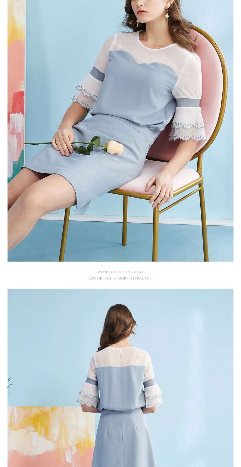 欧芮儿夏装新款时尚喇叭袖蕾丝衫+a字裙半身裙套装裙两件套女