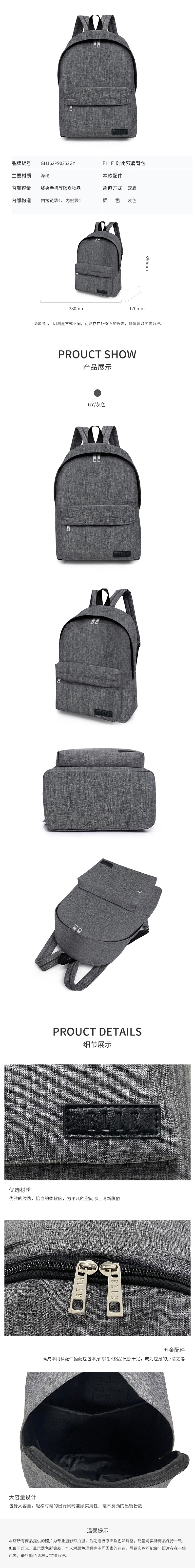 ELLE 时尚双肩背包GH162P90252GY 灰色
