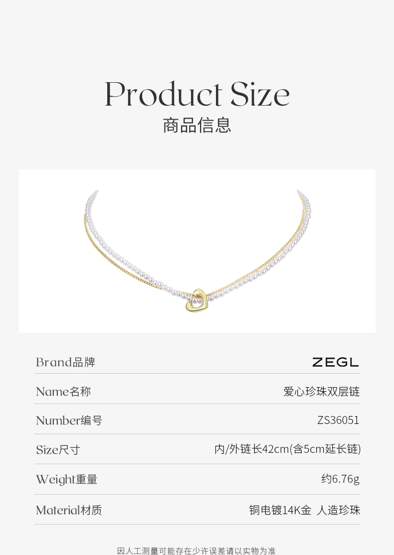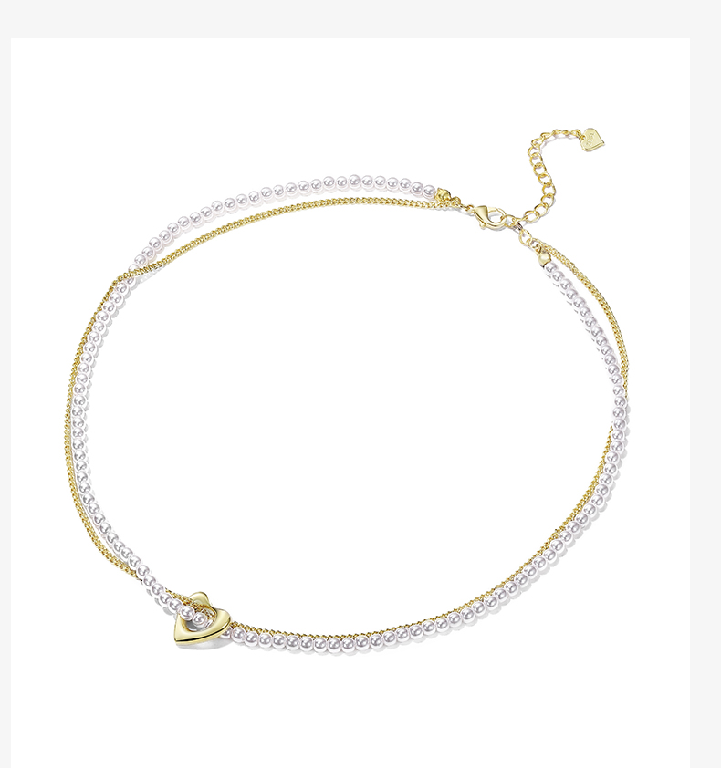 ZEGL巴洛克爱心人造珍珠项链女2022年新款潮双层叠戴锁骨链配饰品