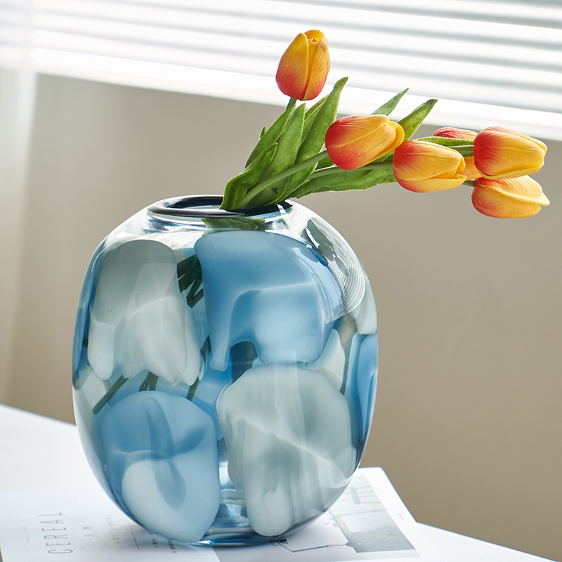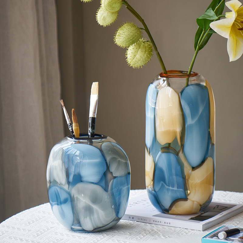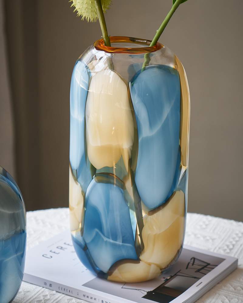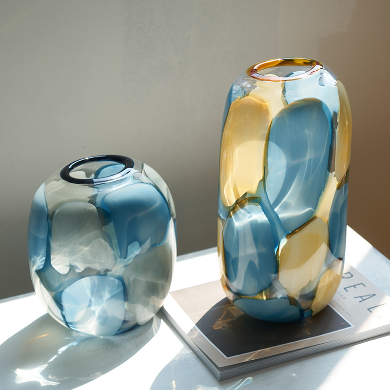 代轻奢透明淡彩玻璃花瓶水培 家居装饰品摆件客厅餐厅软装花瓶