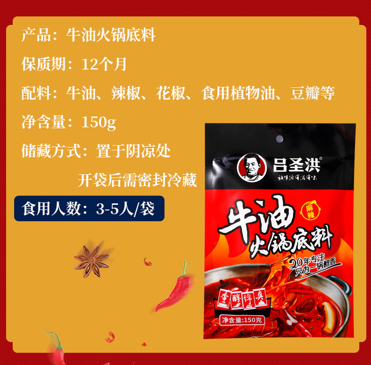 吕圣洪牛油火锅底料/麻辣150g