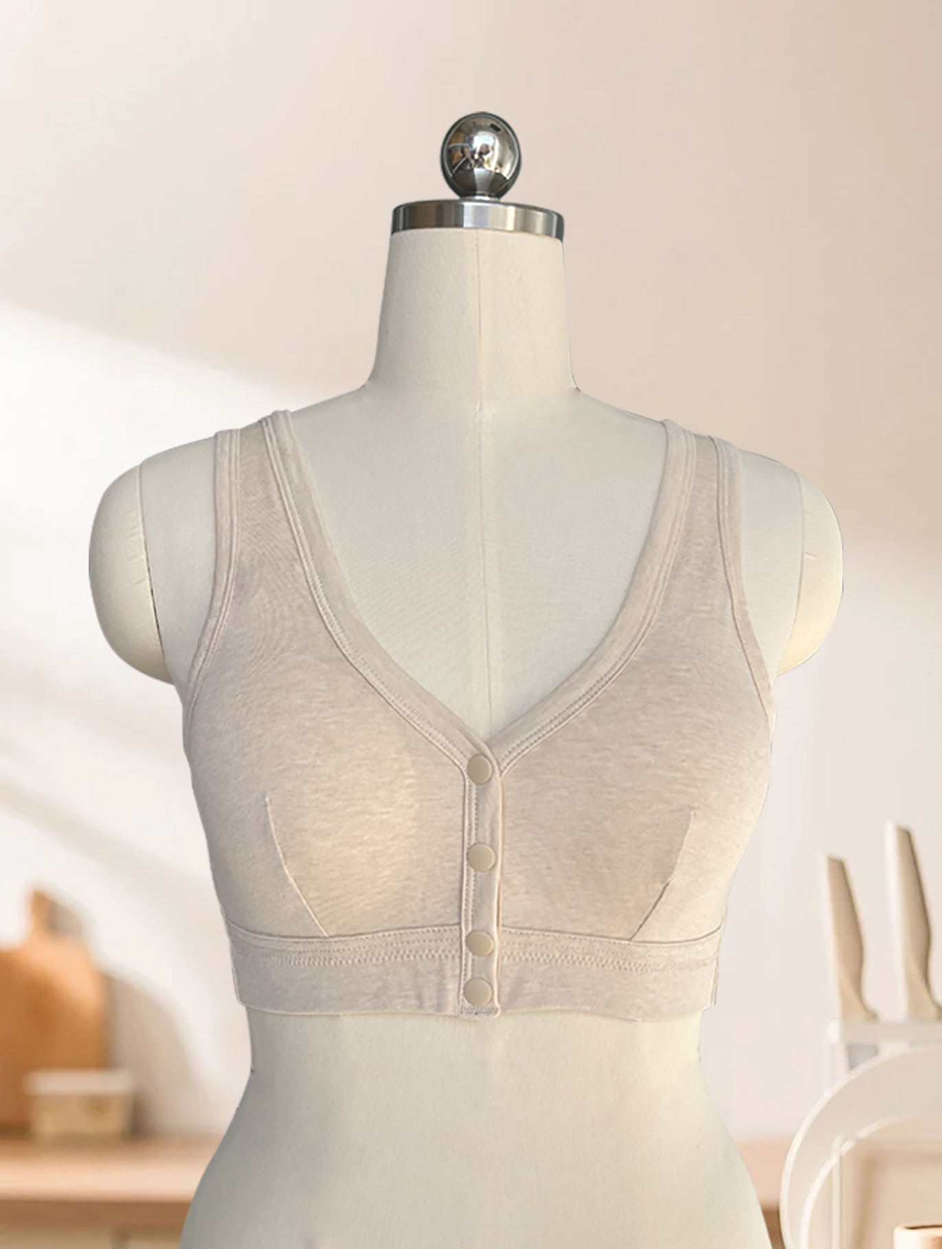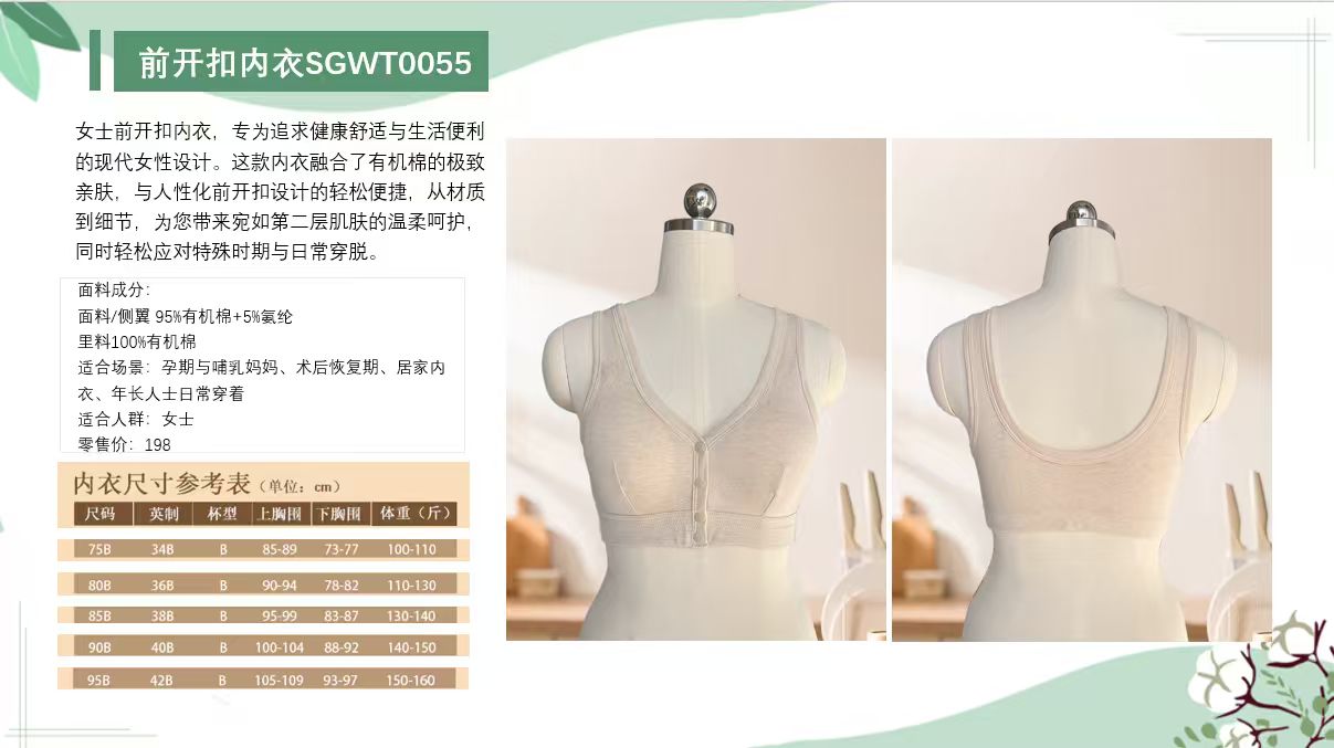 素道有机彩棉大码文胸 前开扣内衣 无钢圈 B罩杯A类 宽带文胸内衣