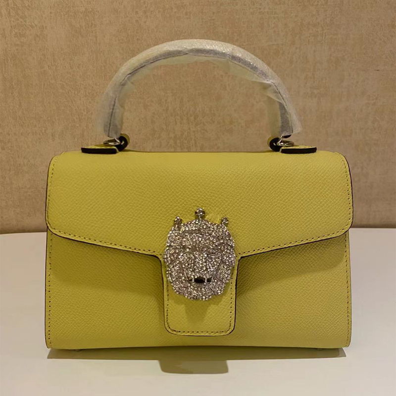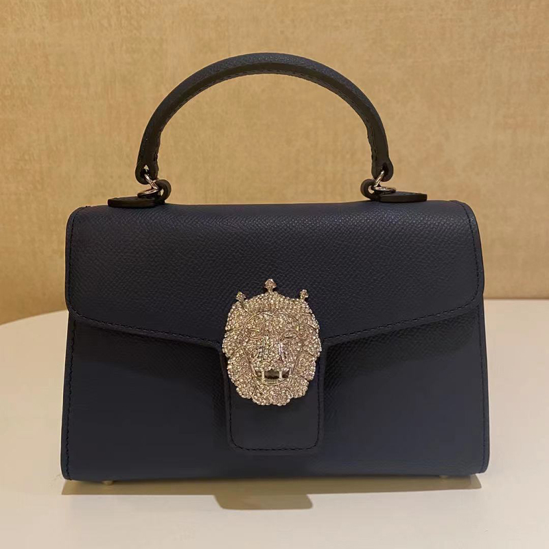 MYC冠狮小包包身采用头层掌纹牛皮,经由一百多道工序纯手工打造,完美体现匠人精神,五百颗耀眼水晶钻石镶嵌,构成精致冠狮,华丽感冠冕尽显时尚小巧精致,(尺寸长18*宽6*高14cm)巧用可拆卸长肩带,手提、肩背斜挎等,随心转换。